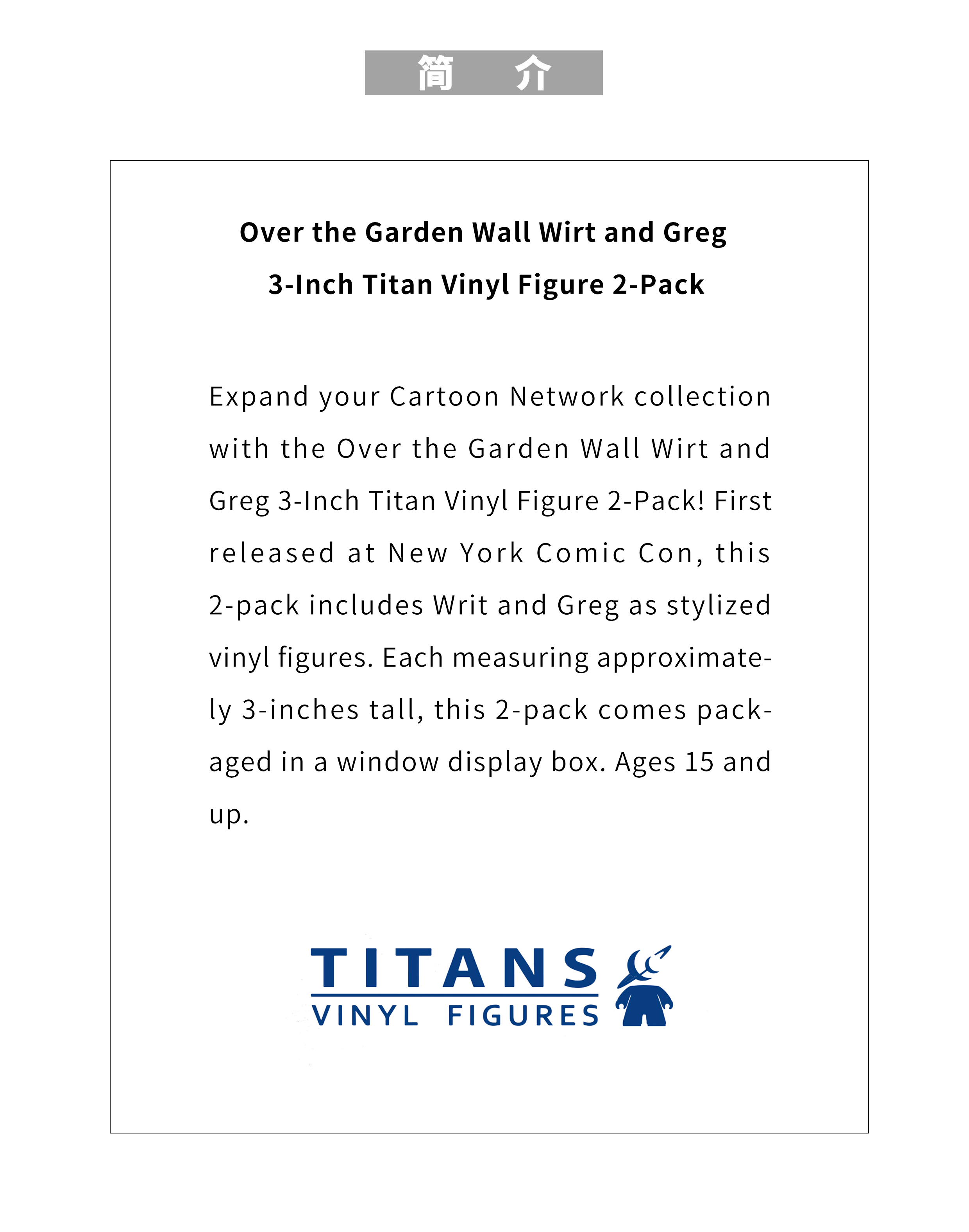 现货 Titans 花园墙外 Wirt and Greg 3英寸 卡通网络