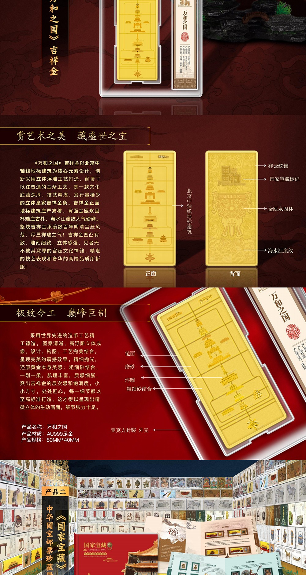《国-家宝藏》珍邮大全,央视节目授权, 收录23套共100枚文物珍邮和一枚999足金金砖