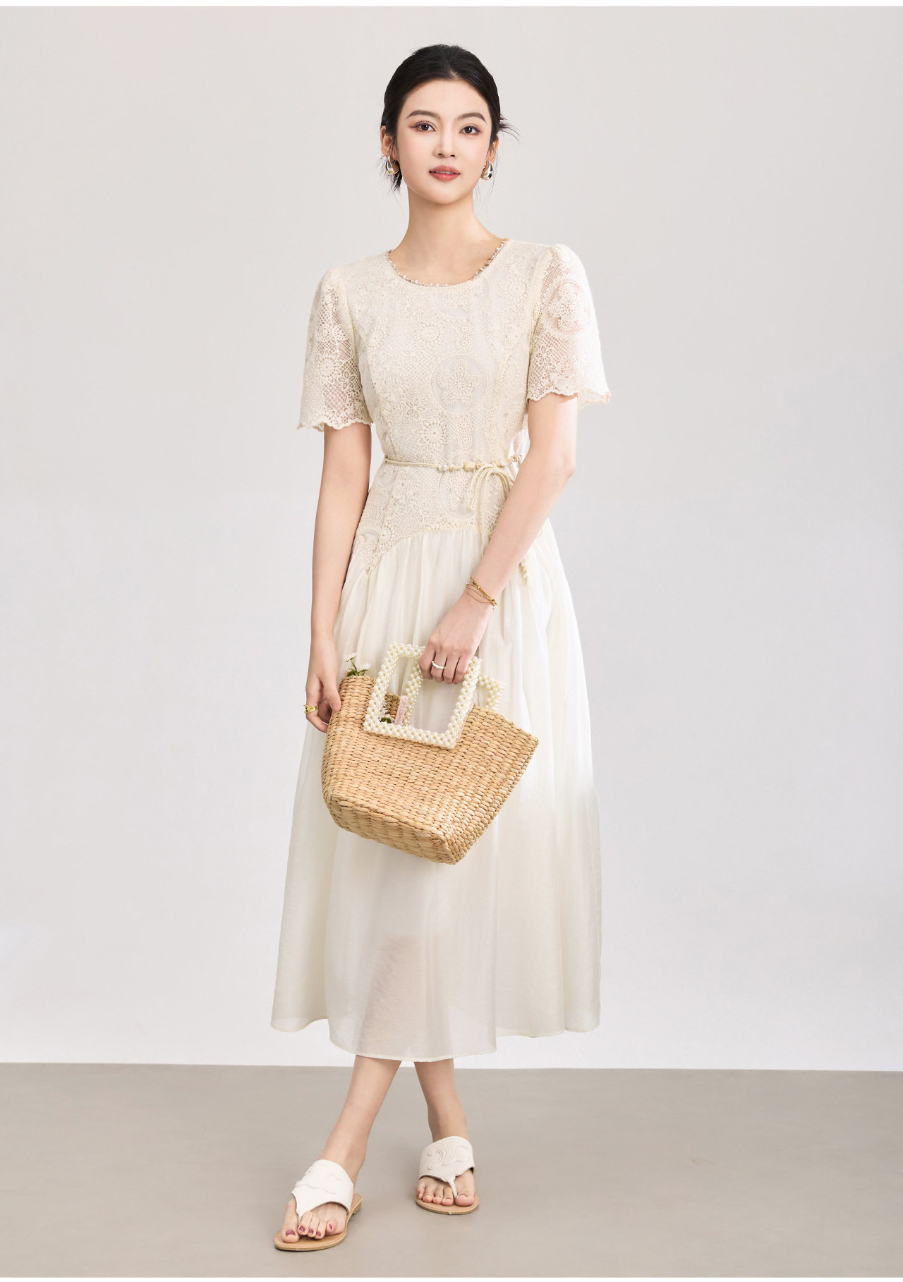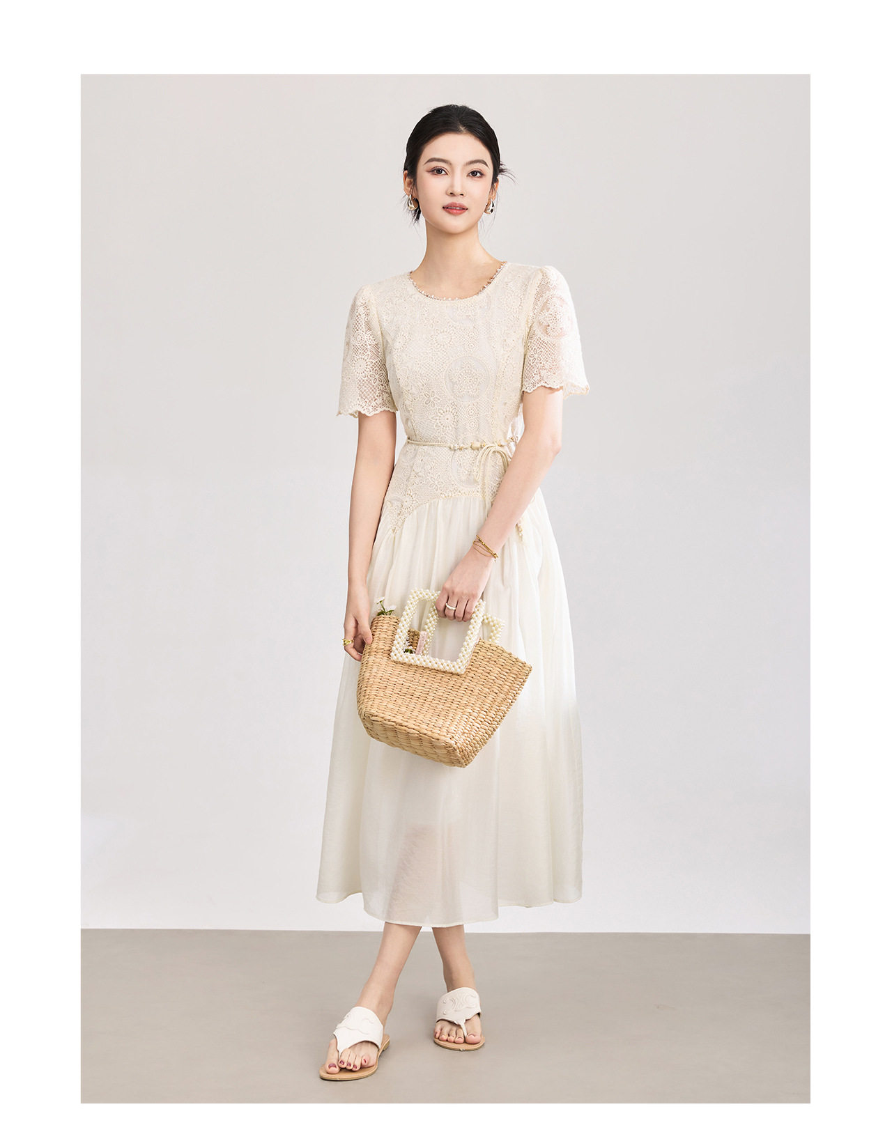 「高货wl」全新升级【铂金会员367/天猫489/差价122】(71446)洛诗琳浪漫法式亮片刺绣连衣裙2026夏季气质收腰连衣裙