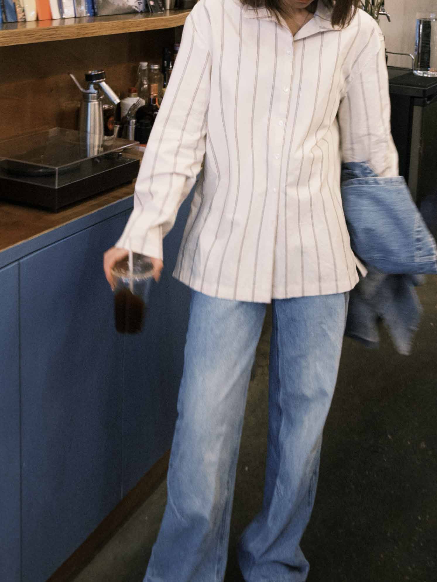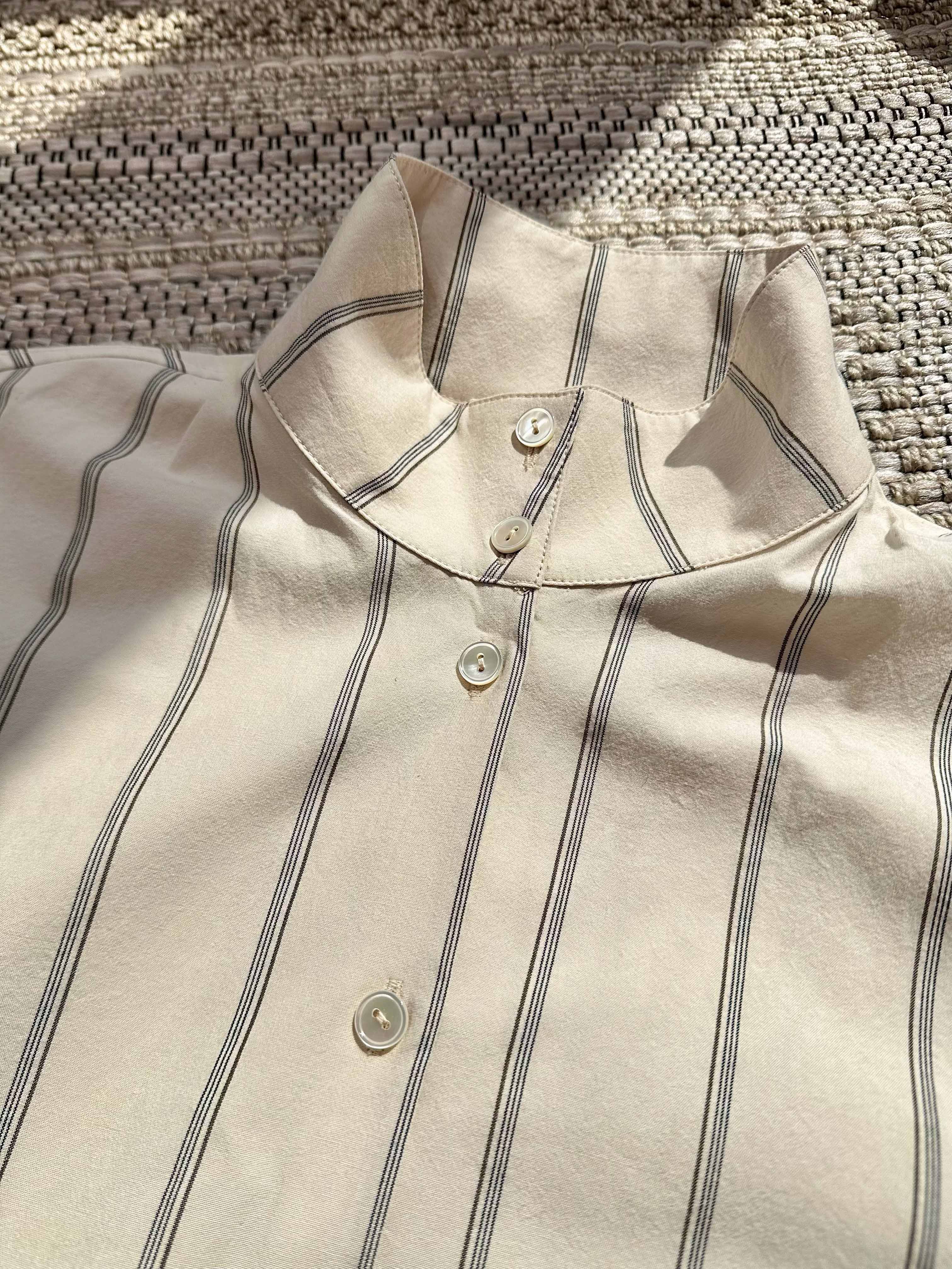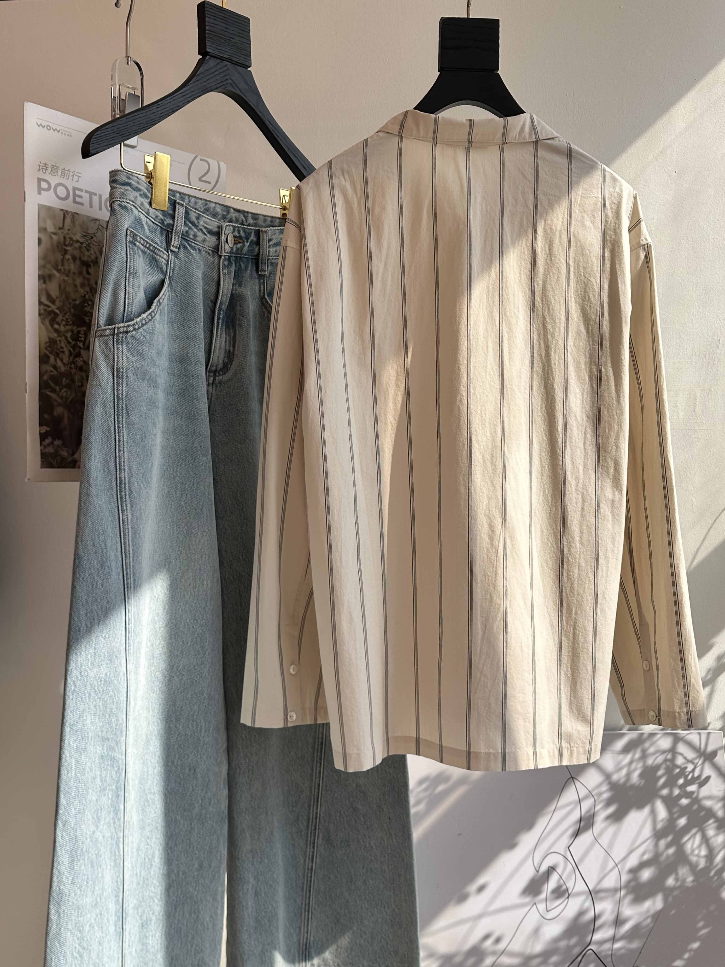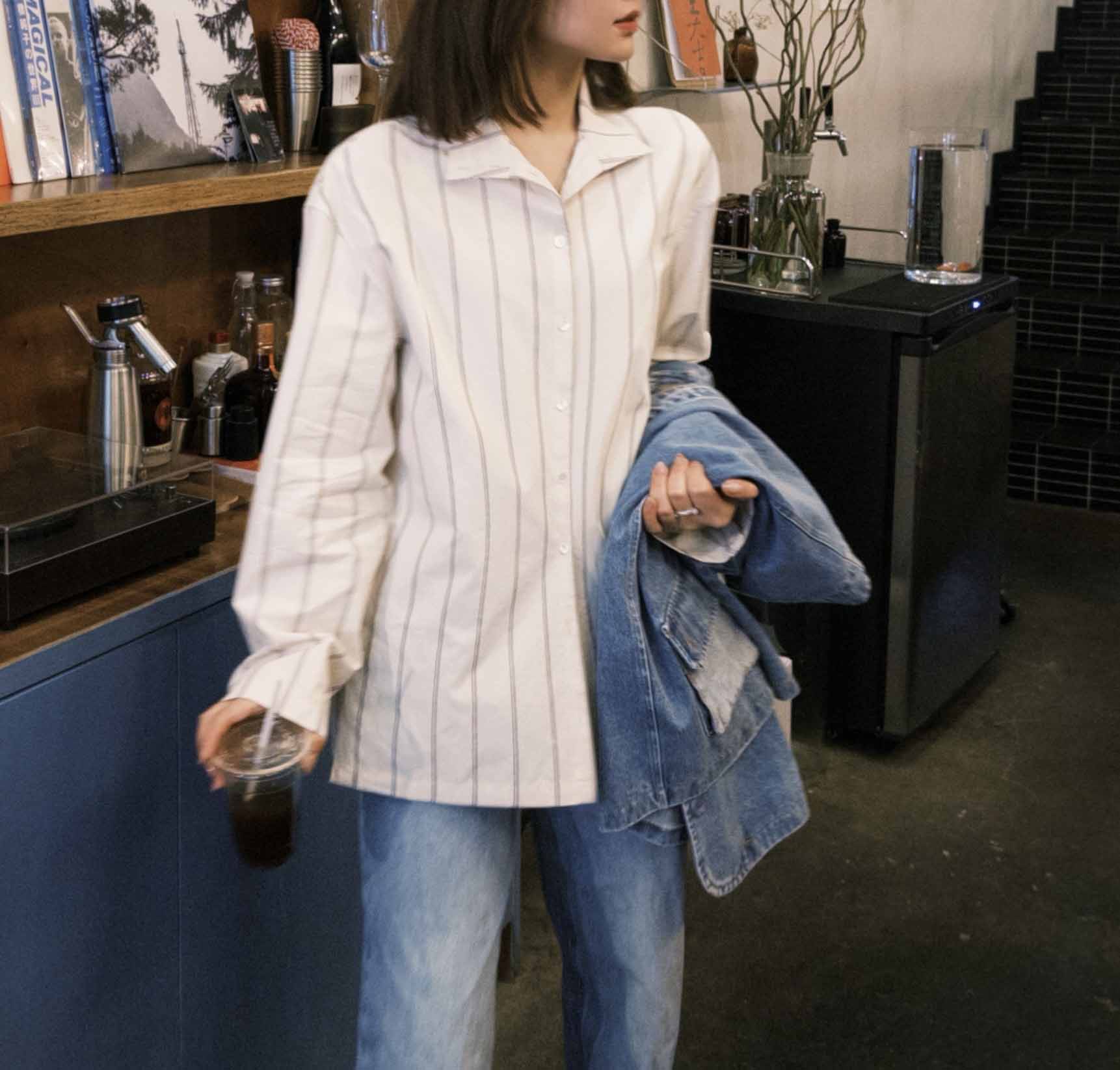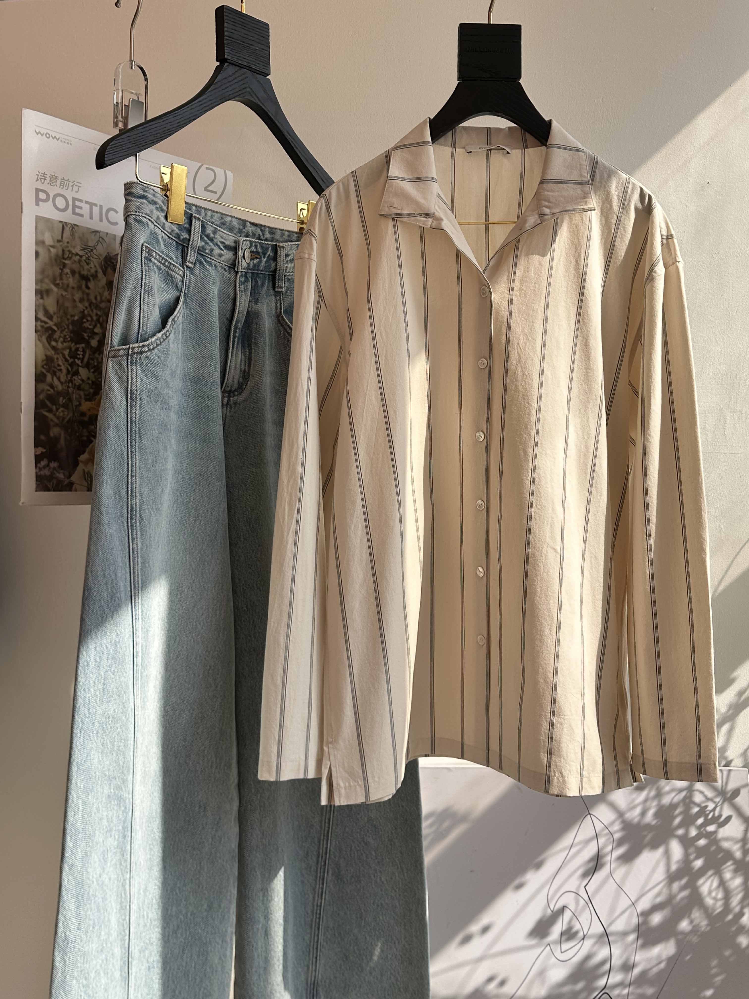 顺丰包邮洛诗琳00941独特复古老钱风小立领宽松条纹衬衫女811