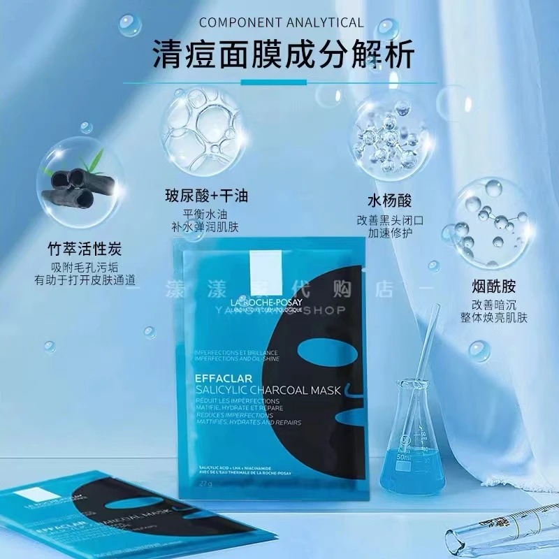 5片/10片 理肤泉清痘净肤修护面膜 黑膜控油 痘肌闭口 水杨刷酸毛孔