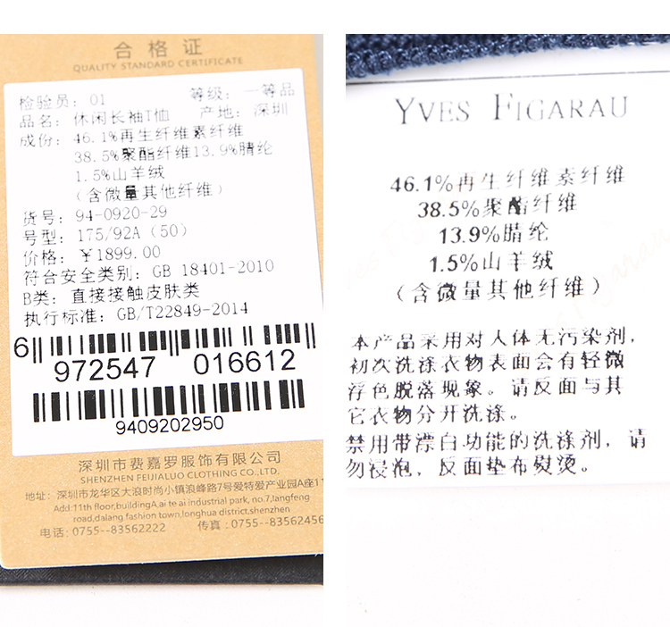 YvesFigarau伊夫·费嘉罗秋冬新款休闲长袖T恤940920