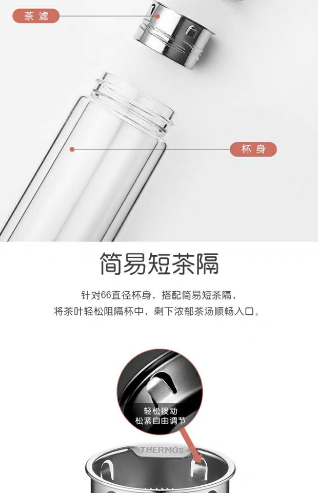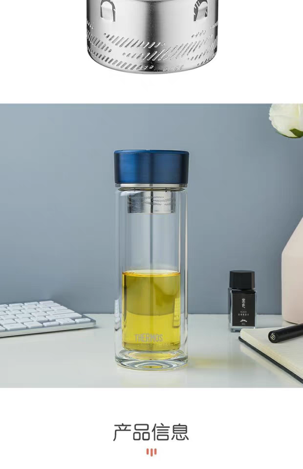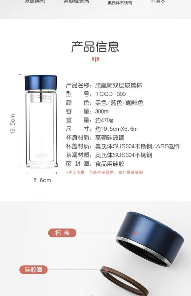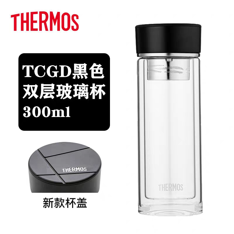 日本膳魔师便携玻璃杯300ml(黑色)水杯