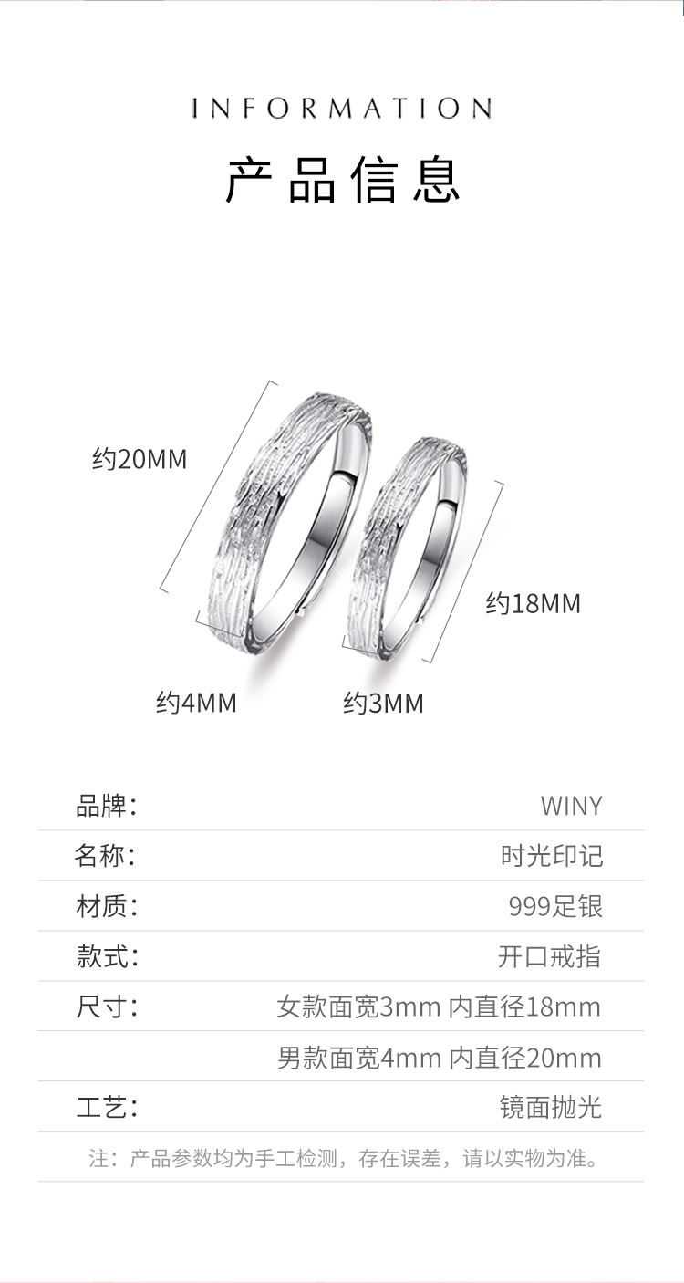 Winy999足银时光印记戒指送女友闺蜜节日生日礼物