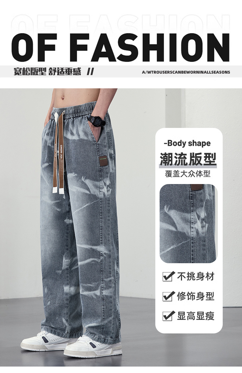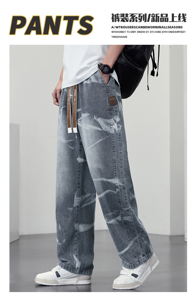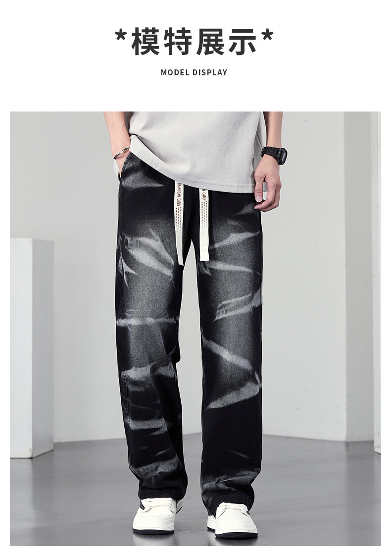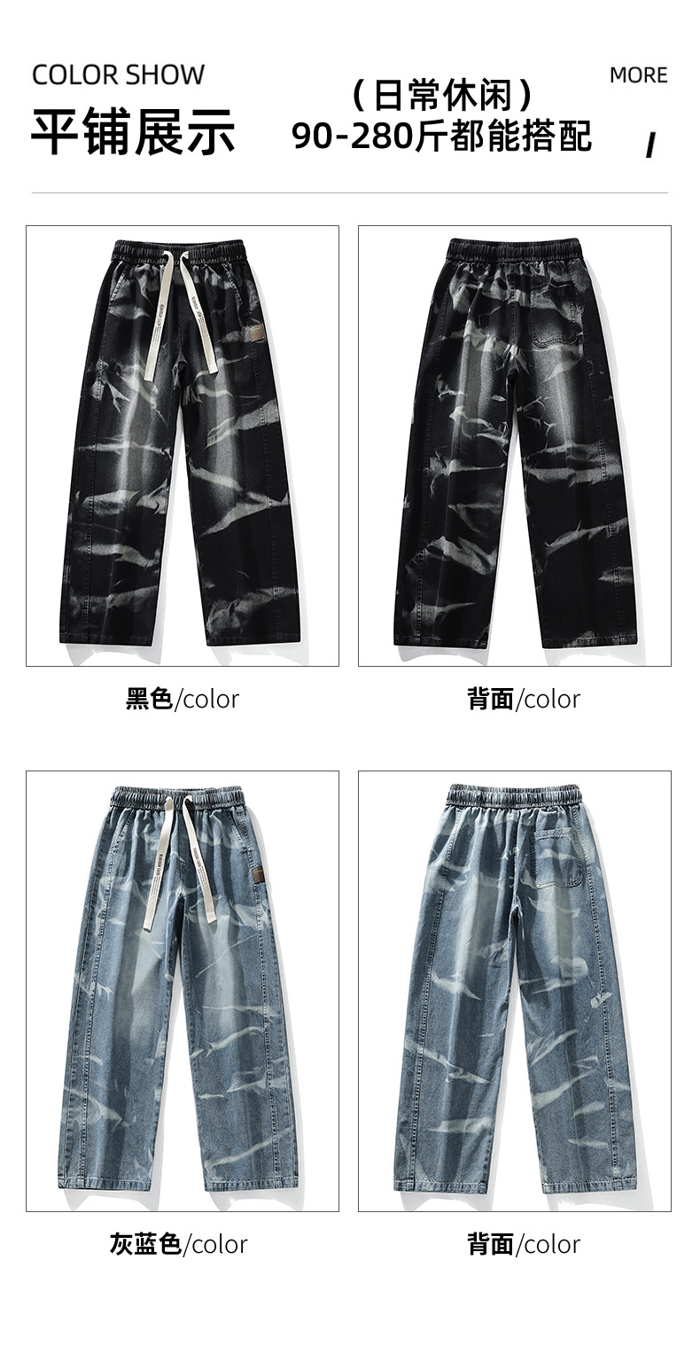 【DYF】大依优型大码男装松紧腰直筒牛仔裤宽松运动休闲风潮流男士胖子长裤 商品图2