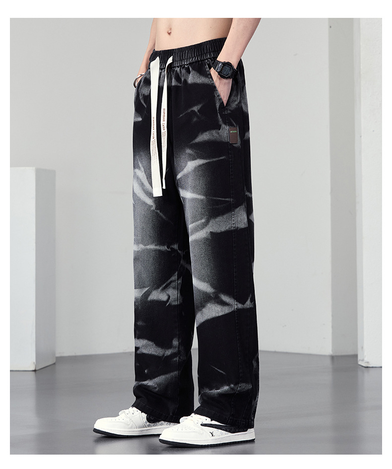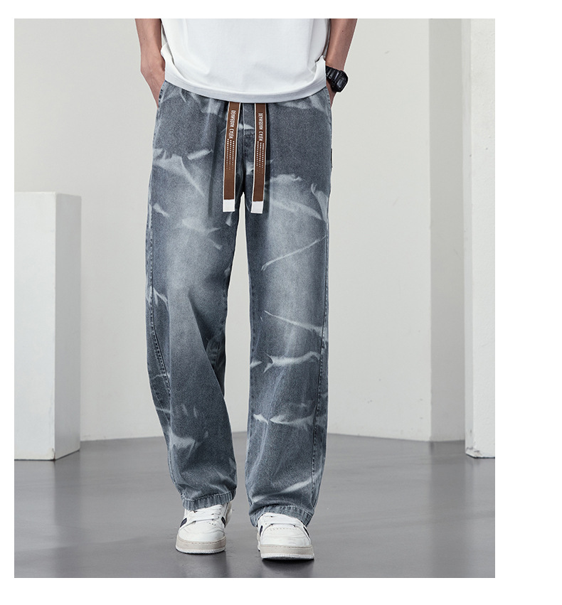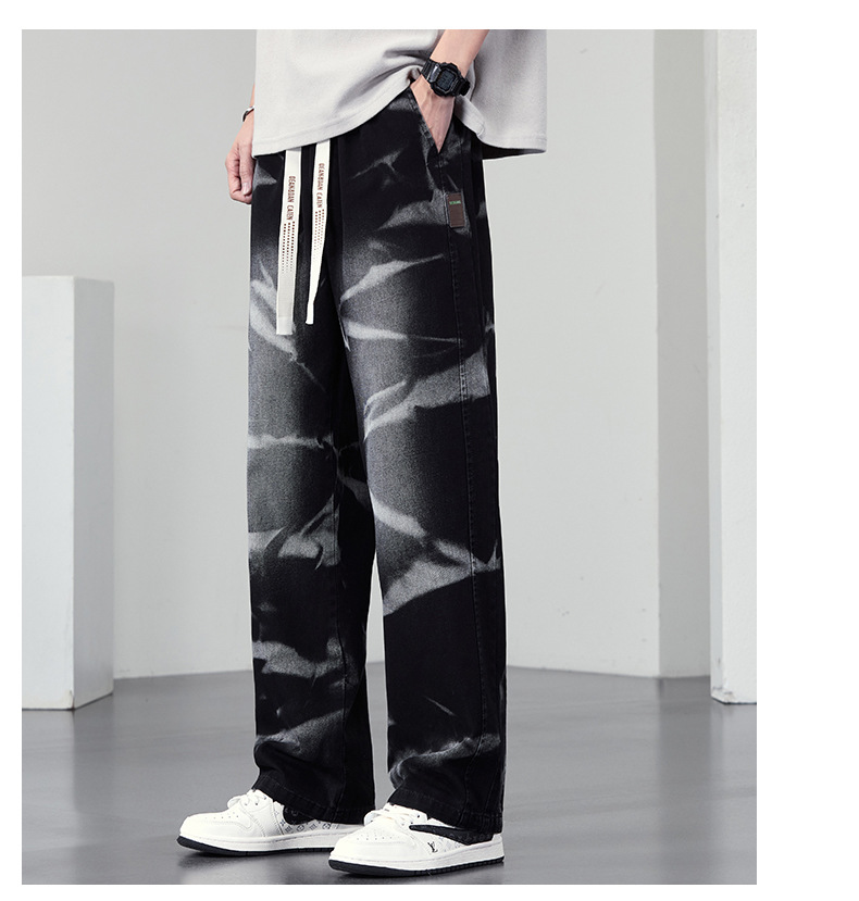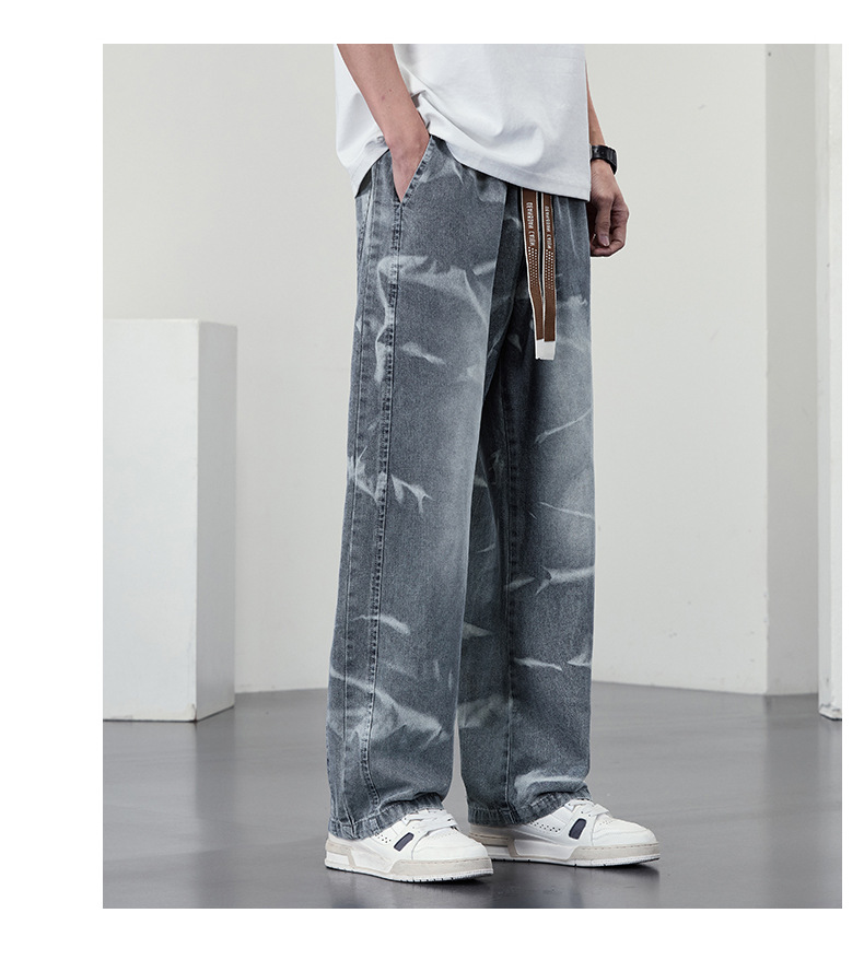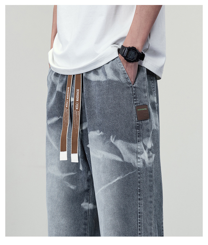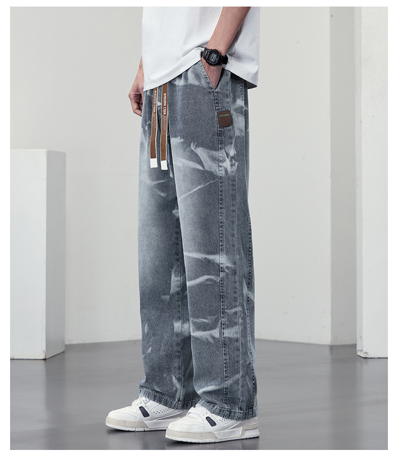 【DYF】大依优型大码男装松紧腰直筒牛仔裤宽松运动休闲风潮流男士胖子长裤 商品图2