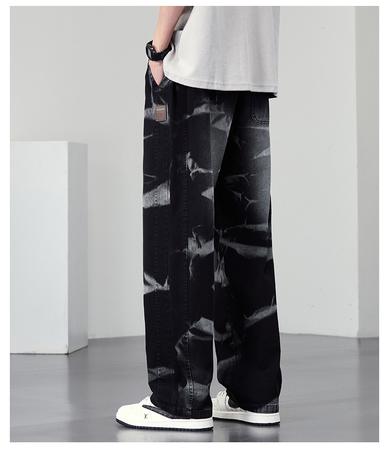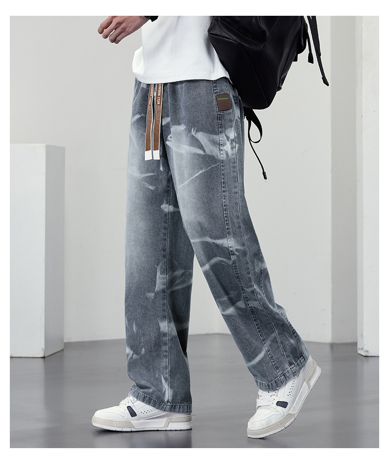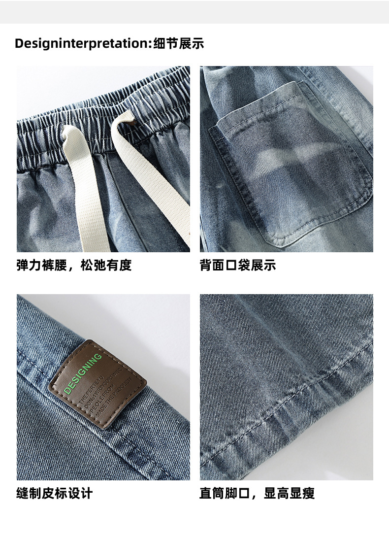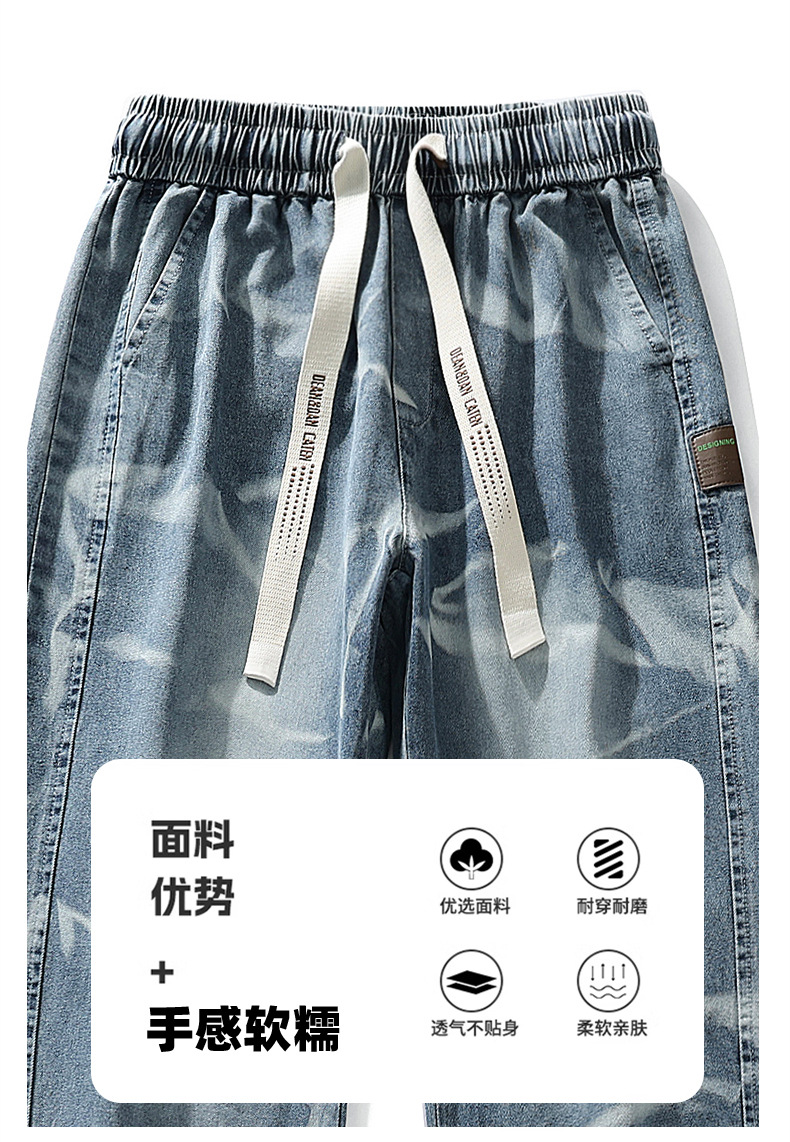 【DYF】大依优型大码男装松紧腰直筒牛仔裤宽松运动休闲风潮流男士胖子长裤 商品图4