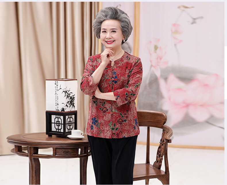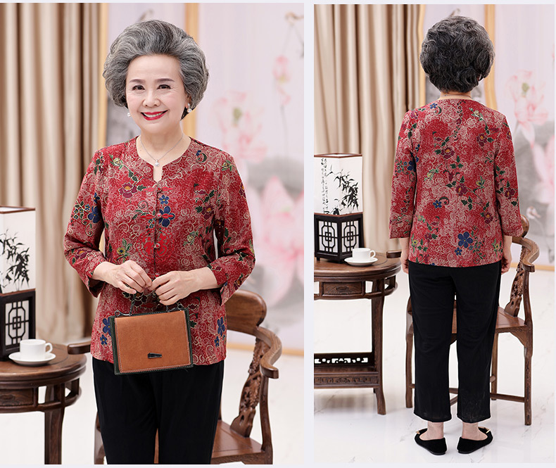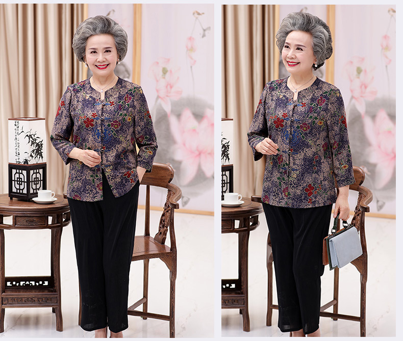 MQQ-LMM0066987夏季中老年圆领开衫衬衫老太太印花套装