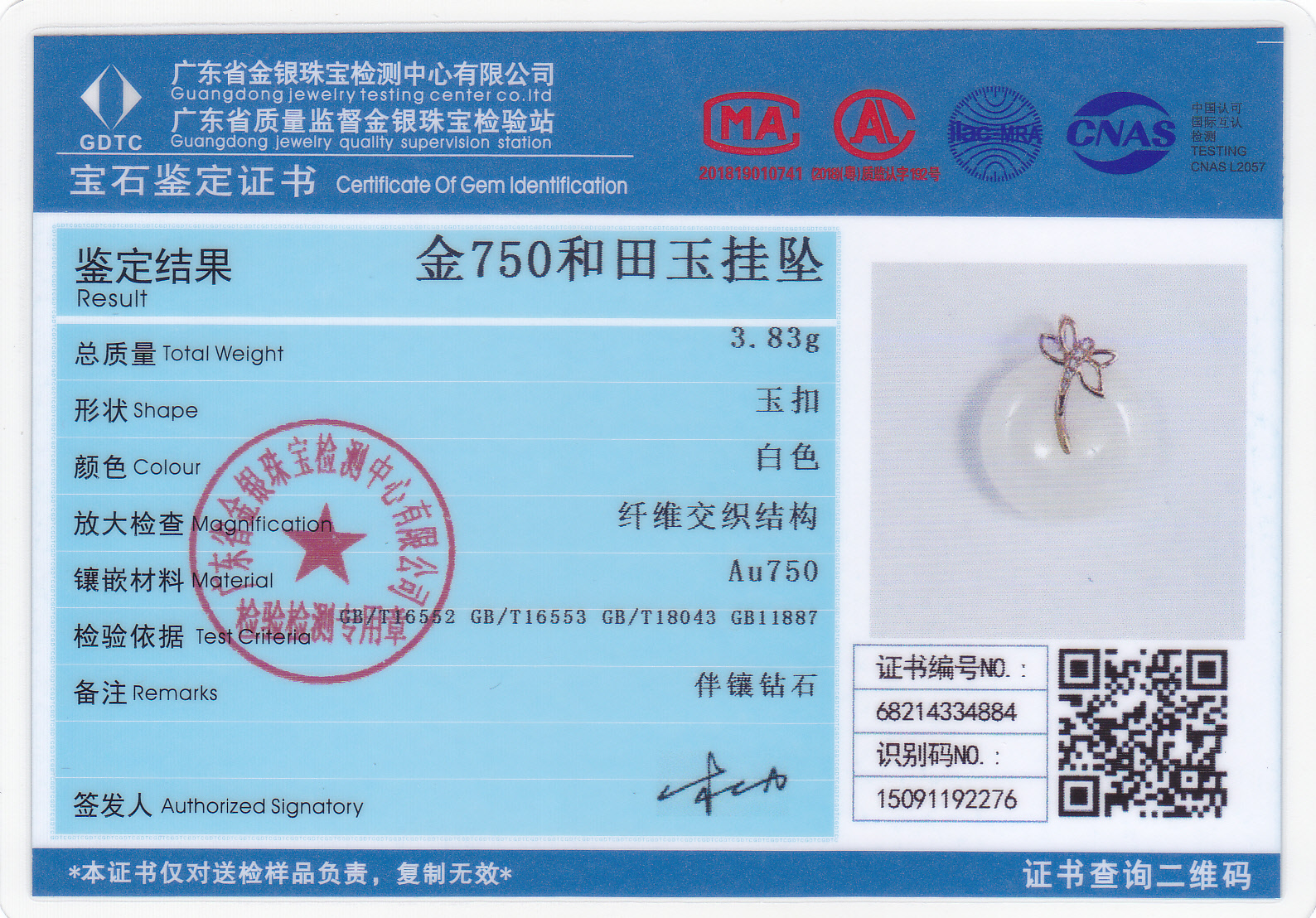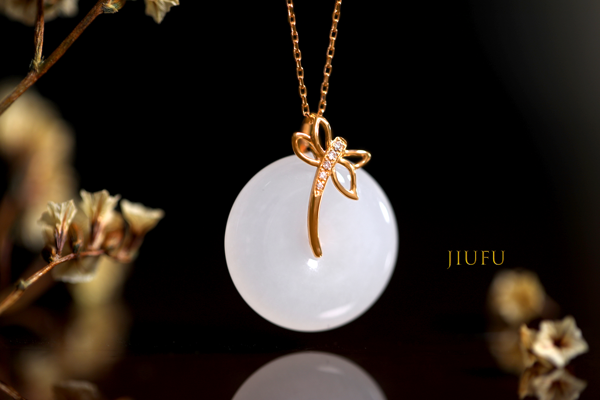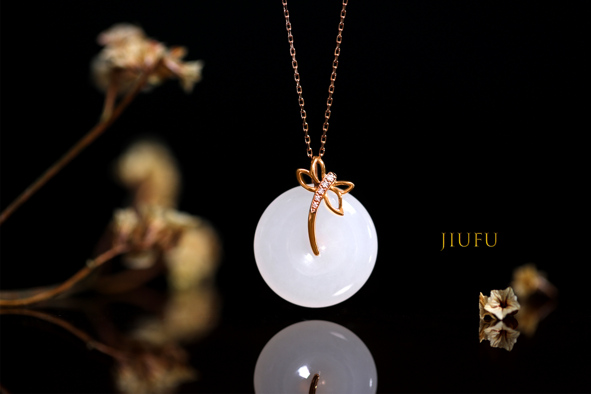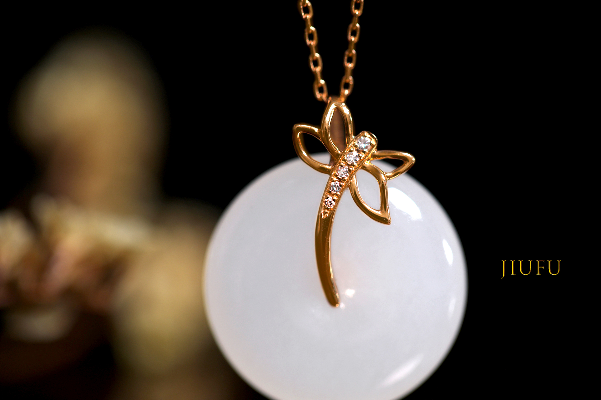 18k玫瑰金和田玉(白玉)吊坠