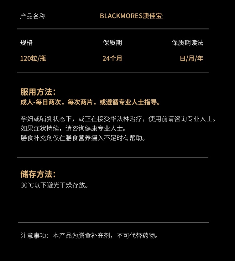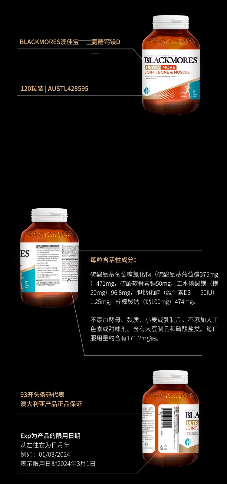 【跨境】澳佳宝Blackmores 氨糖钙镁D 120粒/瓶