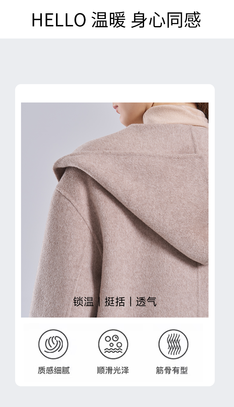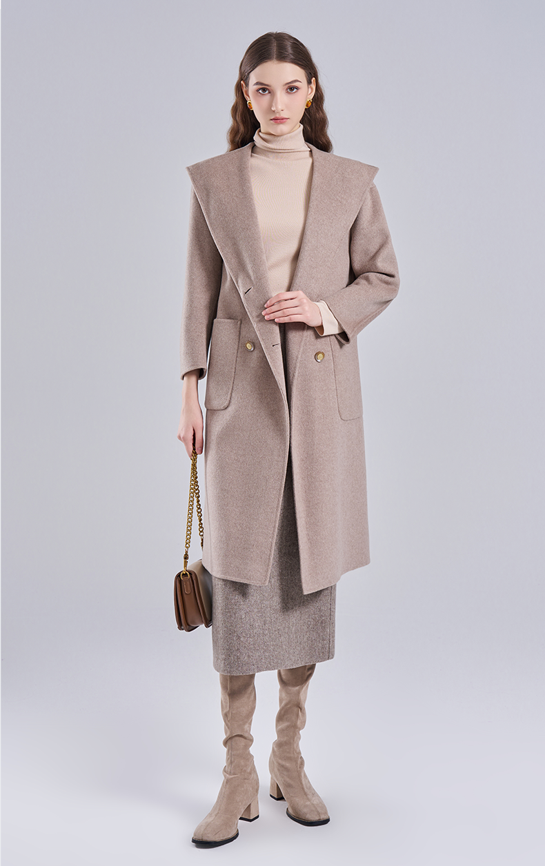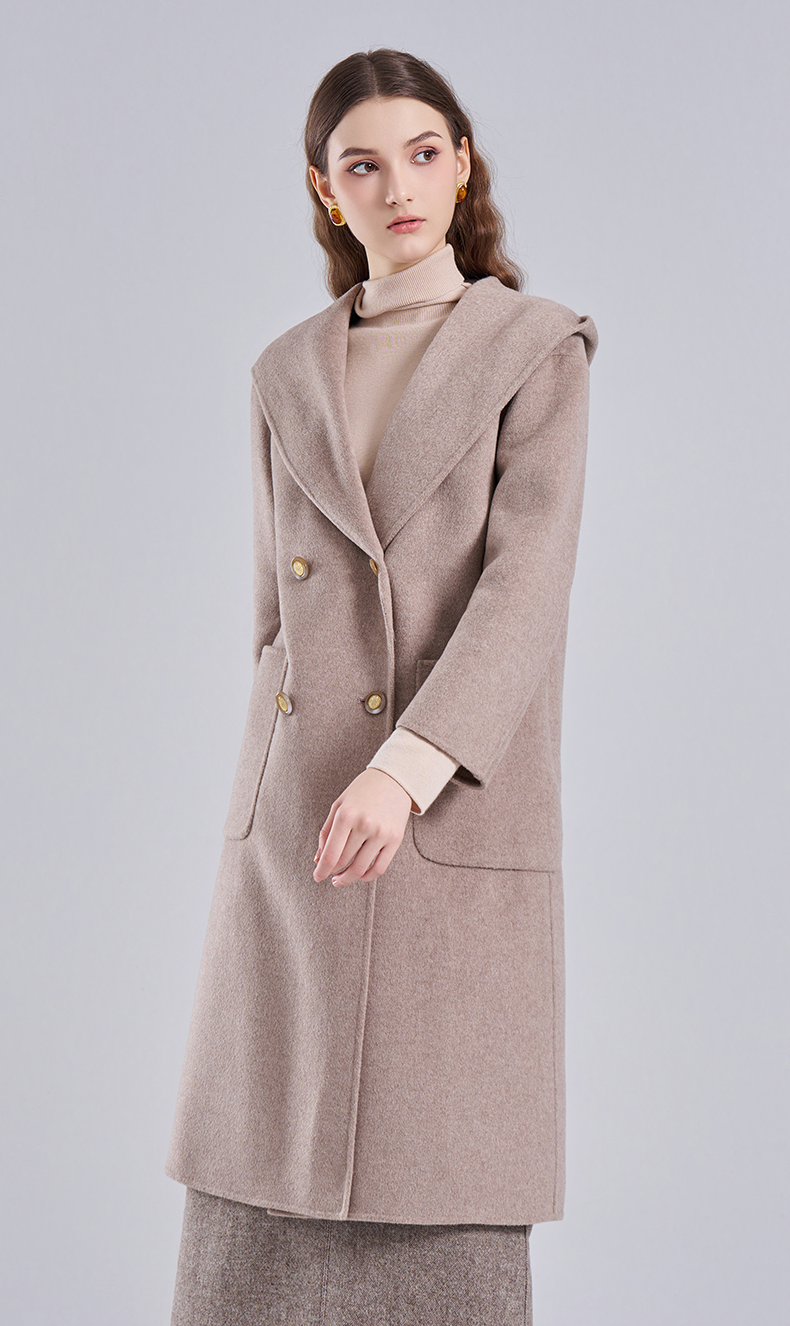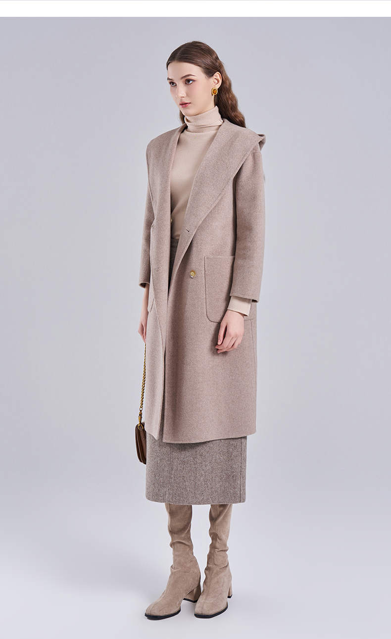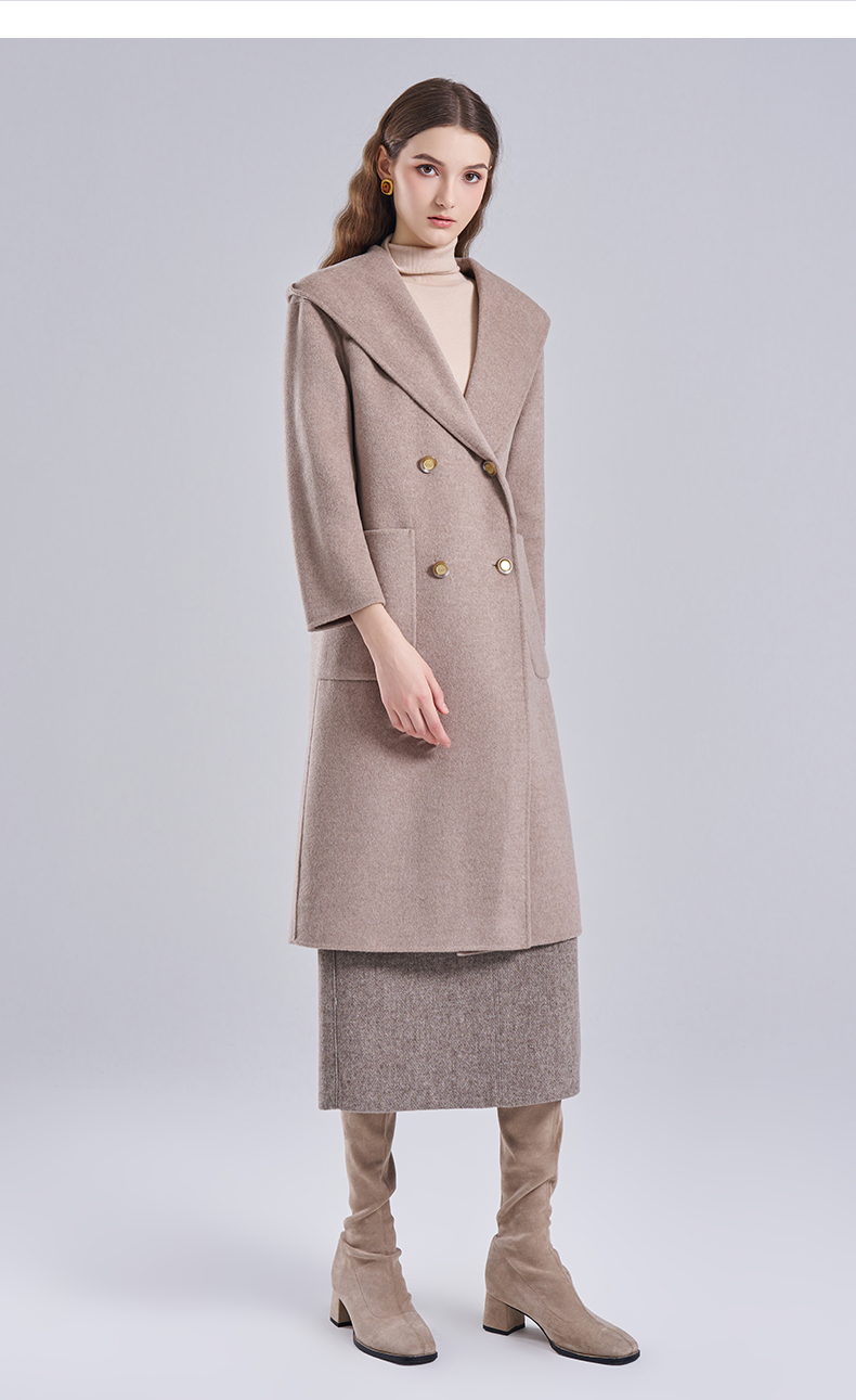 【羊绒】乔万尼秋冬新款羊毛大衣羊绒毛呢连帽外套ET4A849