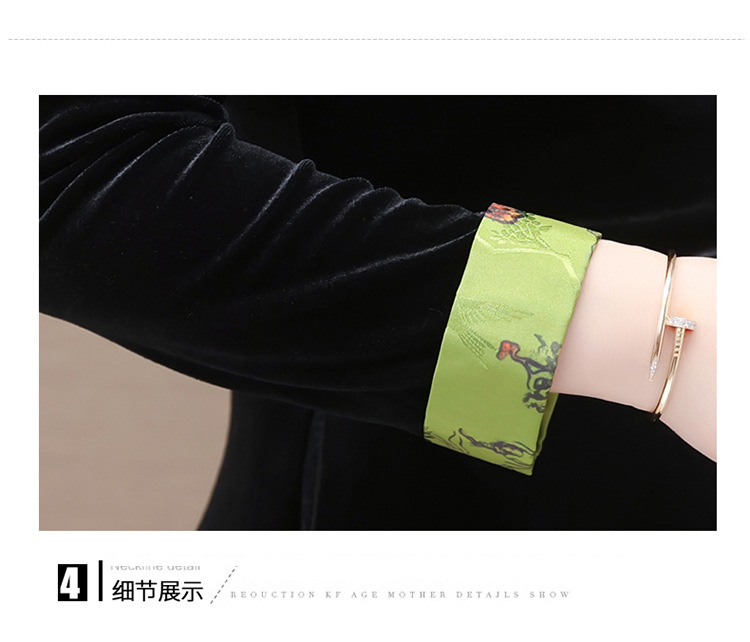 QYM 23X8327-Y金丝绒连衣裙中长裙拼色开衩A字裙 商品图3