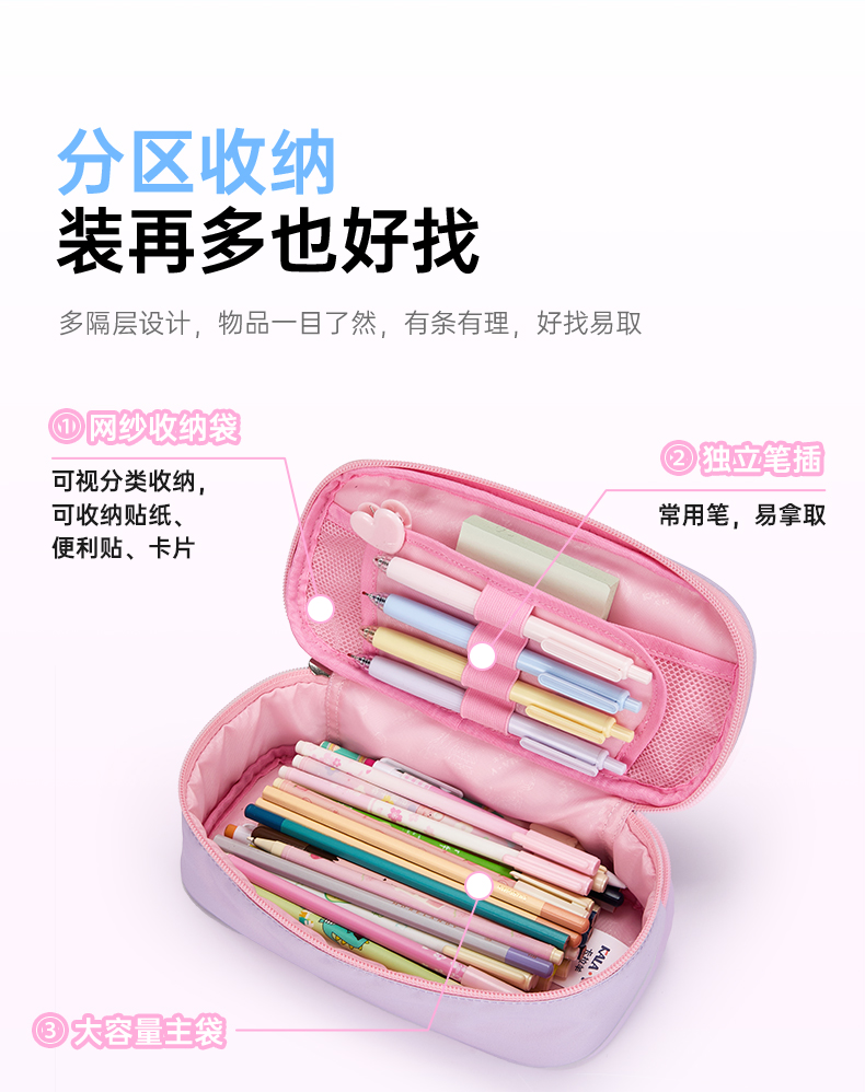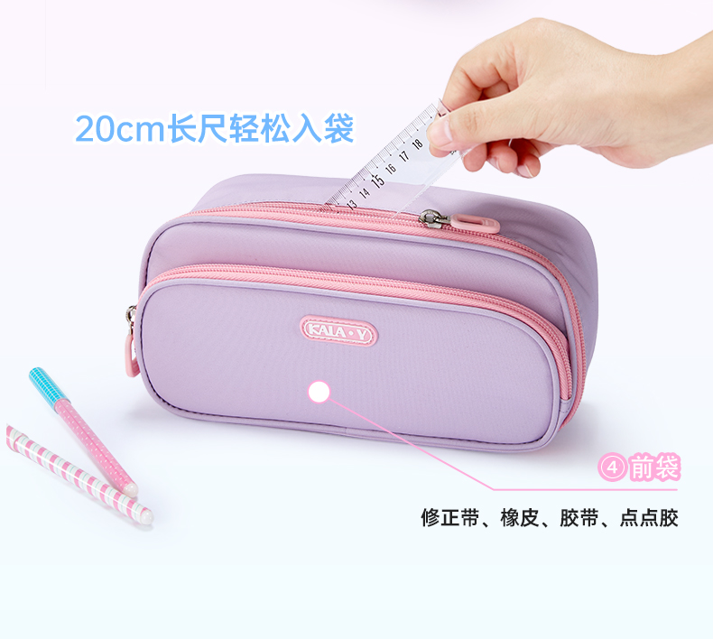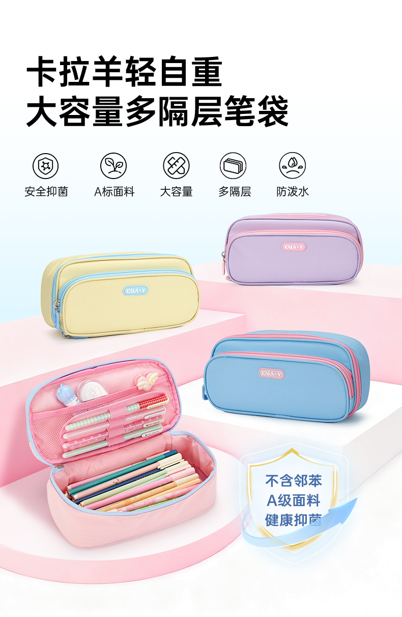 卡拉羊简约多用超大容量学生笔袋学霸必备A类抑菌多层笔袋CX0069