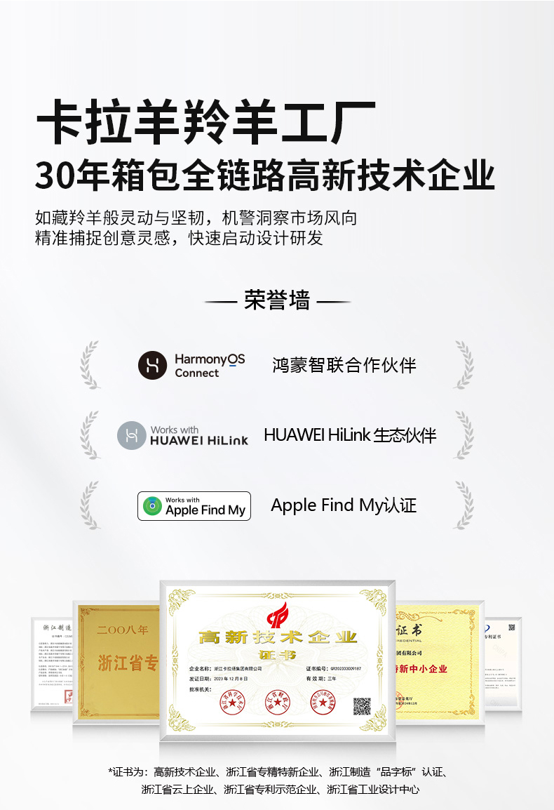 - 浙江卡拉扬集团有限公司专注箱包27年,旗下有卡拉羊和9UM两大品牌,有浙江海宁和江苏沭阳两大工厂,拥有多项知识产权,是集智能化、设计生产、品牌营销为一体的综合型企业。