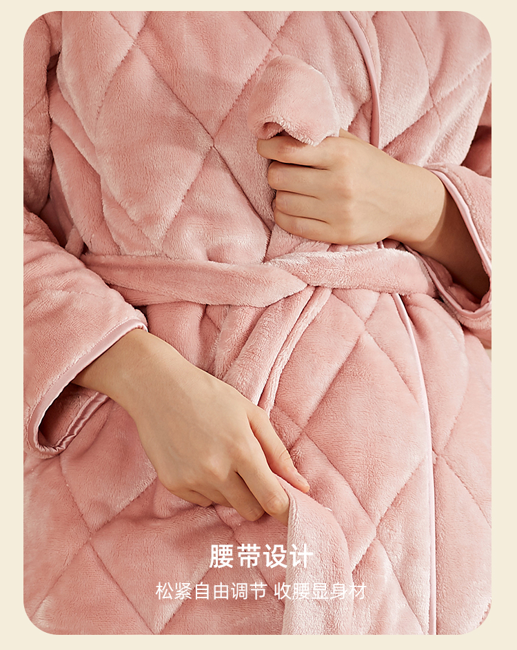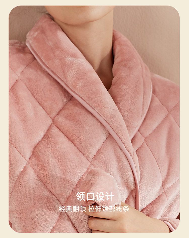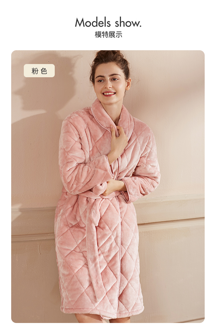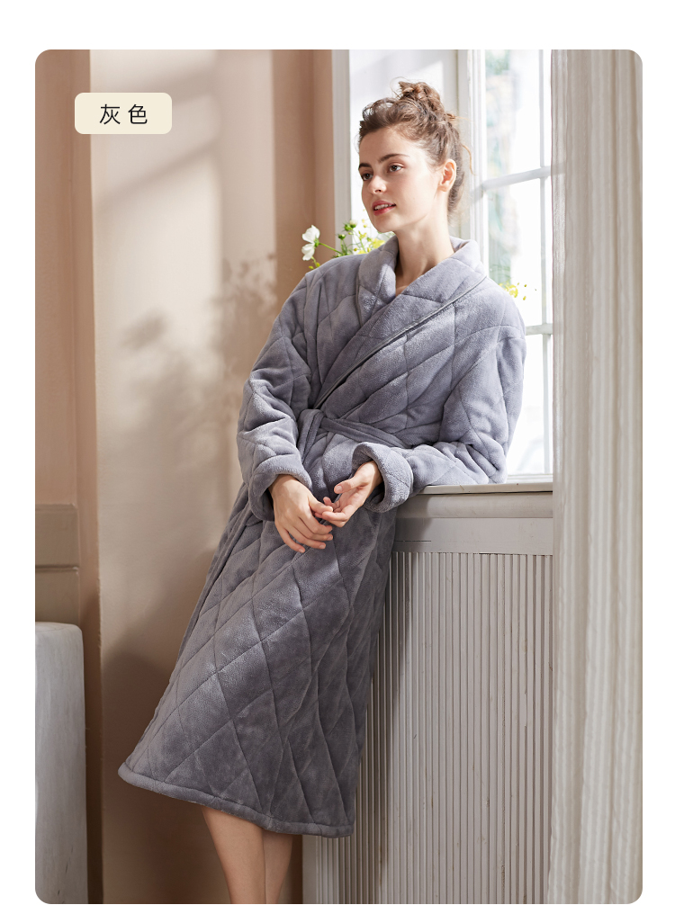 弗利少女屋睡袍女冬季加绒加厚保暖珊瑚绒长款家居服睡衣可外穿新