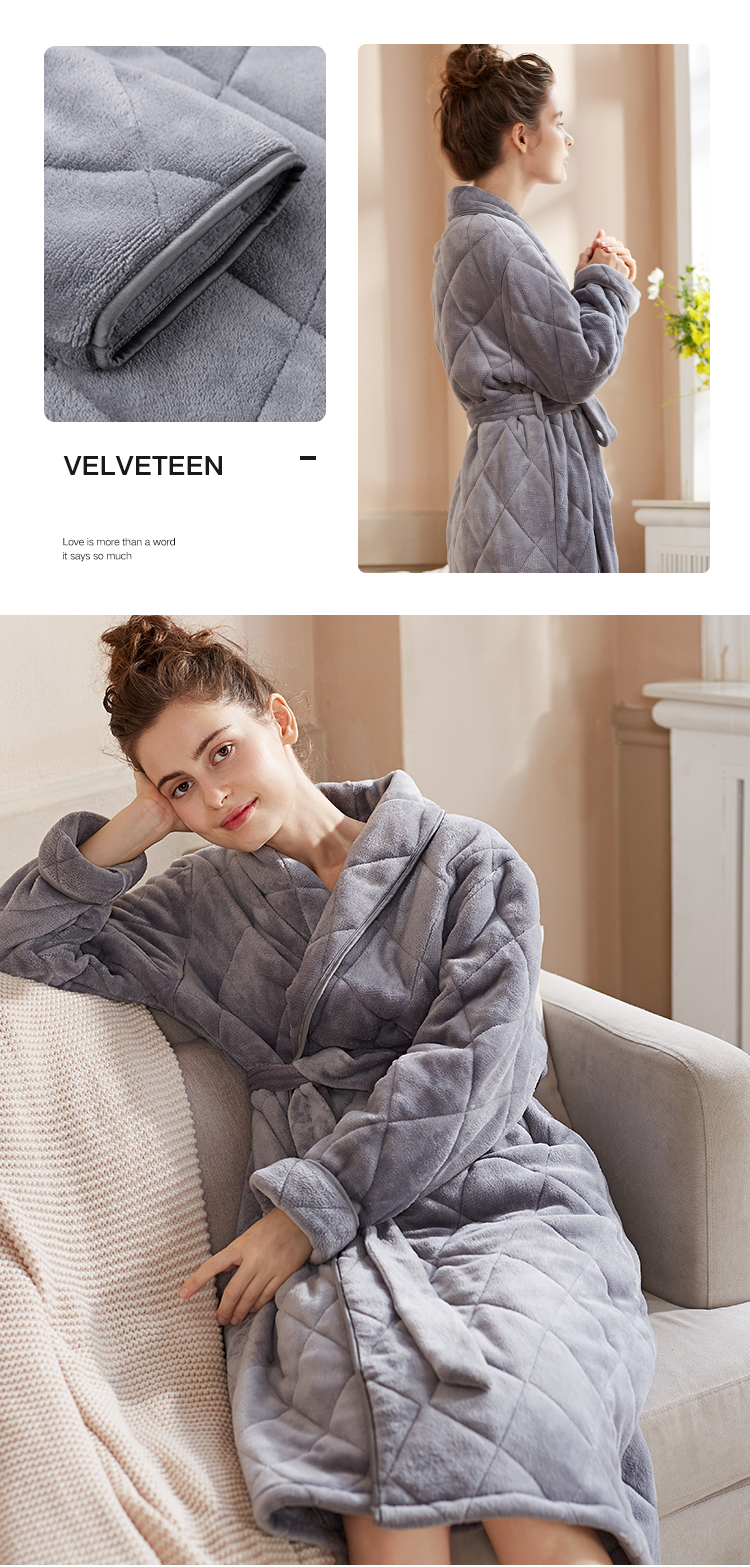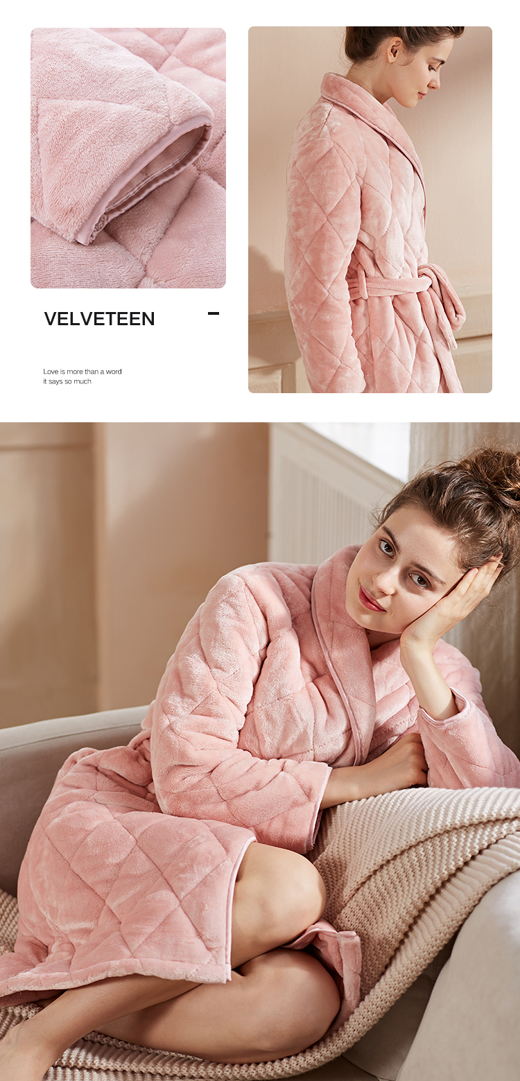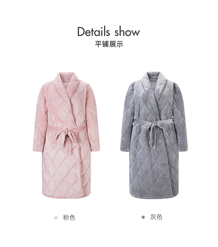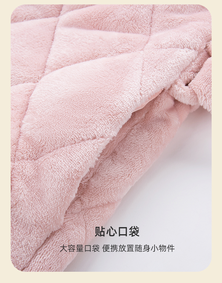 弗利少女屋睡袍女冬季加绒加厚保暖珊瑚绒长款家居服睡衣可外穿新