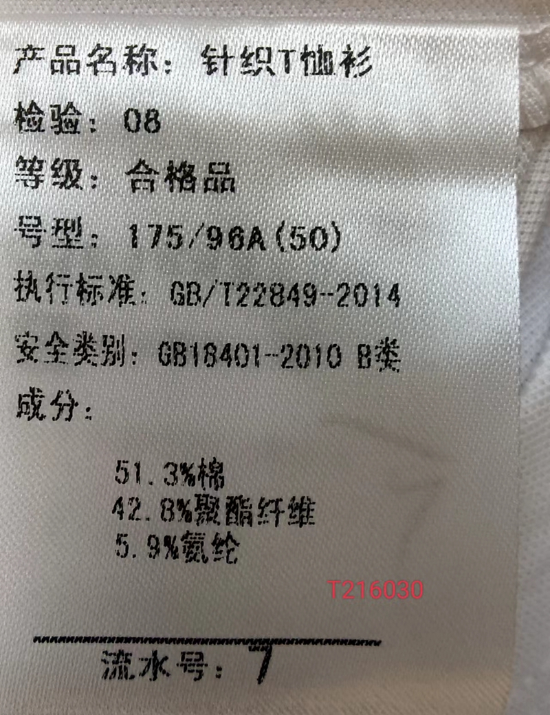 面料:51.3%棉 42.8%聚酯纤维 5.9%氨纶