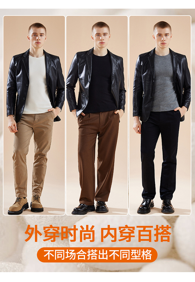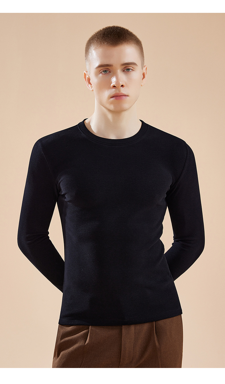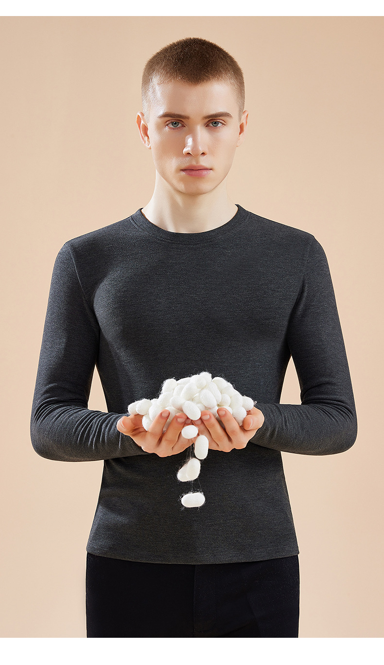 「自j」全新升级【铂金会员119/天猫159/差价40】(15453)洛诗琳发热腈纶圆领保暖上衣男士2025秋冬加绒加厚内搭打底衫蚕丝内衣含羊毛秋衣