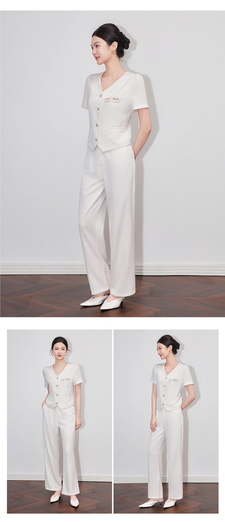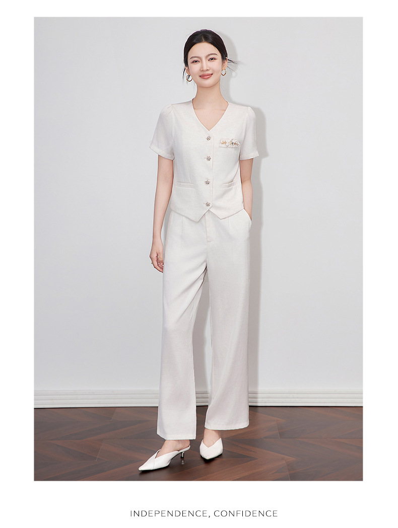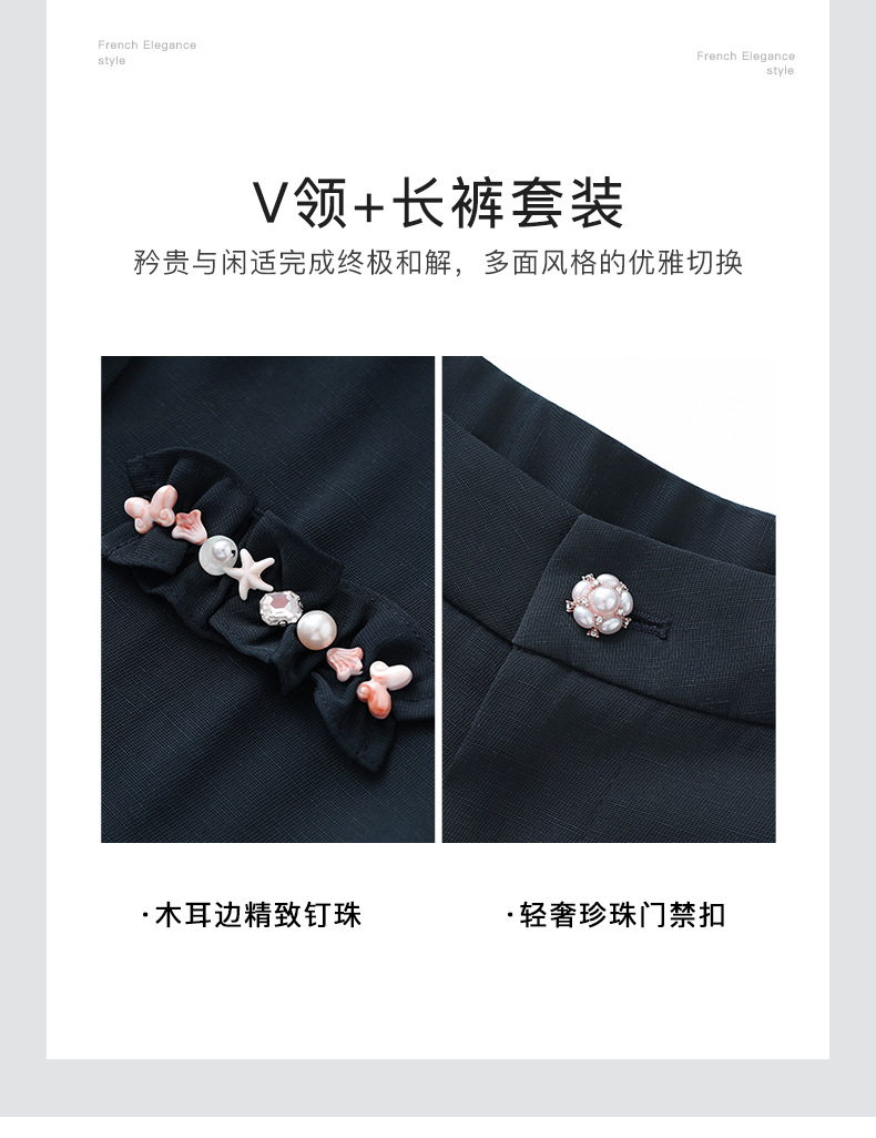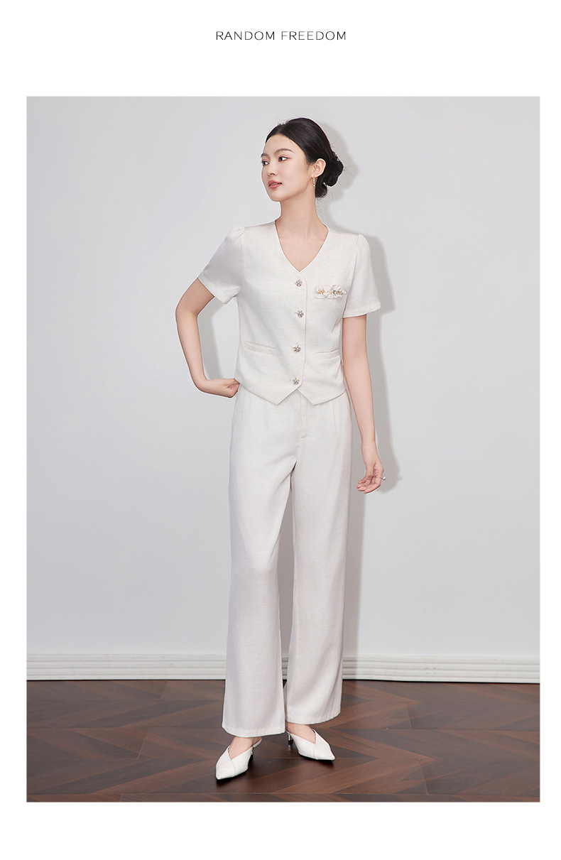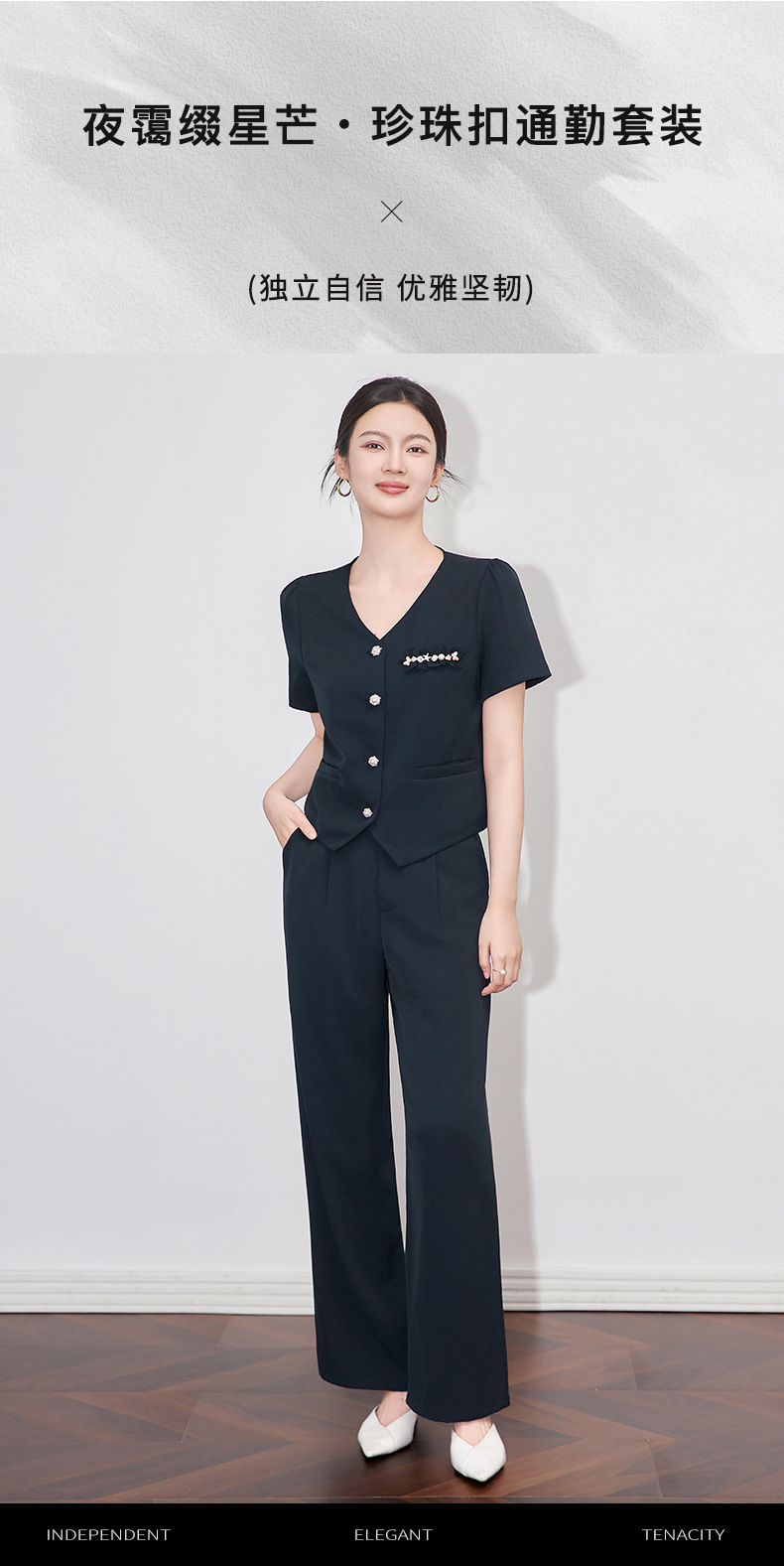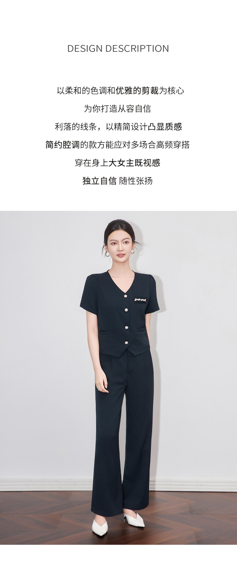 「高货wl」全新升级【铂金会员431/天猫579/差价148】(99124)洛诗琳夏季简约通勤V领短袖上衣通勤显瘦直筒裤两件套女