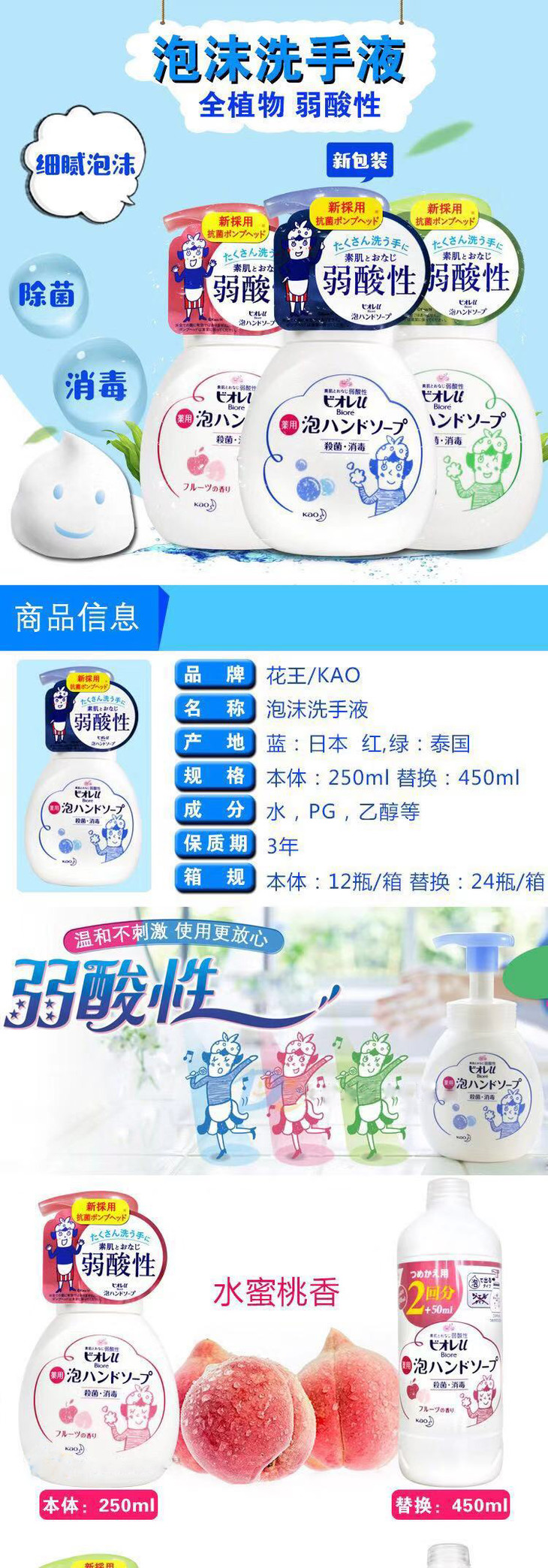 日本花王(Biore)碧柔药用植物弱酸儿童洗手液250ml
