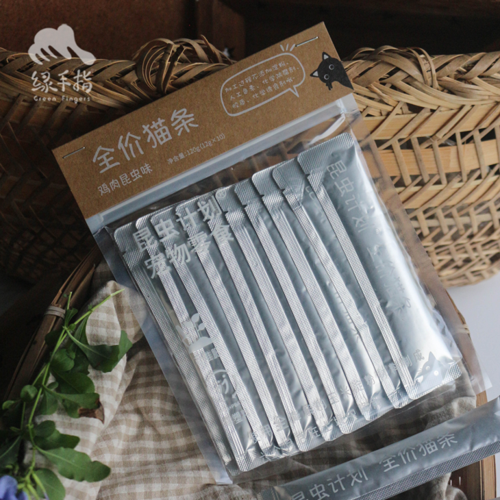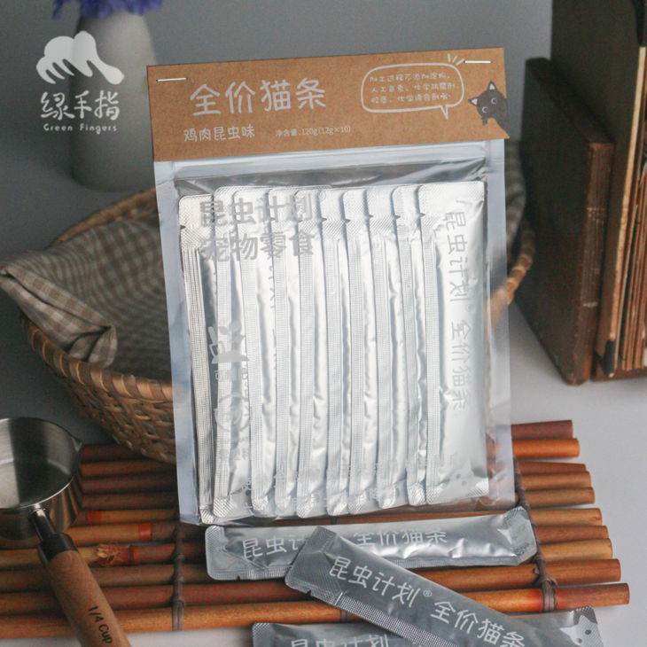 生产方式:昆虫蛋白宠物猫条符合宠物营养需求,不乱添加,加工过程中不使用化学防腐剂,化学色素、化学诱食剂;原料不使用转基因原料;能够切实改善或者提升宠物的健康水平。