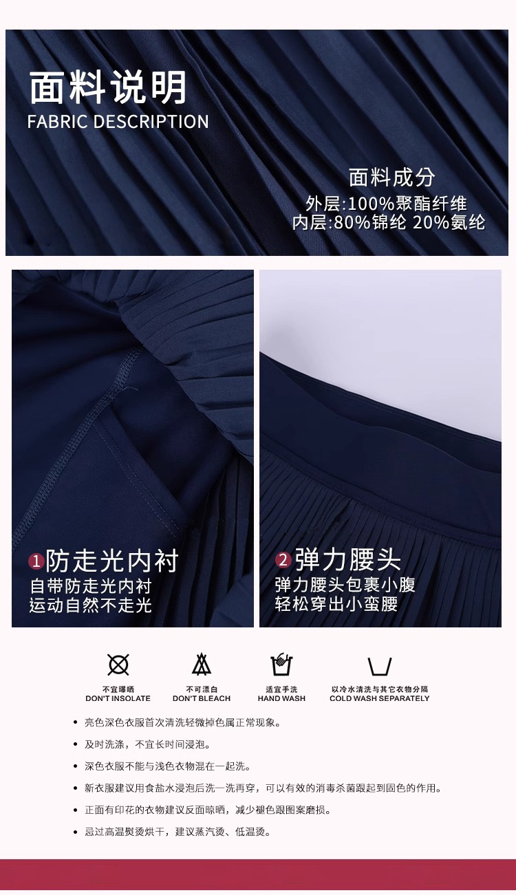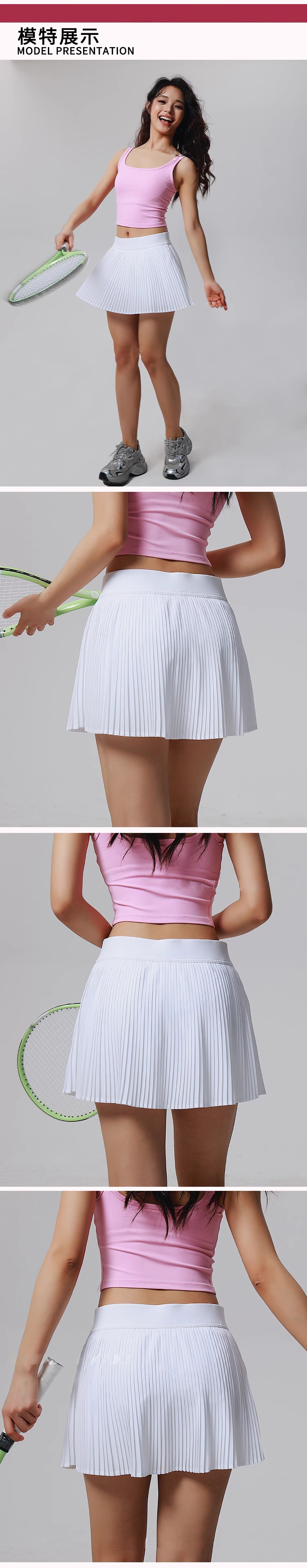 跃牌【美西西系列】2025运动百褶裙双层带口袋防走光网球跑步健身假两件跳操瑜伽短裙DQ-505