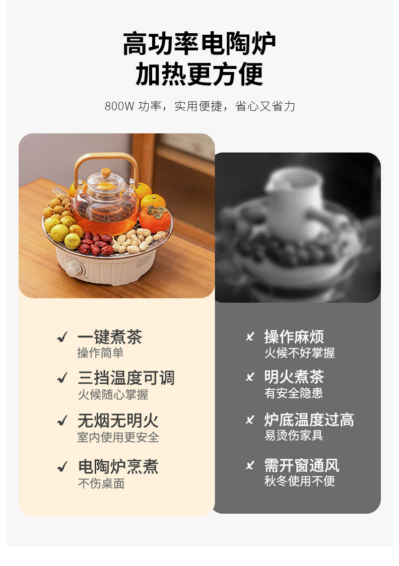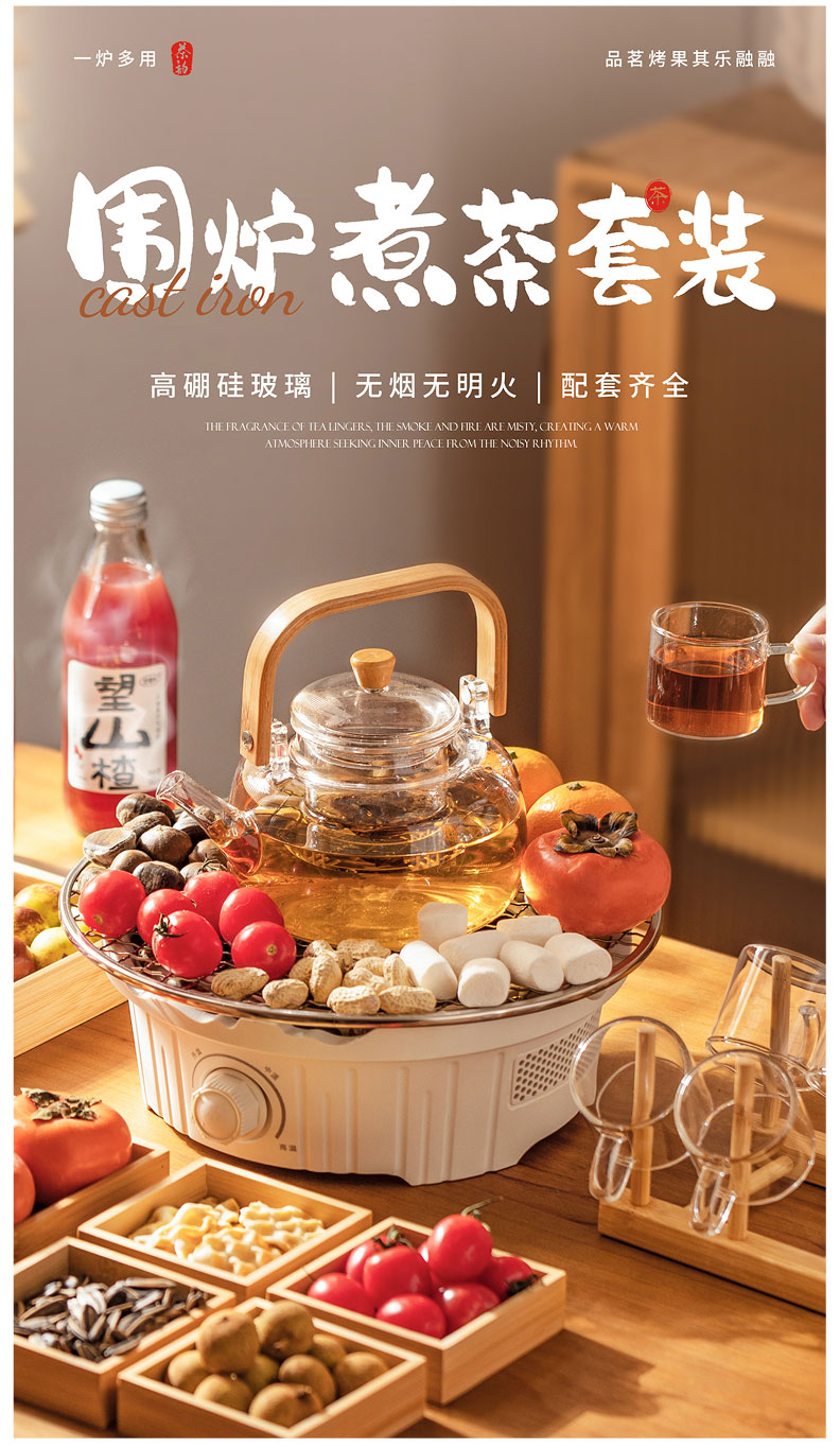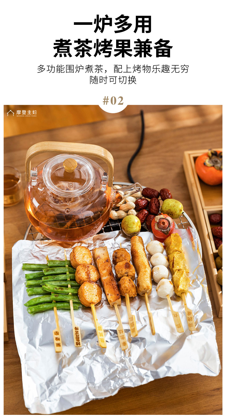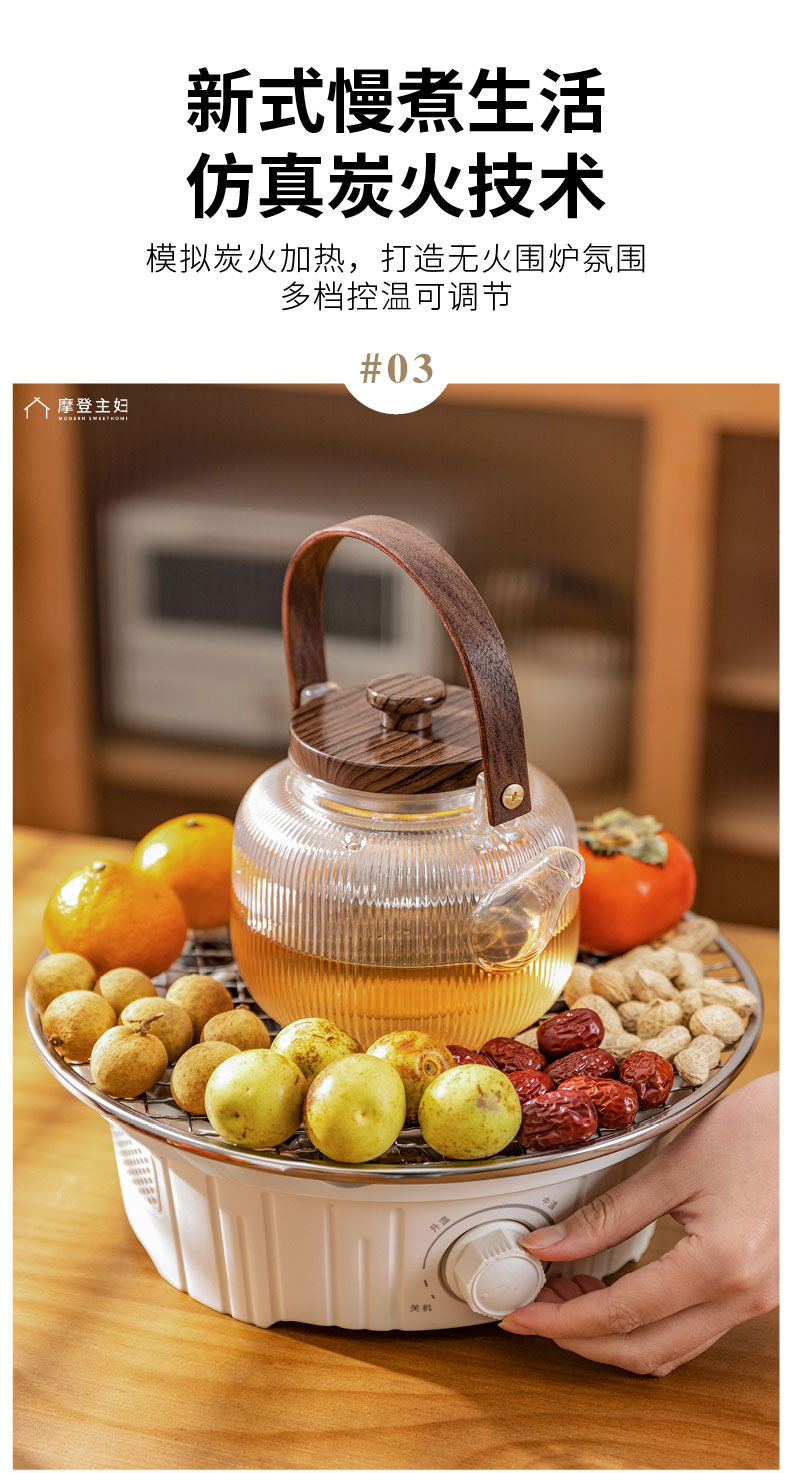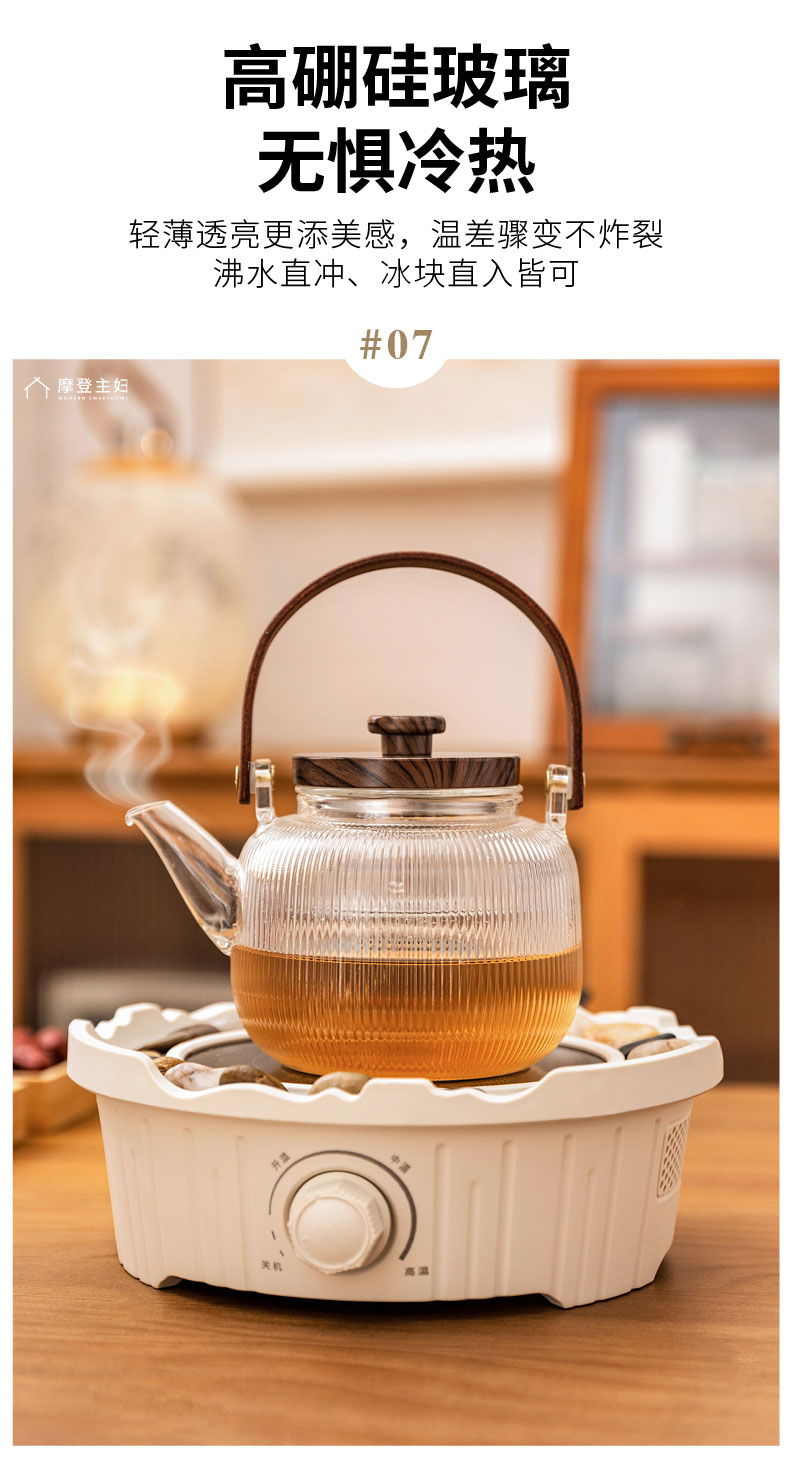 摩登主妇围炉煮茶壶2024新款家用电陶炉可加热玻璃泡茶壶茶具套装