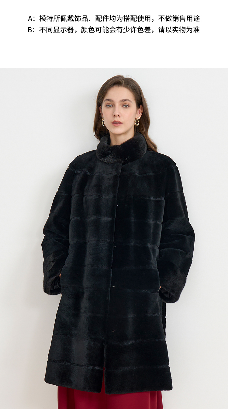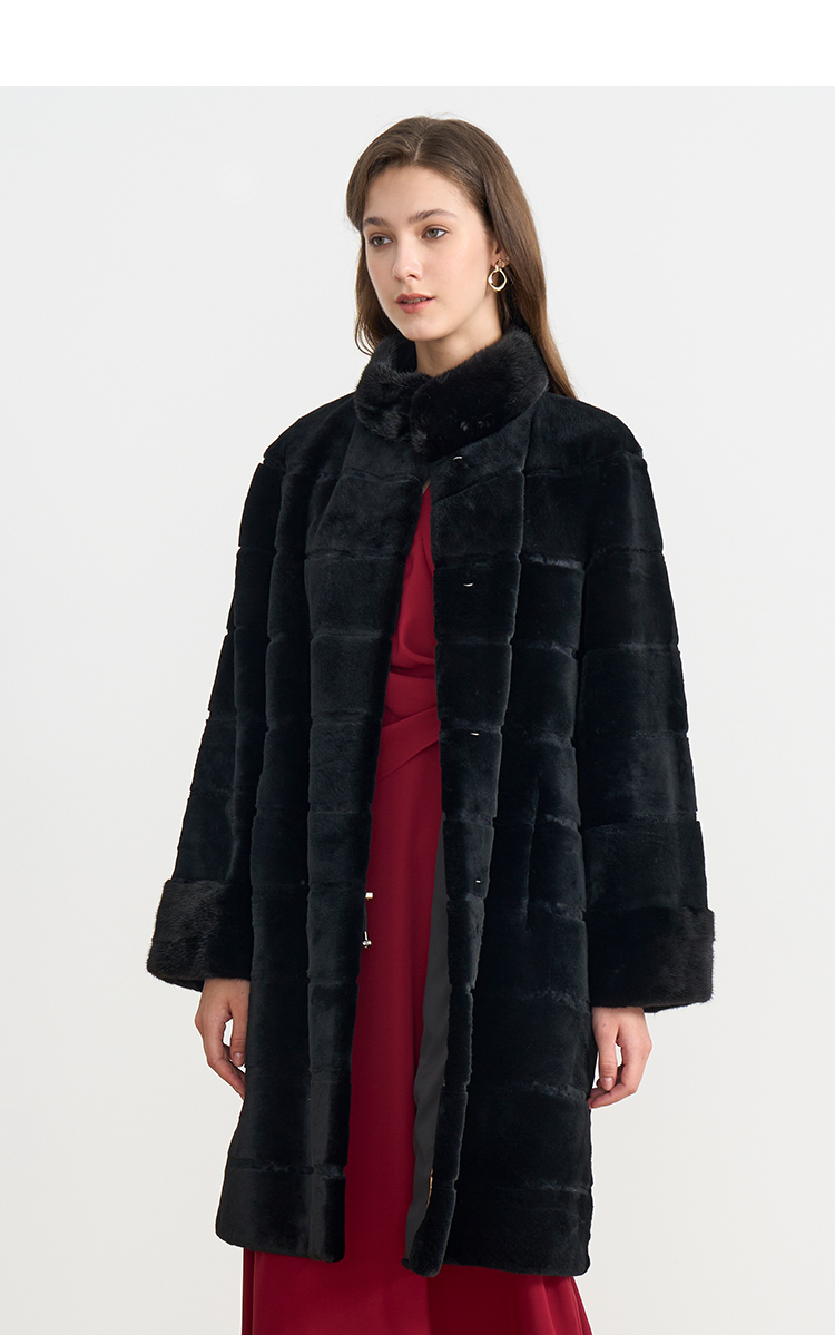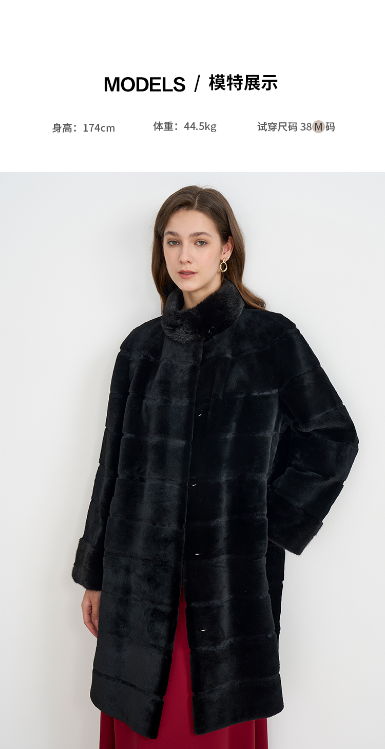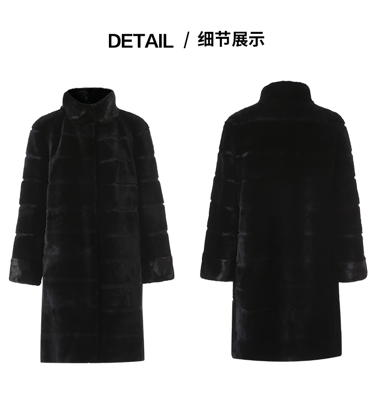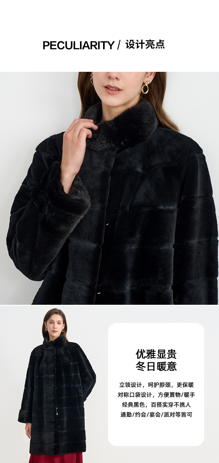 EITIE爱特爱黑色立领保暖中长款水貂毛皮草外套大衣2025冬季新款D2593909X