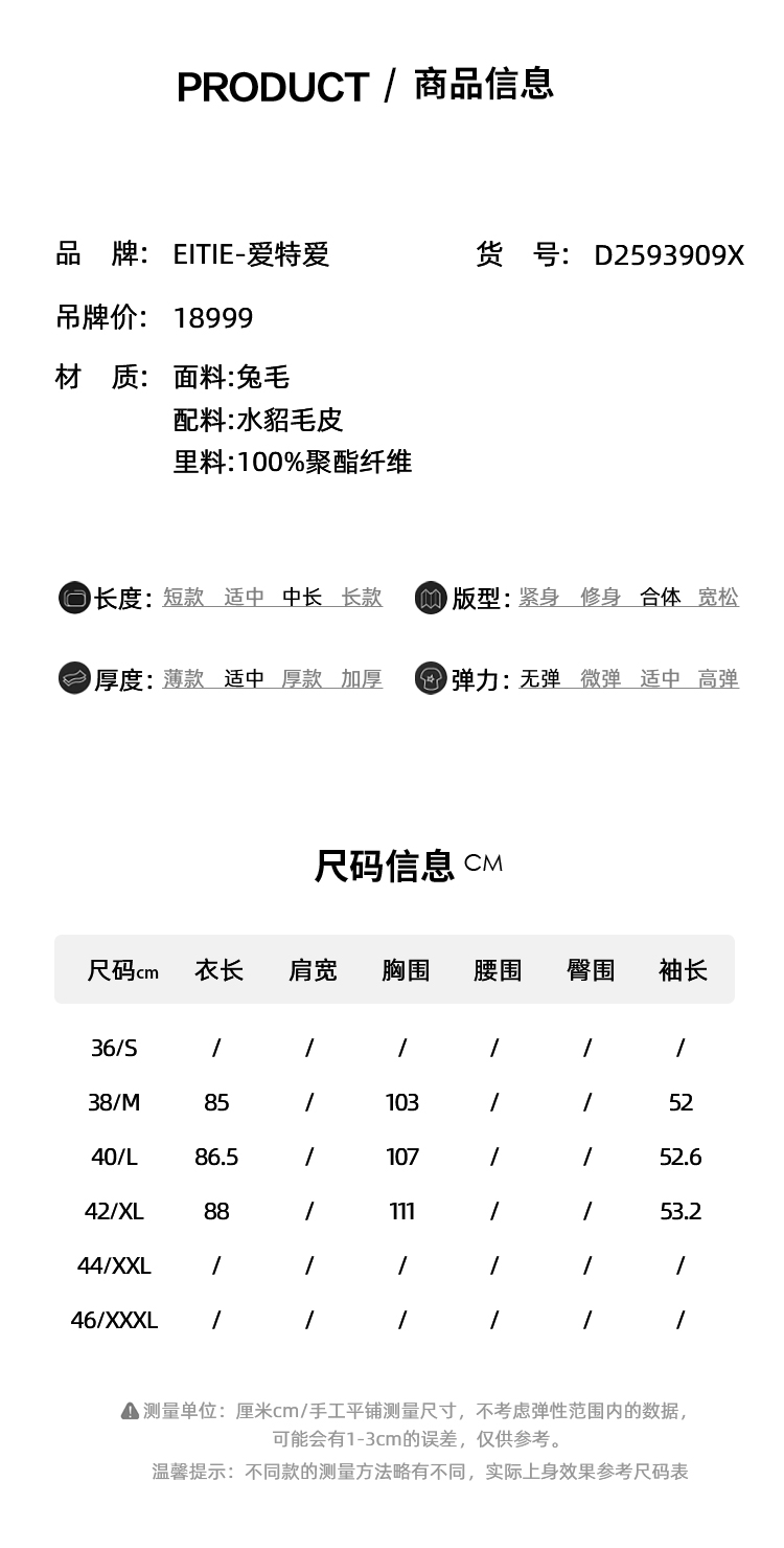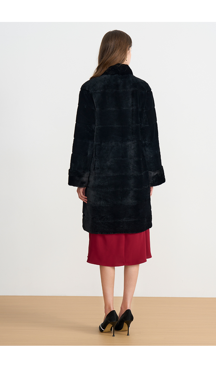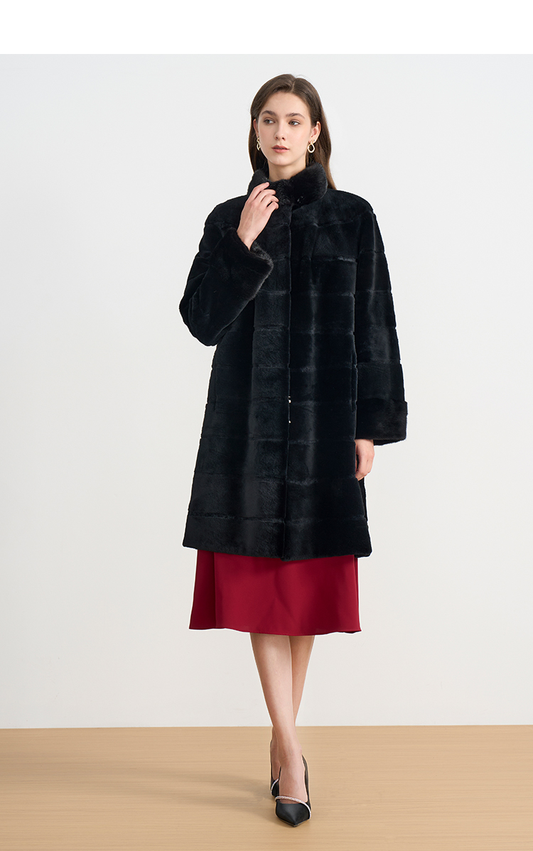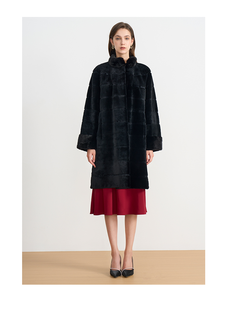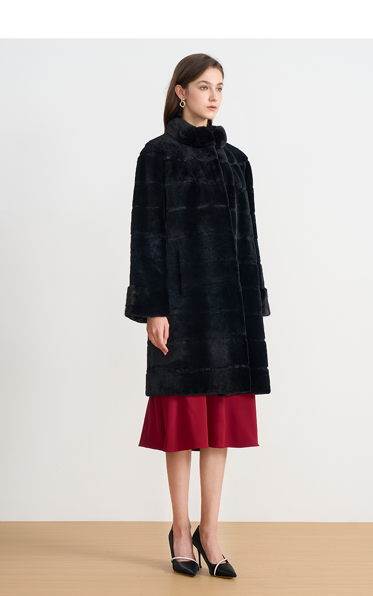 EITIE爱特爱黑色立领保暖中长款水貂毛皮草外套大衣2025冬季新款D2593909X