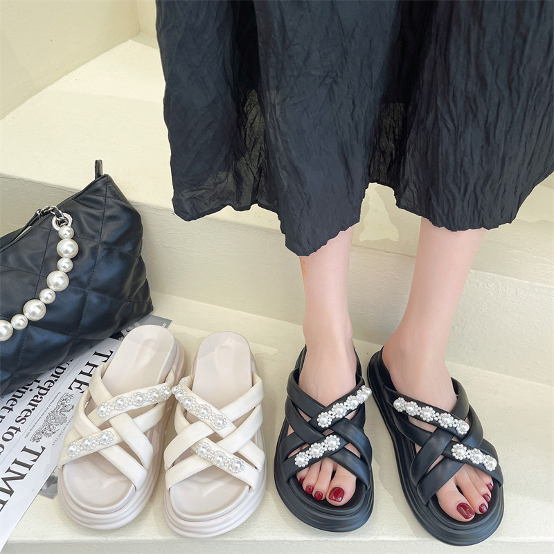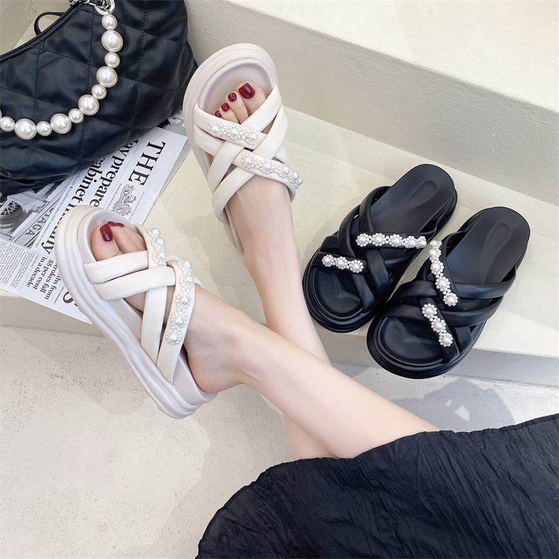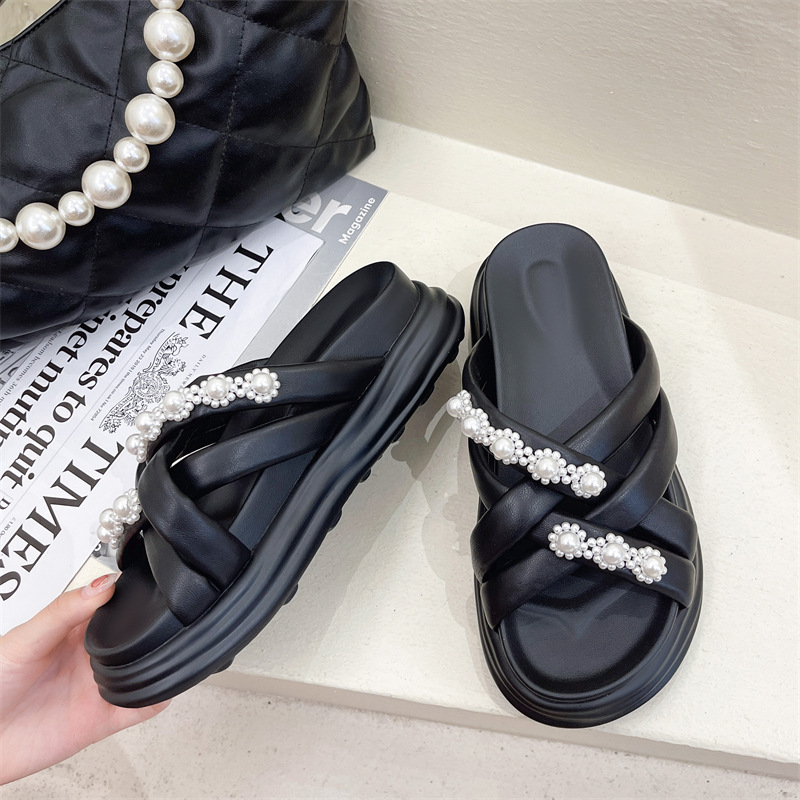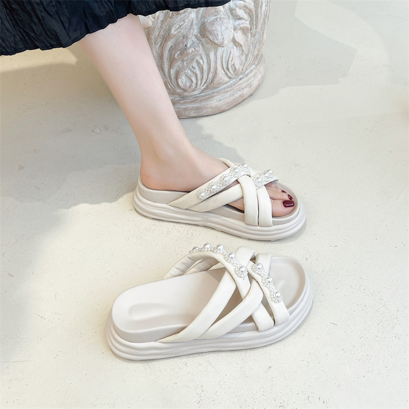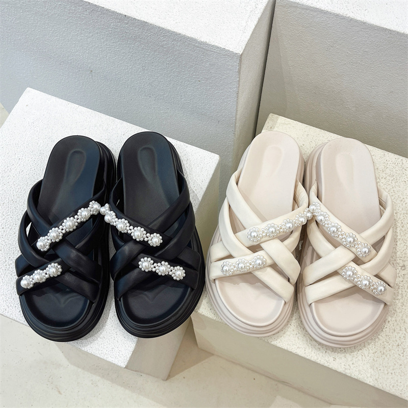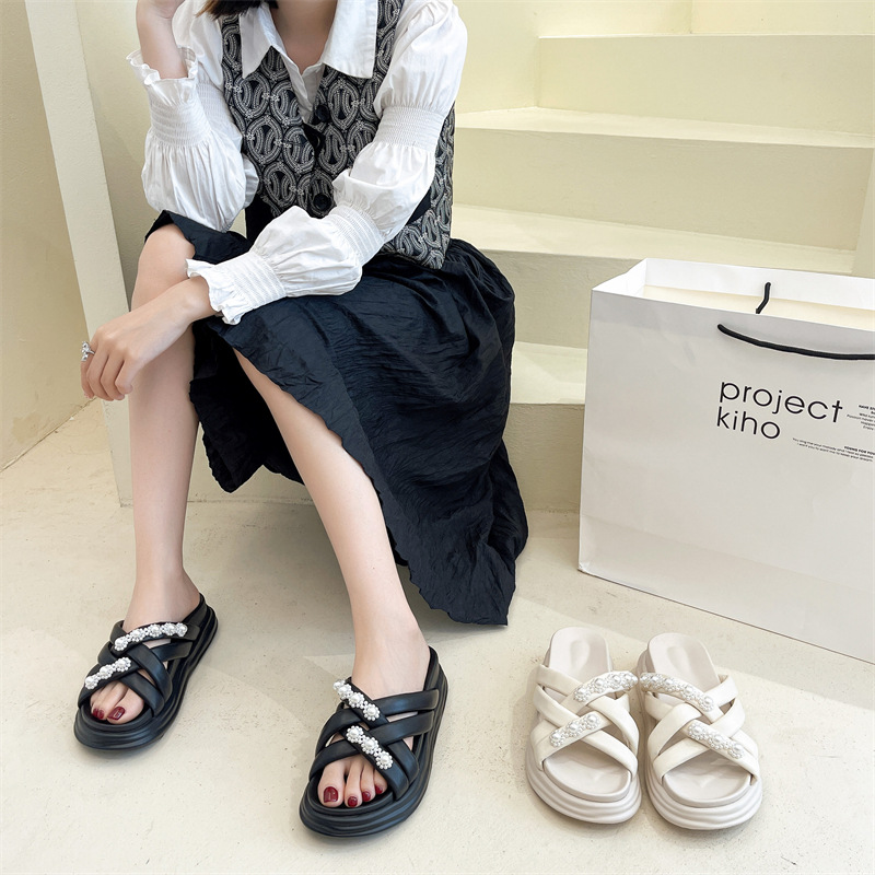 新款外穿羊皮一字拖时尚休闲百搭厚底 MB-0015