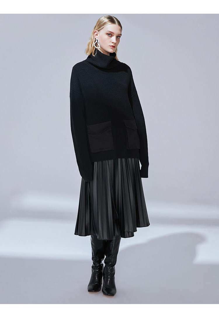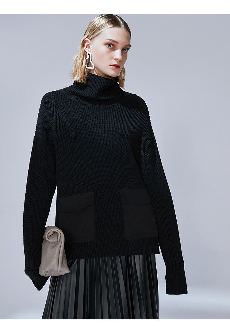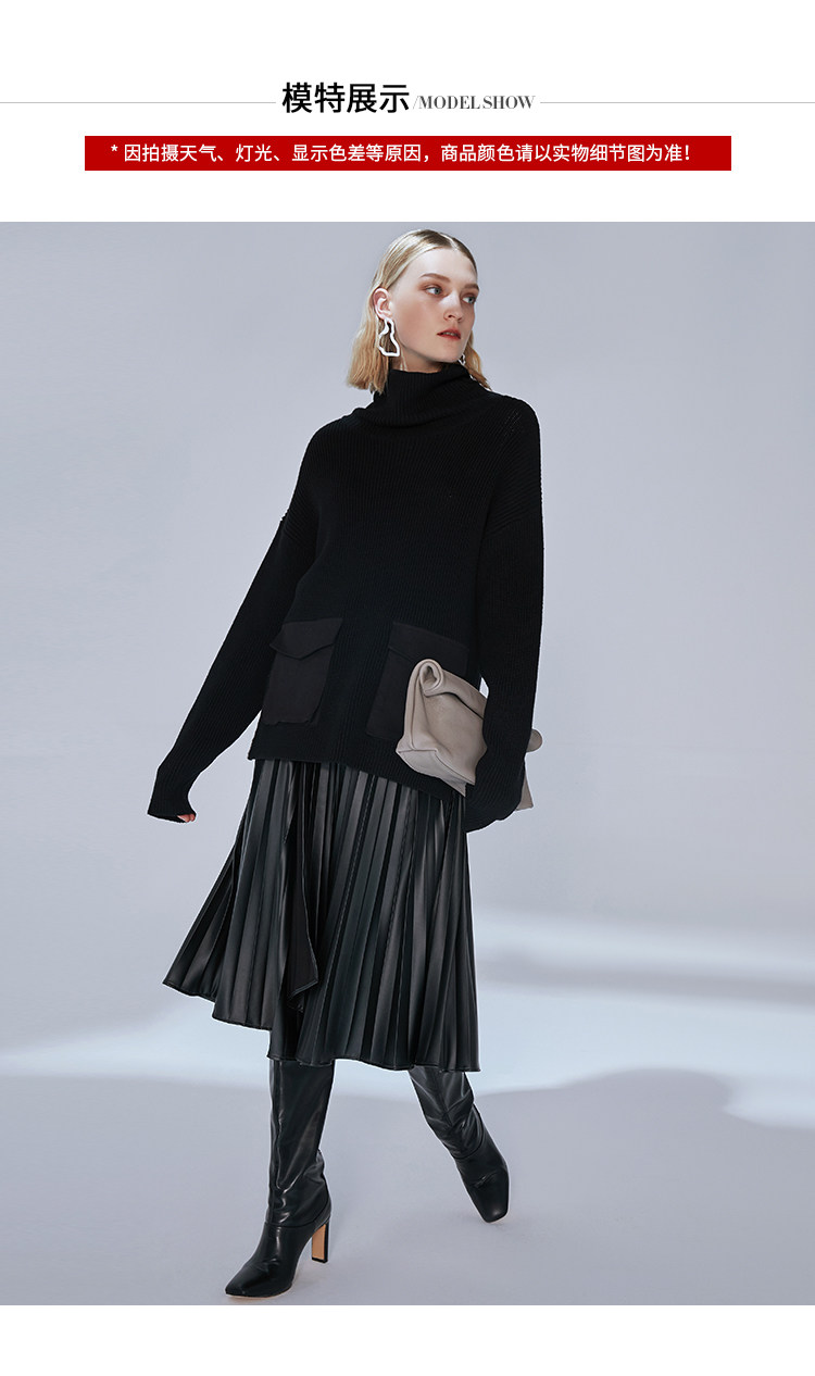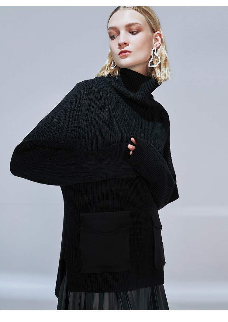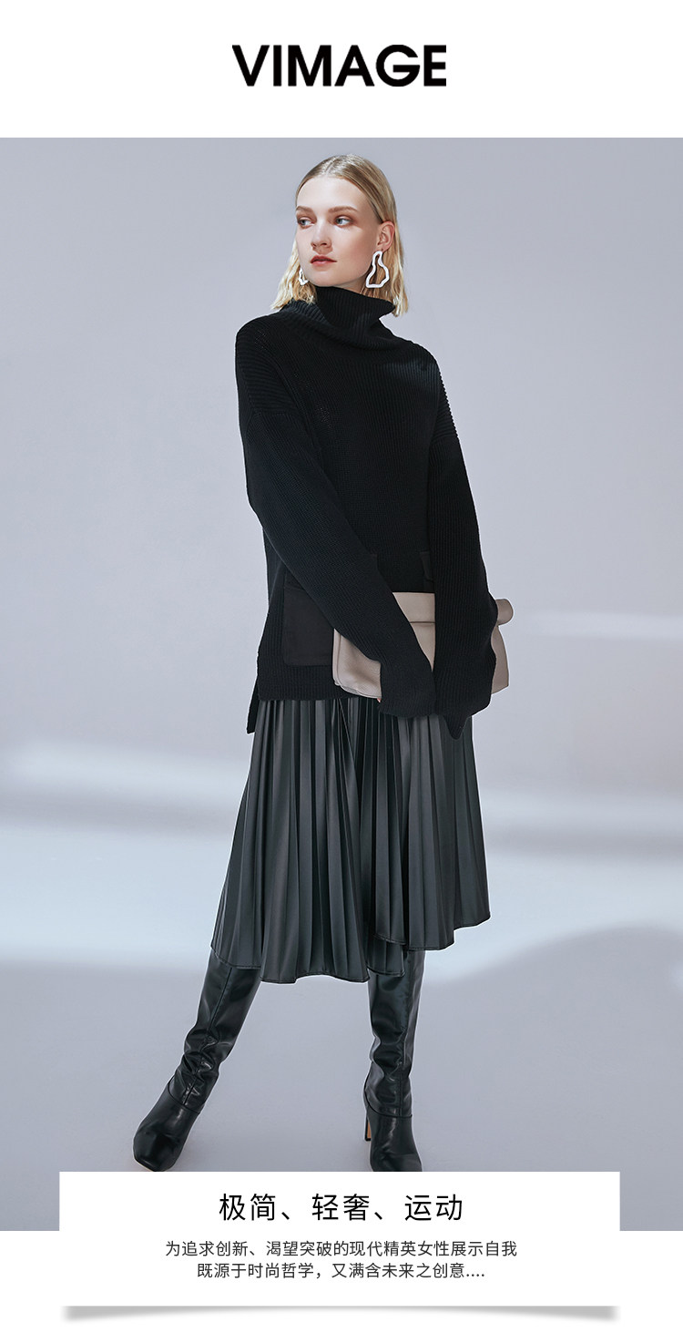 VIMAGE纬漫纪秋季新款时尚个性慵懒舒适高领保暖毛衣针织衫女V1401019