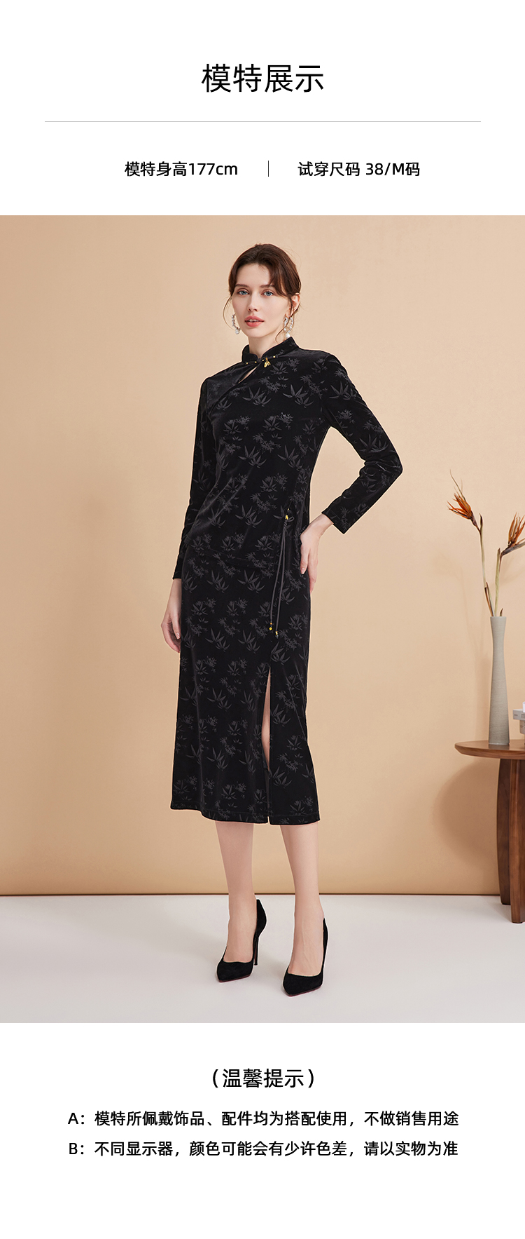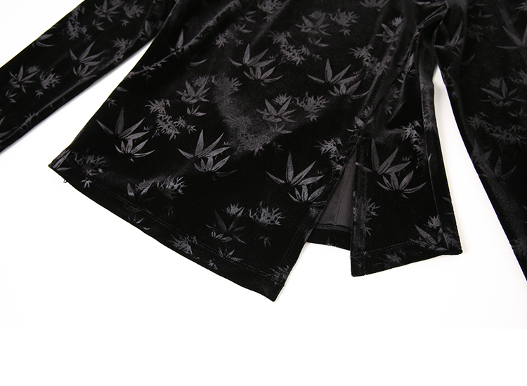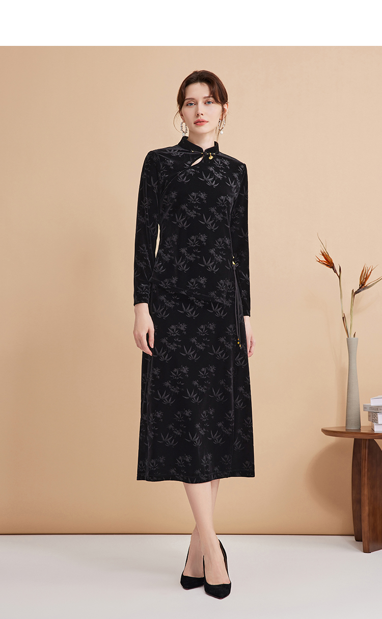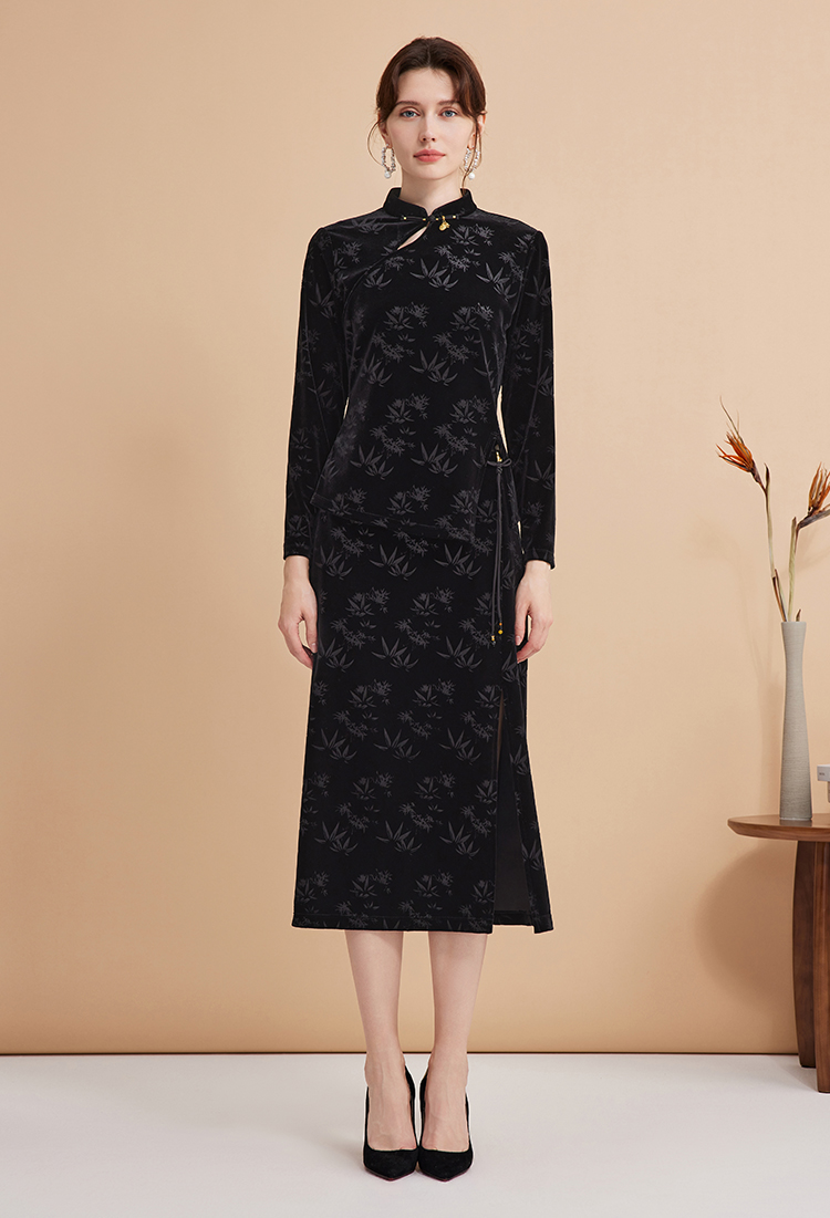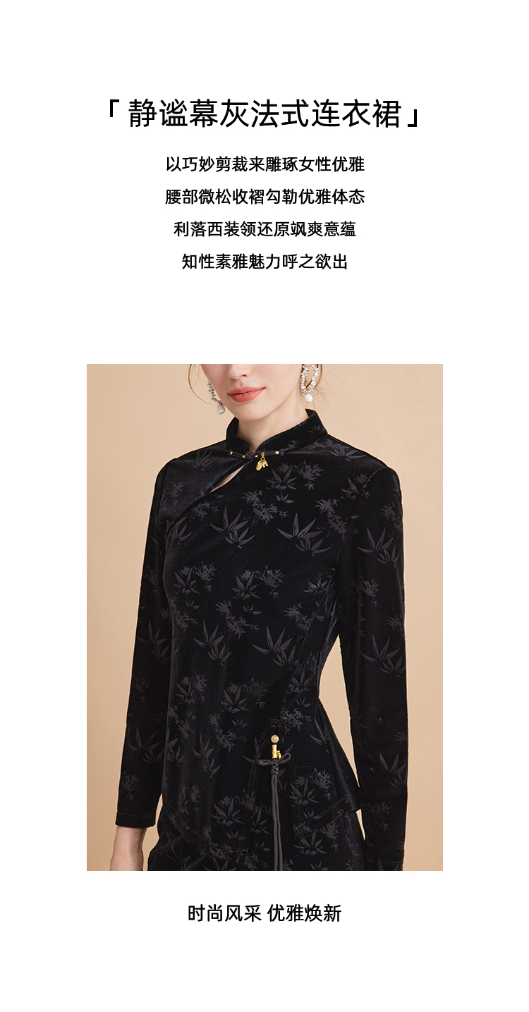 EITIE爱特爱秋季新款新中式盘扣印花暗纹气质显瘦黑色上衣C2413430
