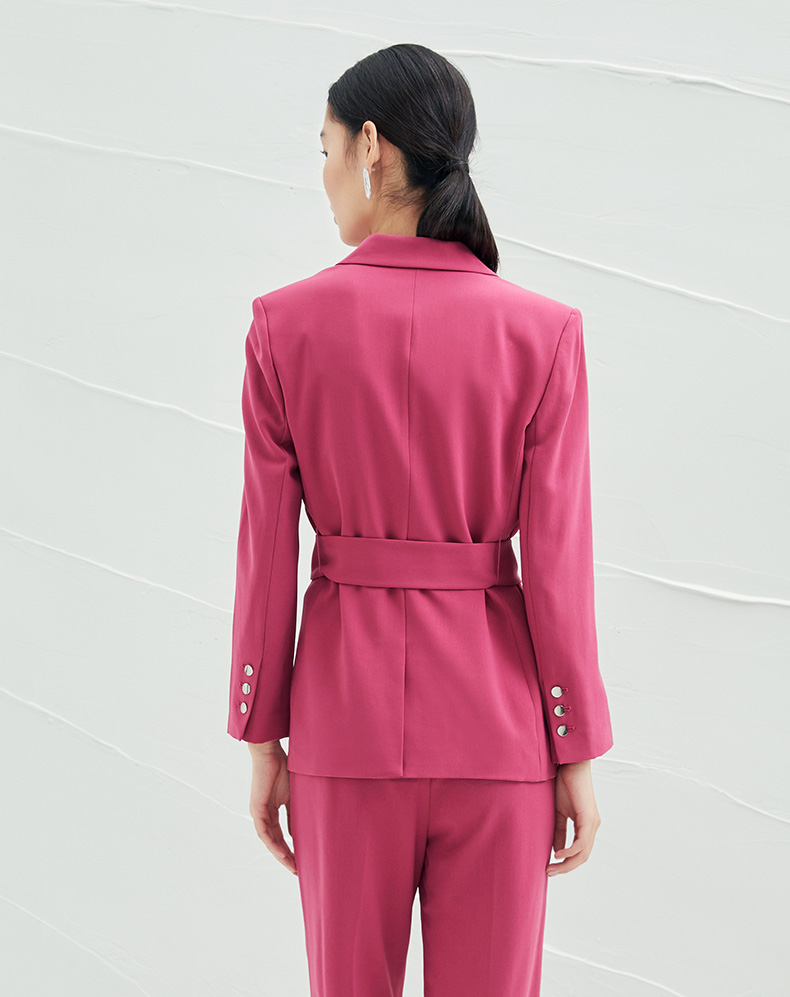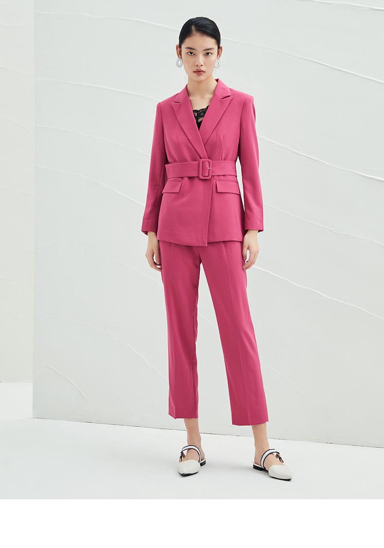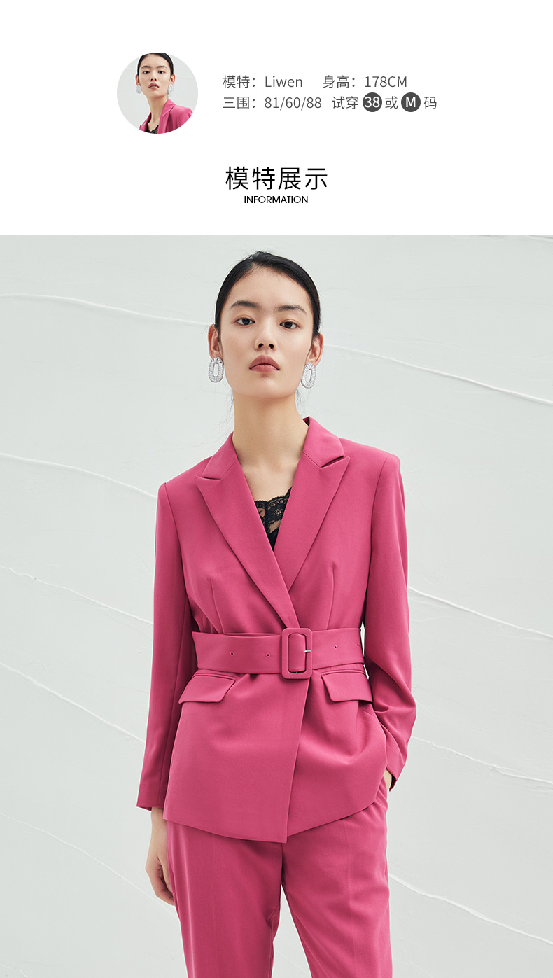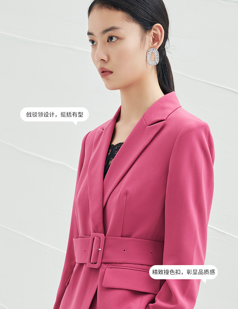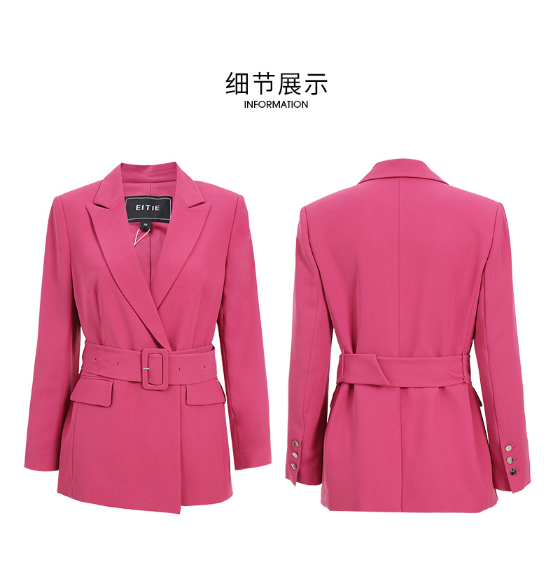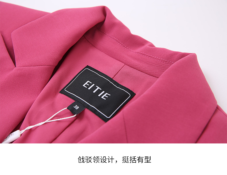 EITIE爱特爱春夏纯色西装V领修身中长款系带外套6503212