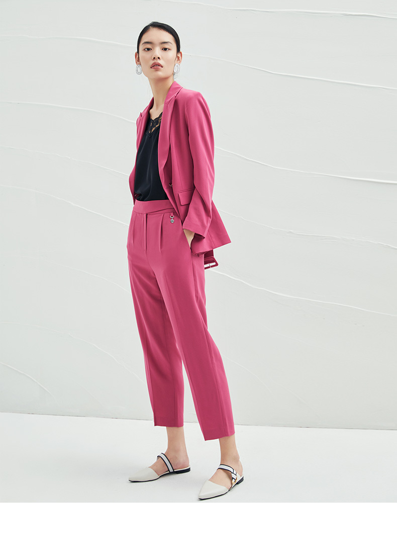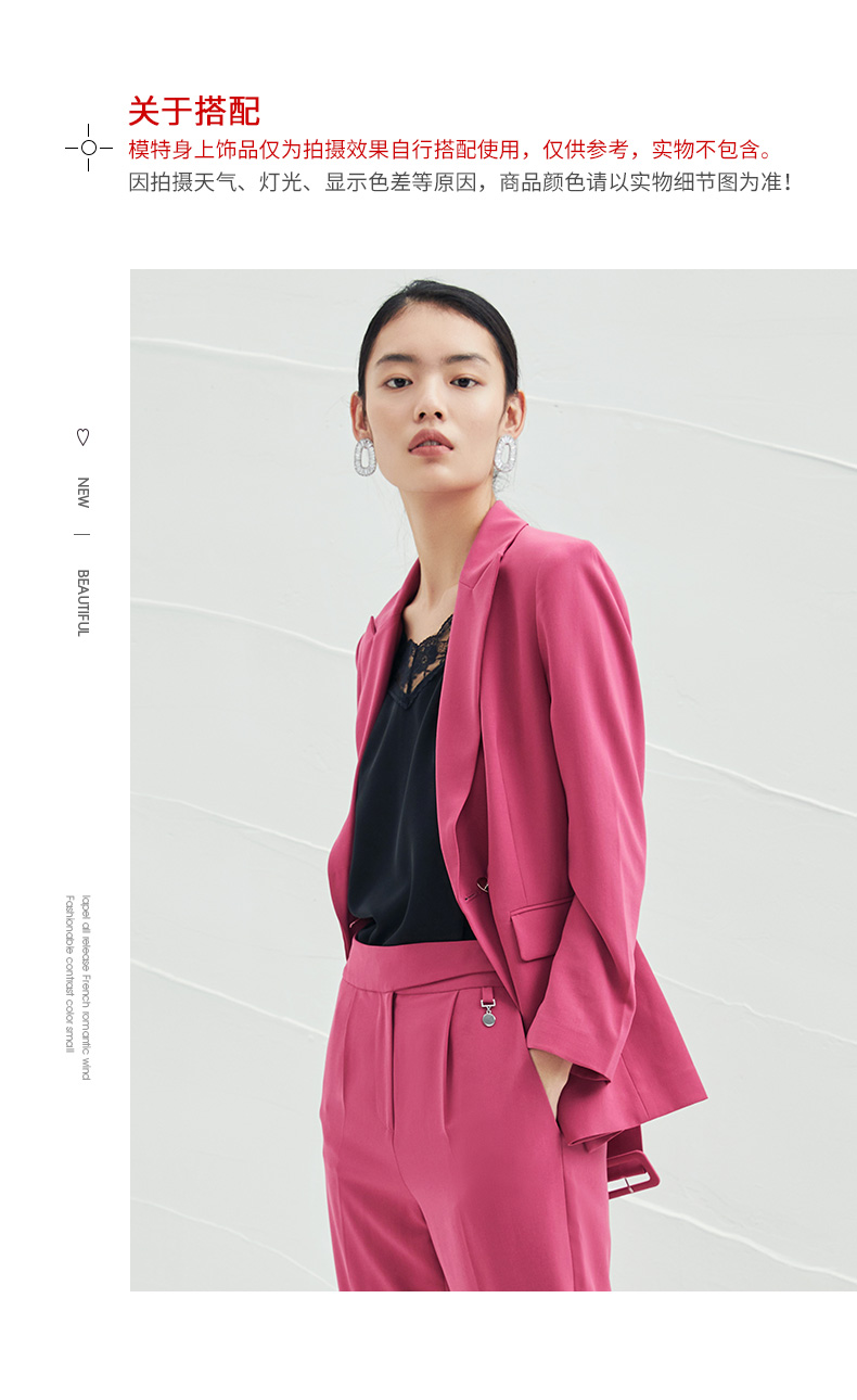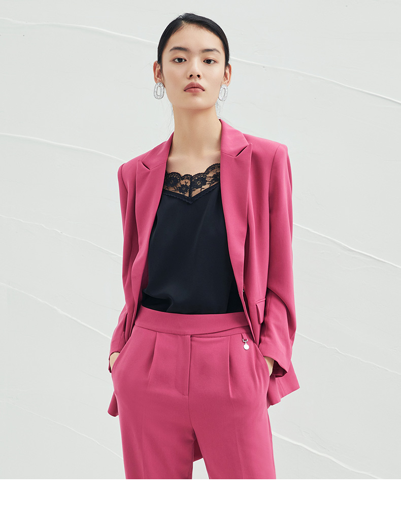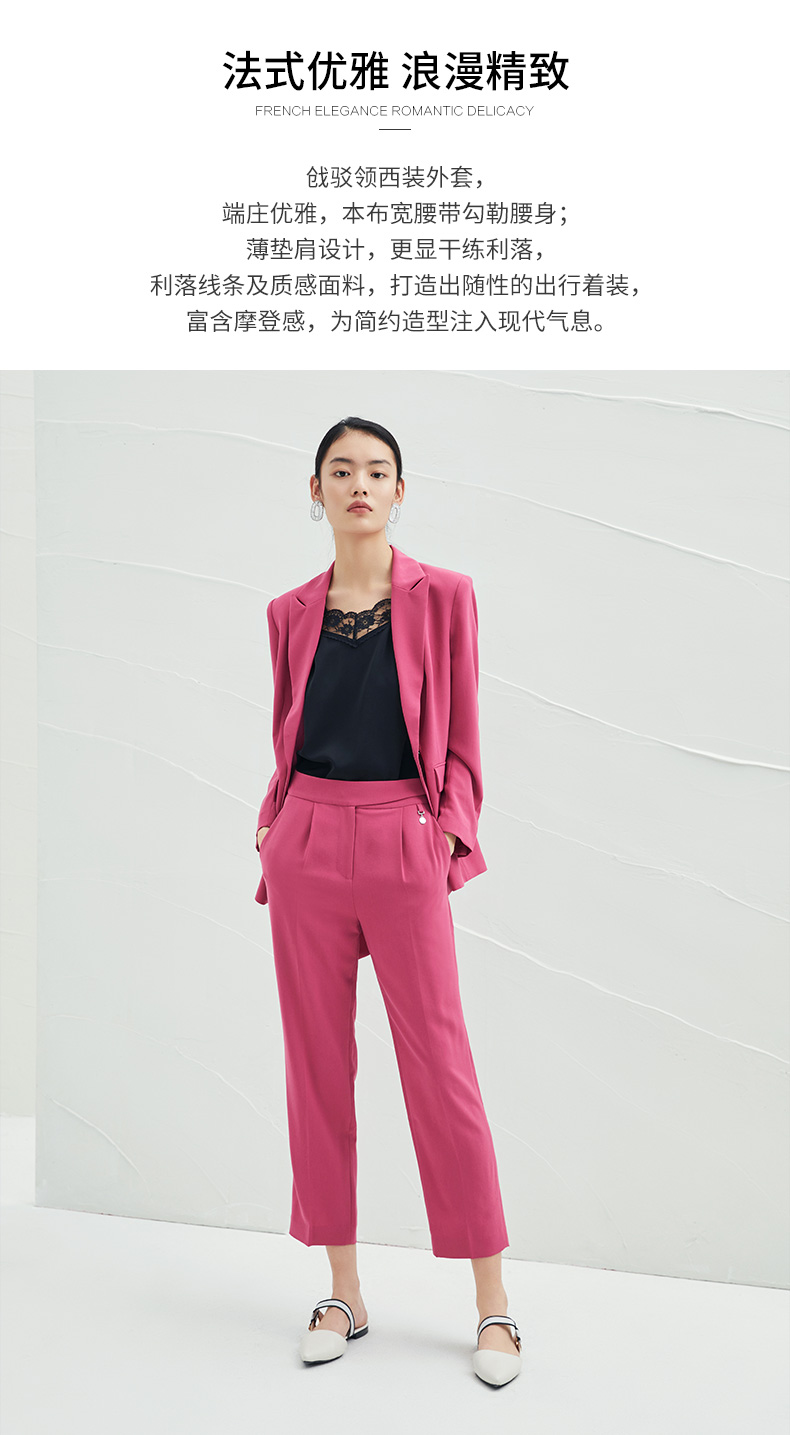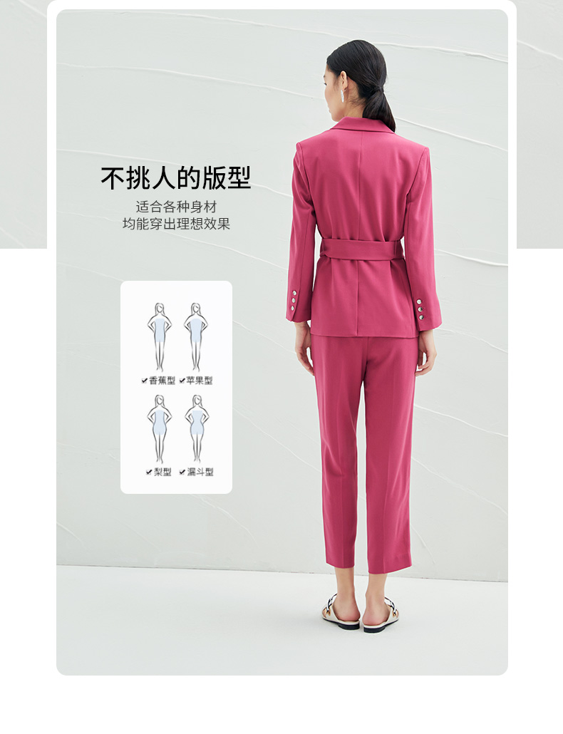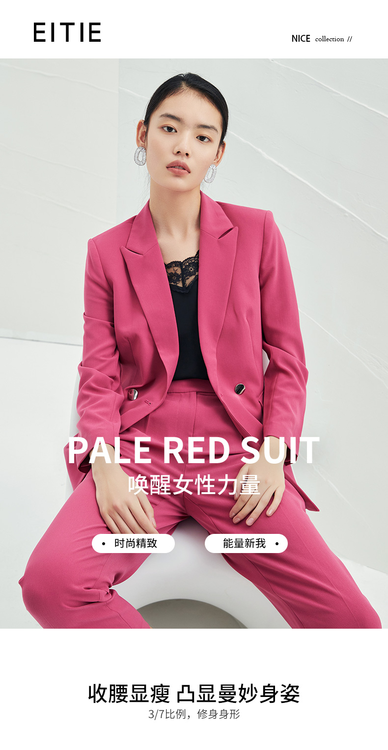 EITIE爱特爱春夏纯色西装V领修身中长款系带外套6503212