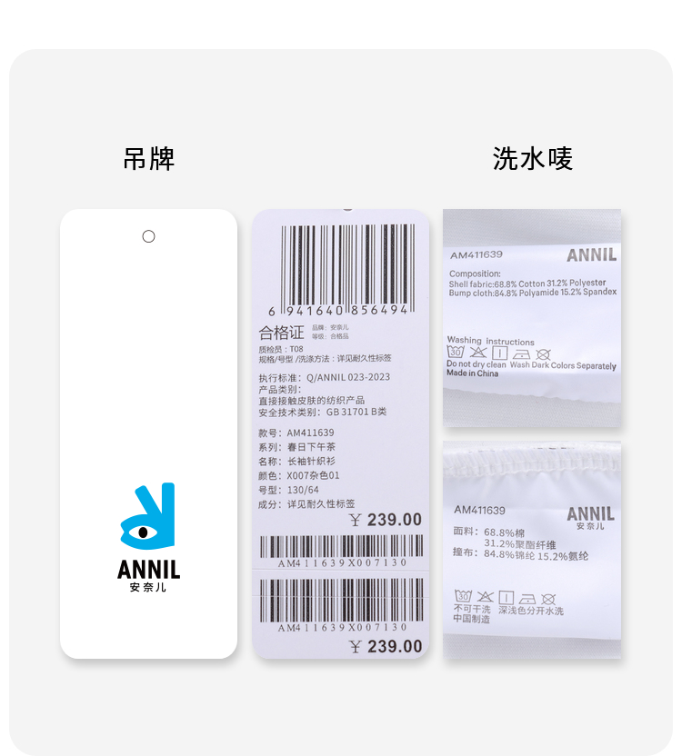 男女童凉感长袖针织衫新款安奈儿童装实体店同款AM411639