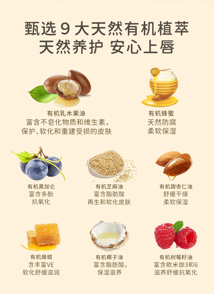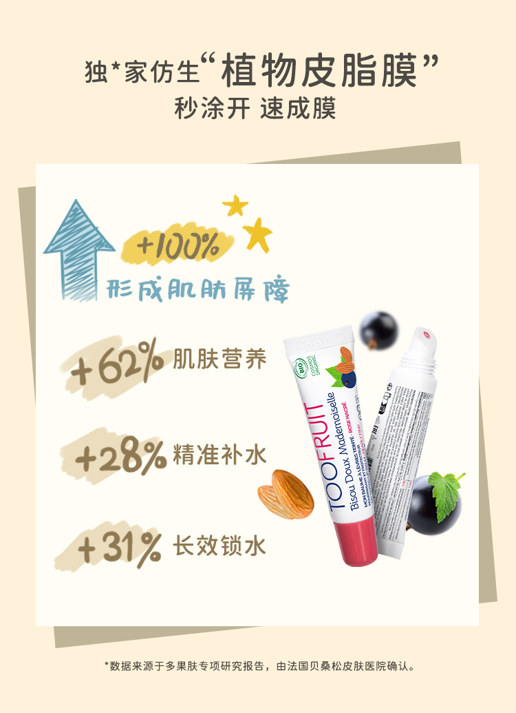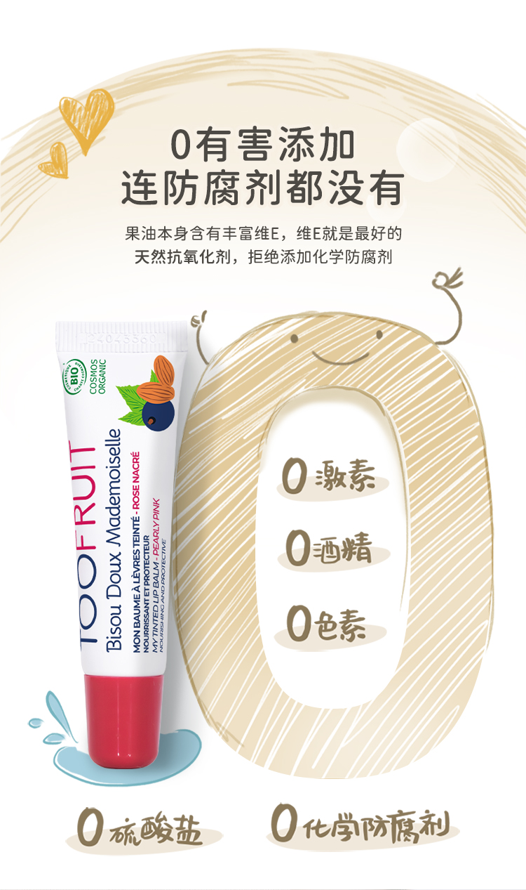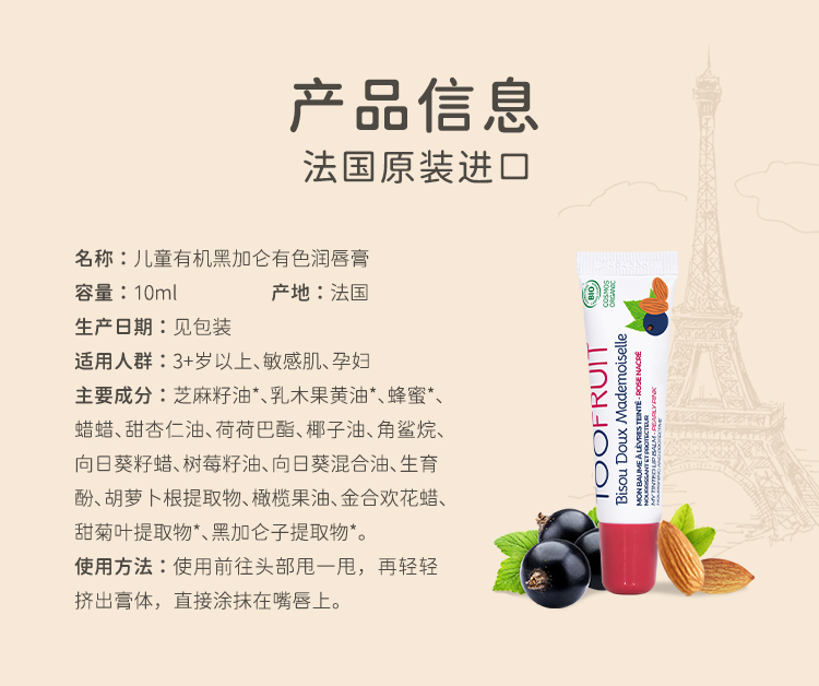 【效期26年12】自然果香 有色 有机润唇膏 黑莓甜杏仁润唇膏10ml 法国TF 多果肤