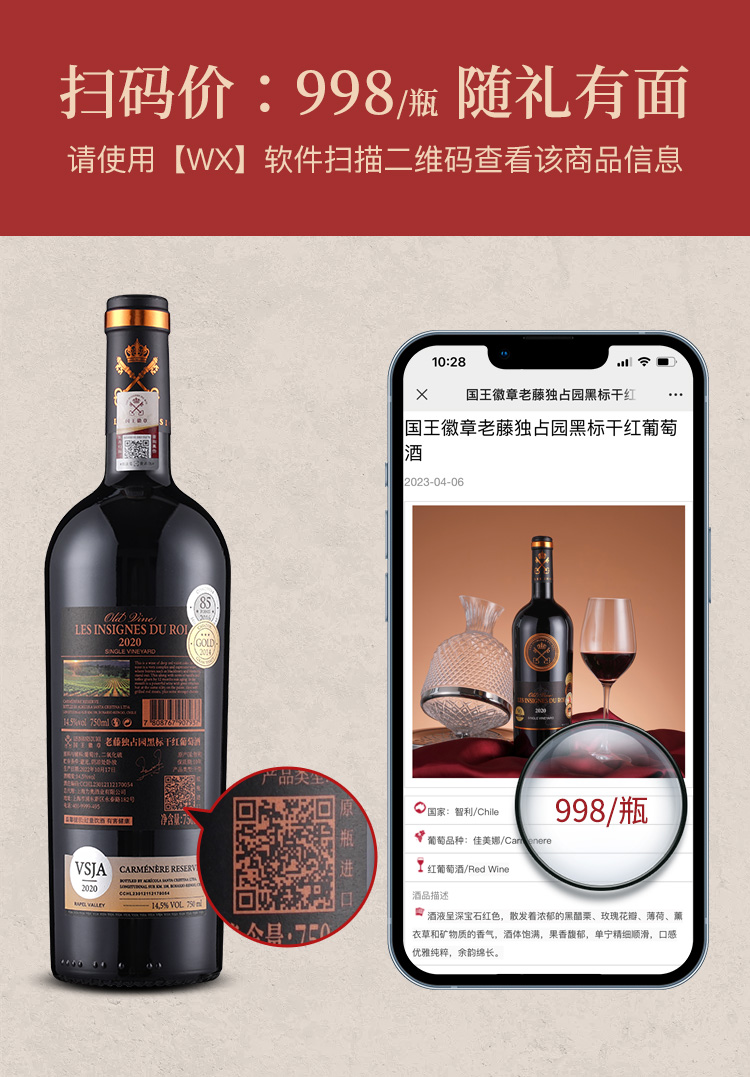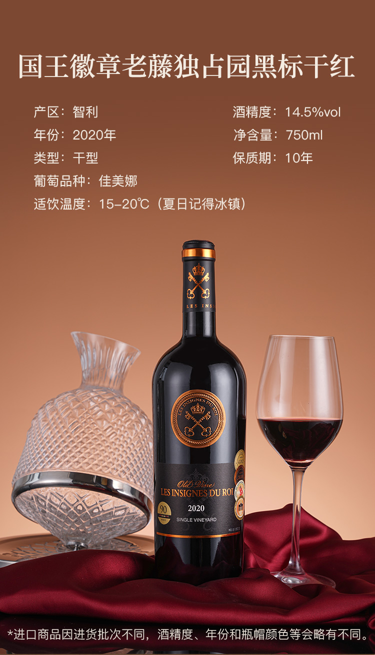瑾瑜白鹿堡智利原瓶进口国王徽章老藤独占园黑标干红葡萄酒 750ml六瓶皮盒装