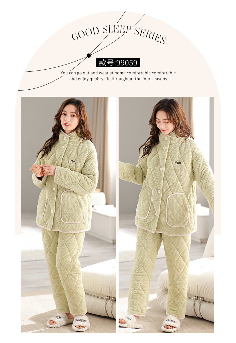雀说 三层针织夹棉加厚加绒睡衣