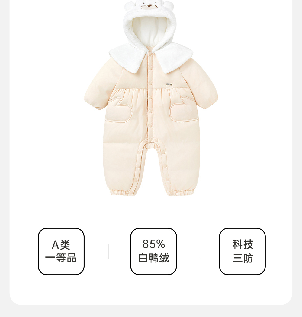 【商场同款】英氏童装羽绒服连体衣女宝宝三防连帽羽绒服冬季保暖超韧绒
