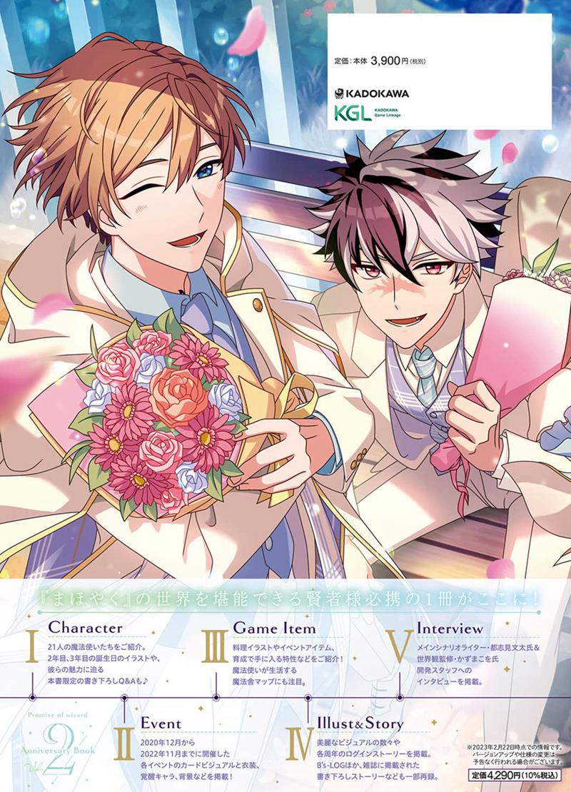 这本周年纪念册汇编了科利公司面向女性的应用程序《魔法师的承诺》的第二年和第三年的内容。 </p> <p>在一个受到巨大邪恶威胁的不同世界里,21个巫师和你--"圣人"(玩家)的故事被演绎出来,重点放在视觉上,比如过去的版权插图和卡片插图。 封面上有科利绘制的新插图。 封面上有coly画的五个人物:Rike, Bradley, Nero, Rustica和Michiru。 此外,本书还有一个新写的Q&A,深入探讨了每个角色的魅力,部分重新录制了一个新写的短篇故事,该故事曾在《B's-LOG》和其他杂志上出现过,还有对主要剧情作者Bunta Toshimi&世界观监督Kozuma Kono的采访,相信会吸引粉丝的注意力。 这些内容让粉丝们更深入地享受世界观。