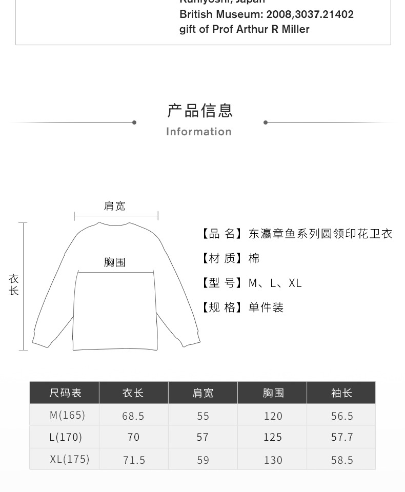 大英博物馆官方东瀛章鱼系列圆领印花卫衣简约创意时尚潮流