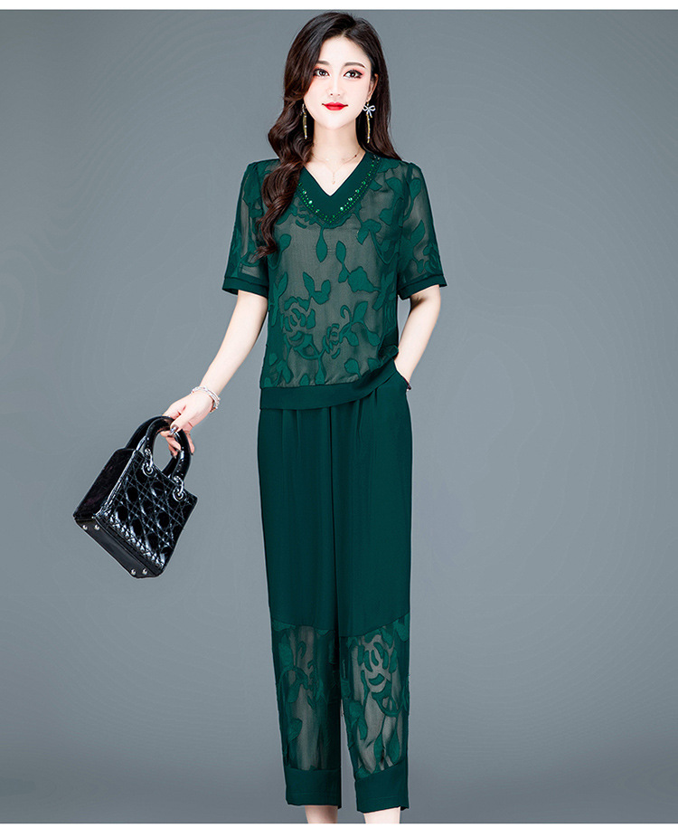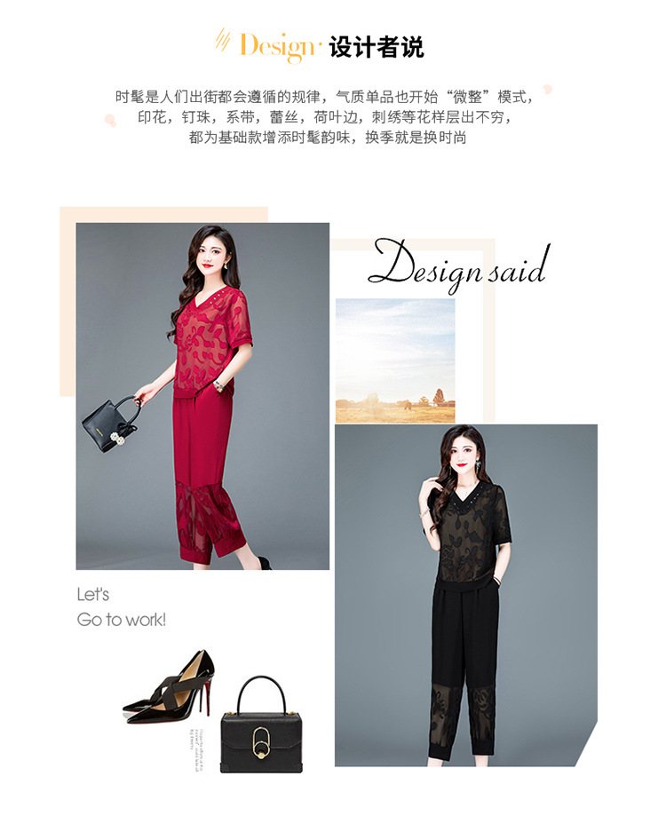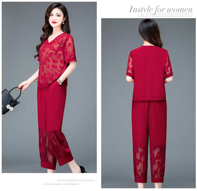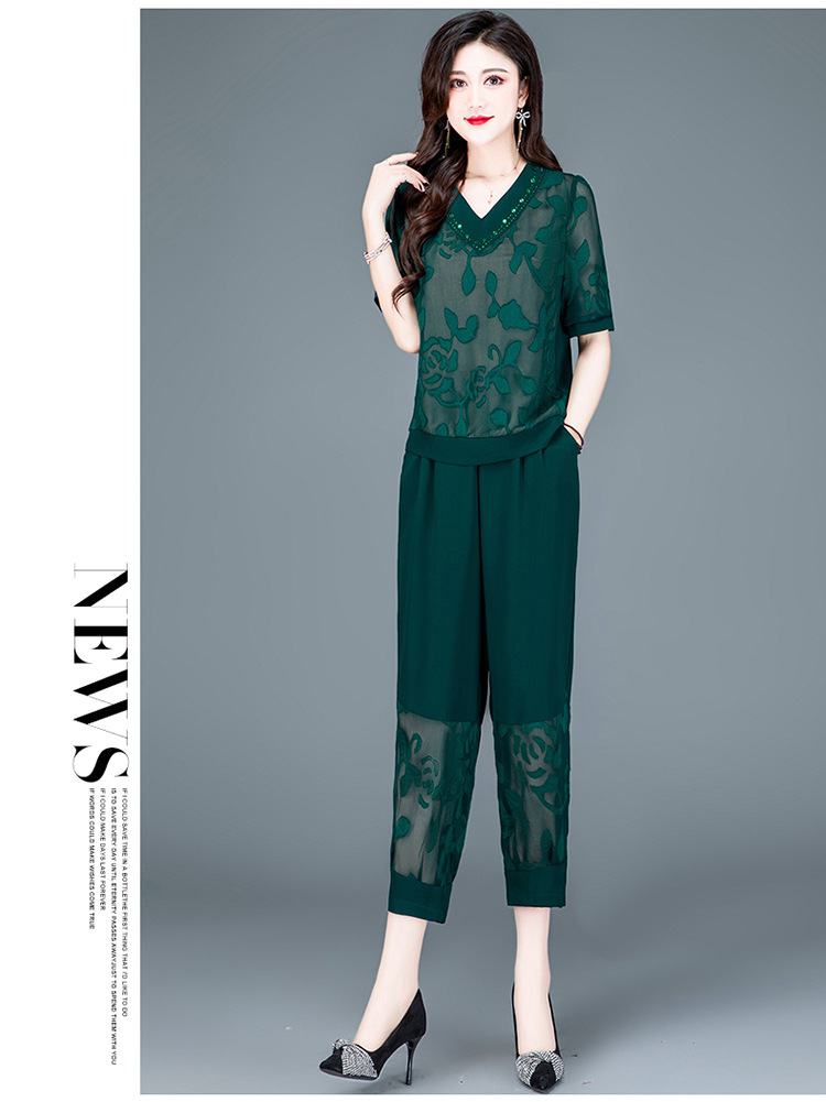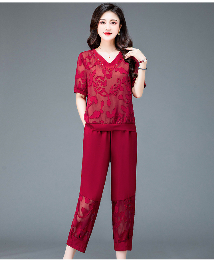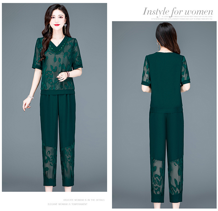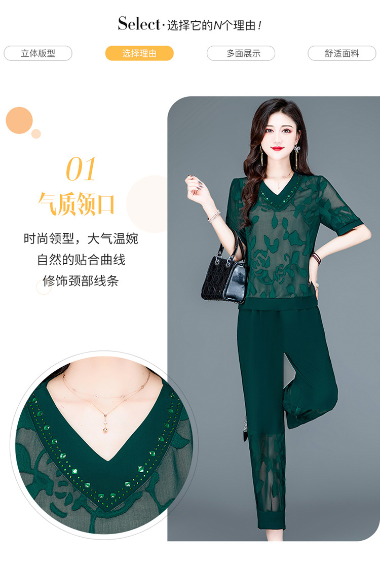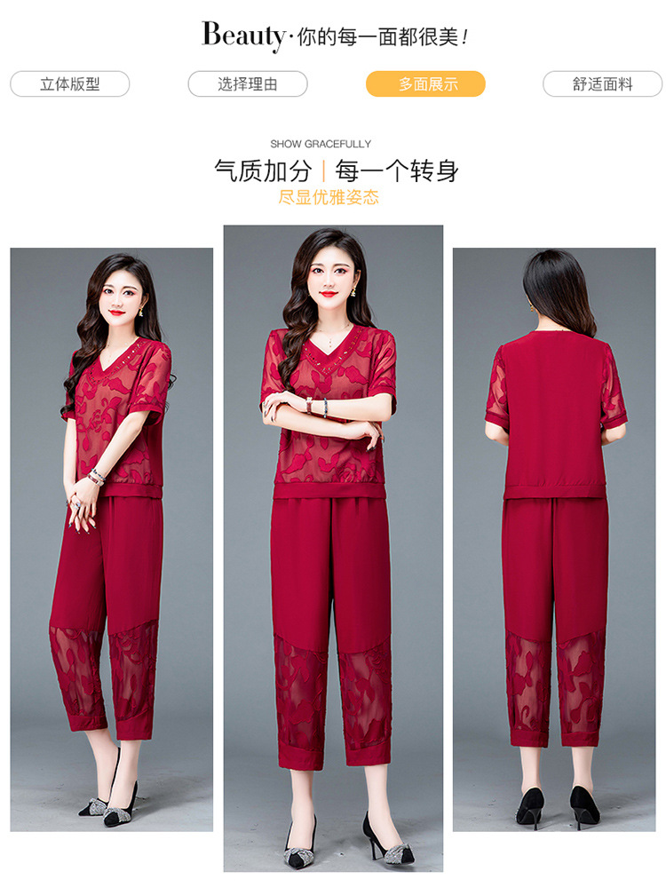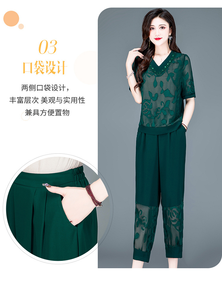 夏季新款,妈妈印花短袖T恤上衣哈伦裤休闲两件套QYM-TYH-23B853-Y