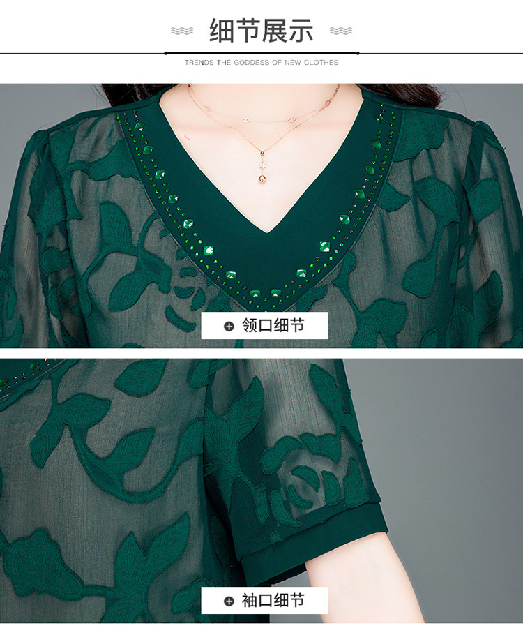夏季针织绣花棉洋气雪纺边修身短款时尚小衫LM06562