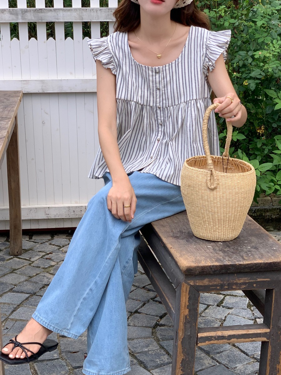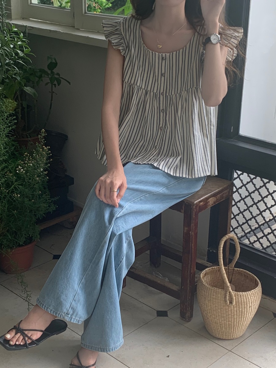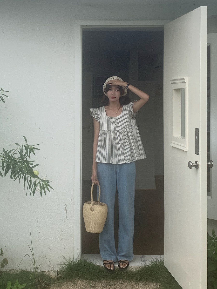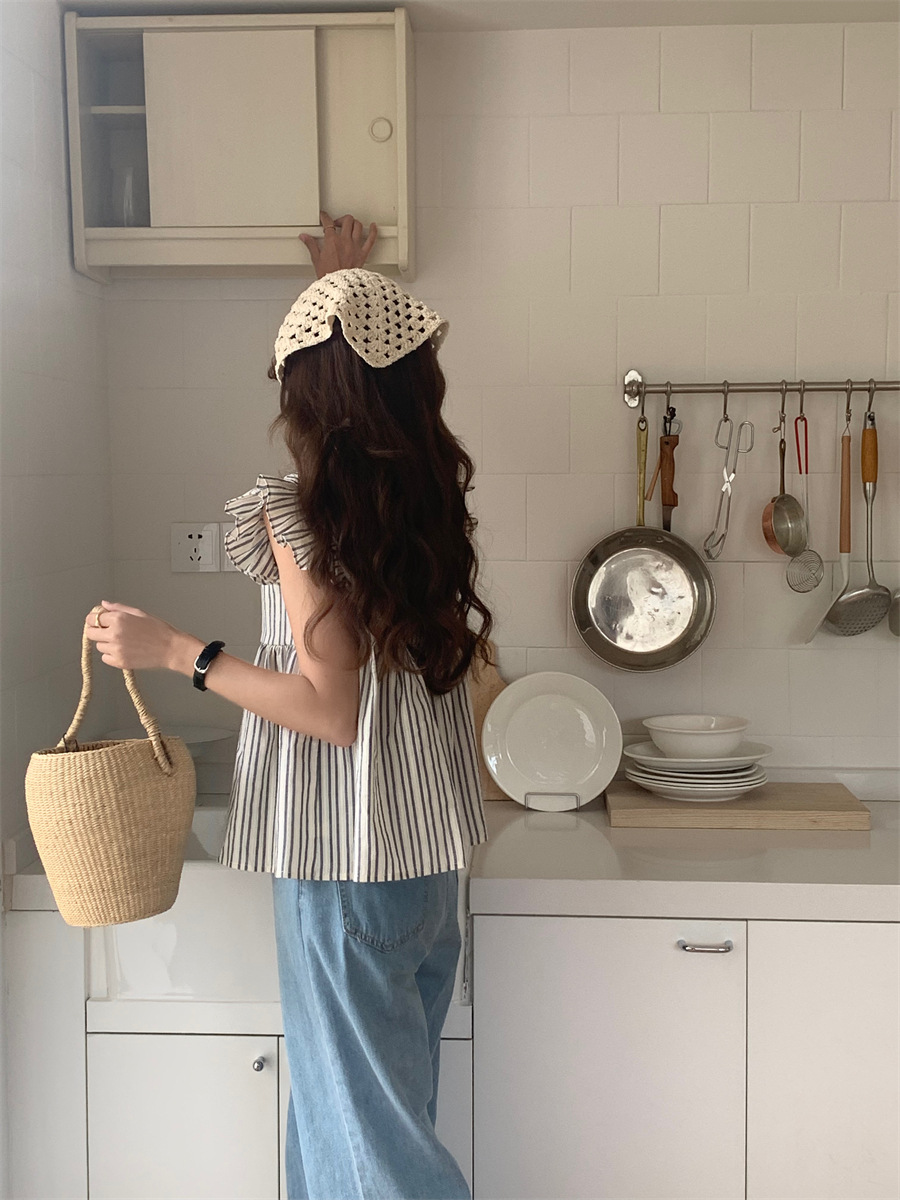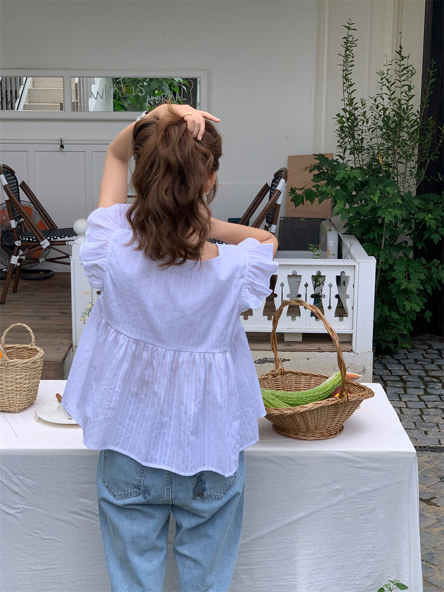 黛唯梵【新款上架,木耳边小飞袖】方领竖条纹,童趣甜美,倍添少女心。女神们,特别推荐给爱穿衣的你们!