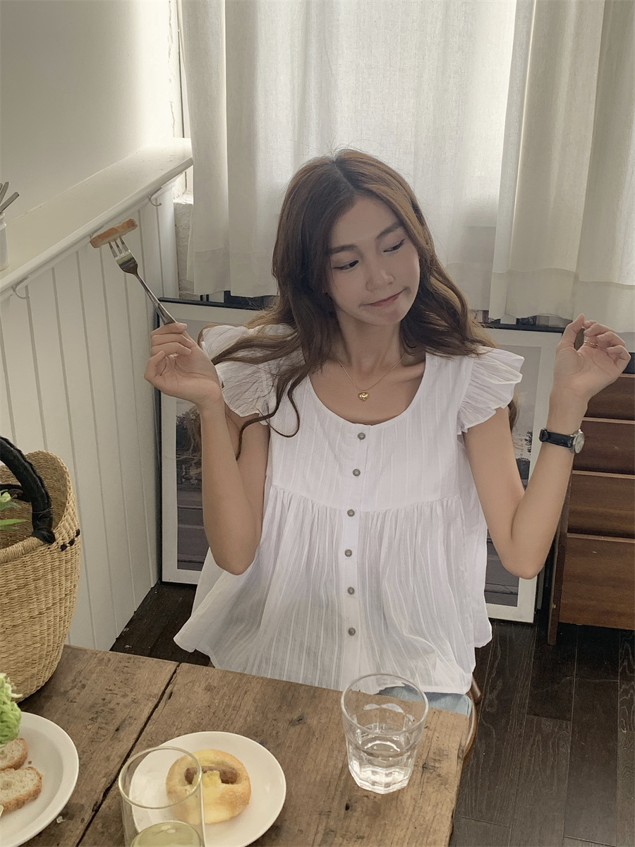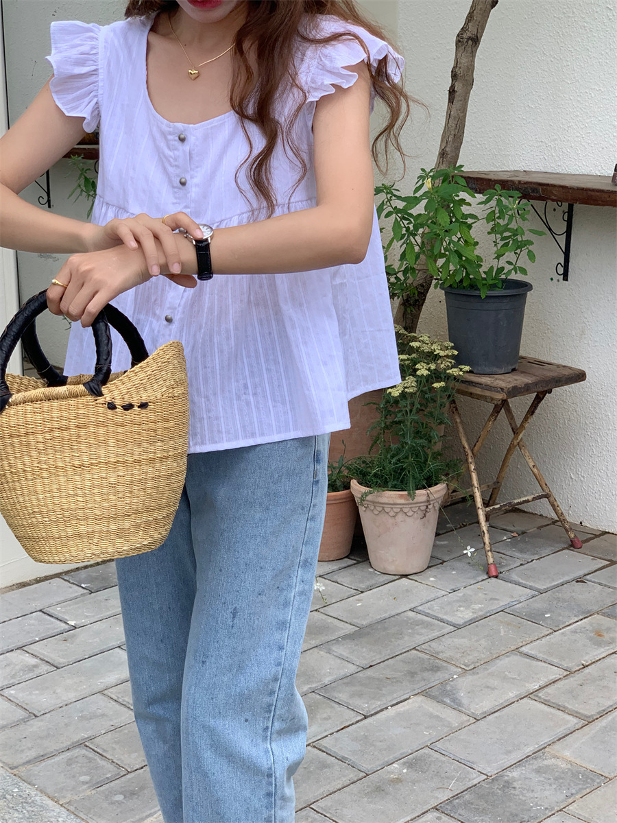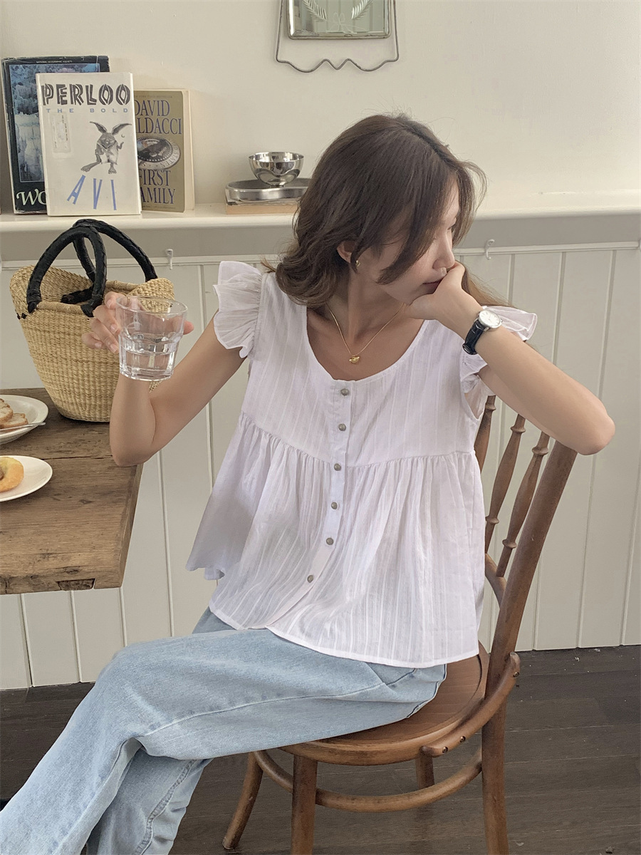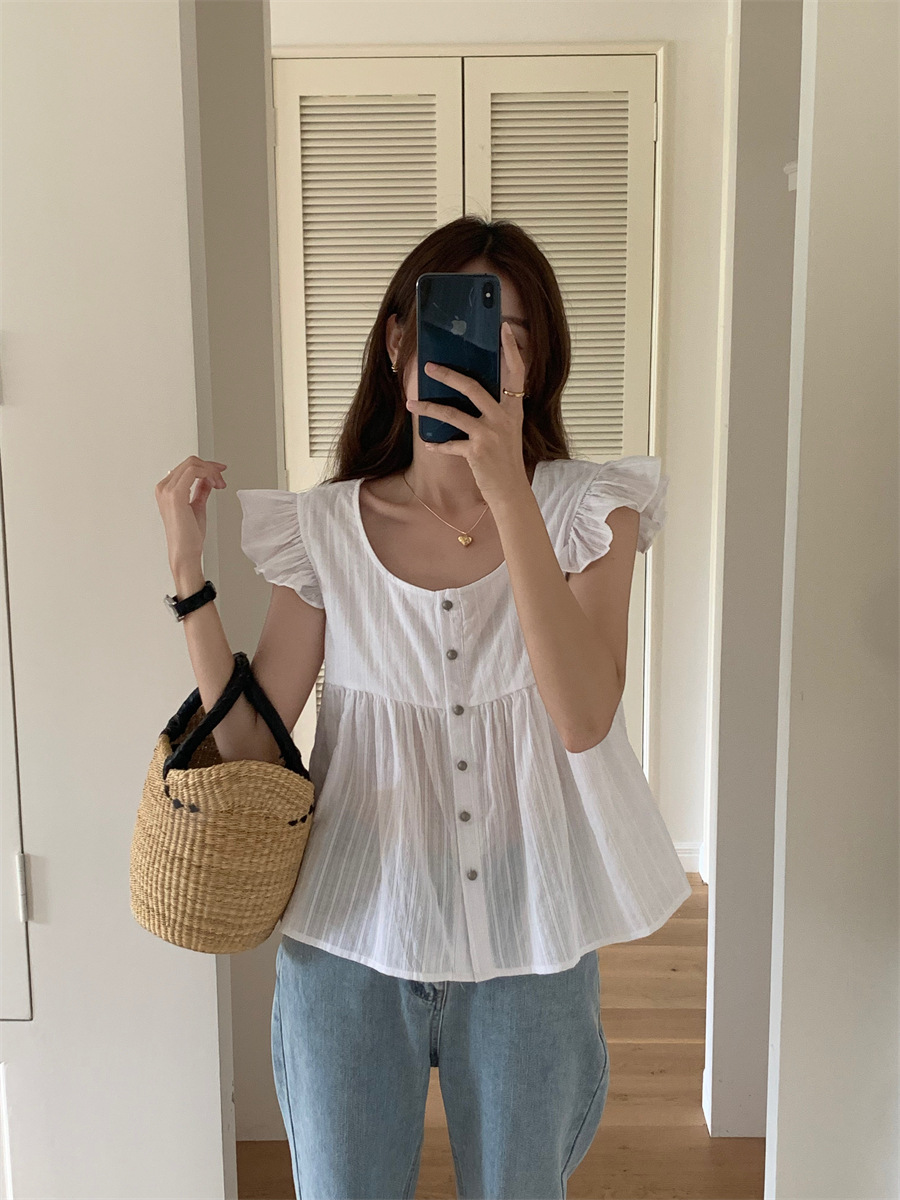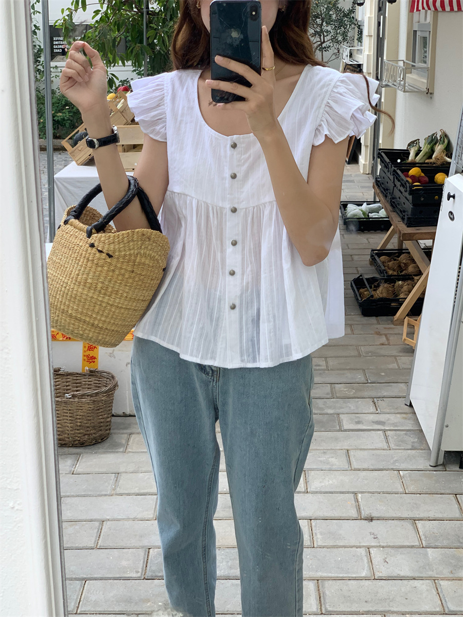 黛唯梵【新款上架,木耳边小飞袖】方领竖条纹,童趣甜美,倍添少女心。女神们,特别推荐给爱穿衣的你们!
