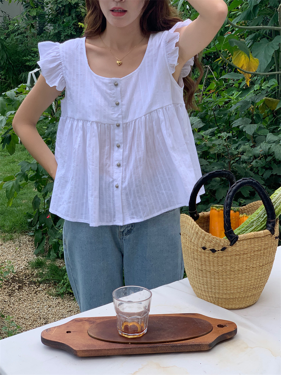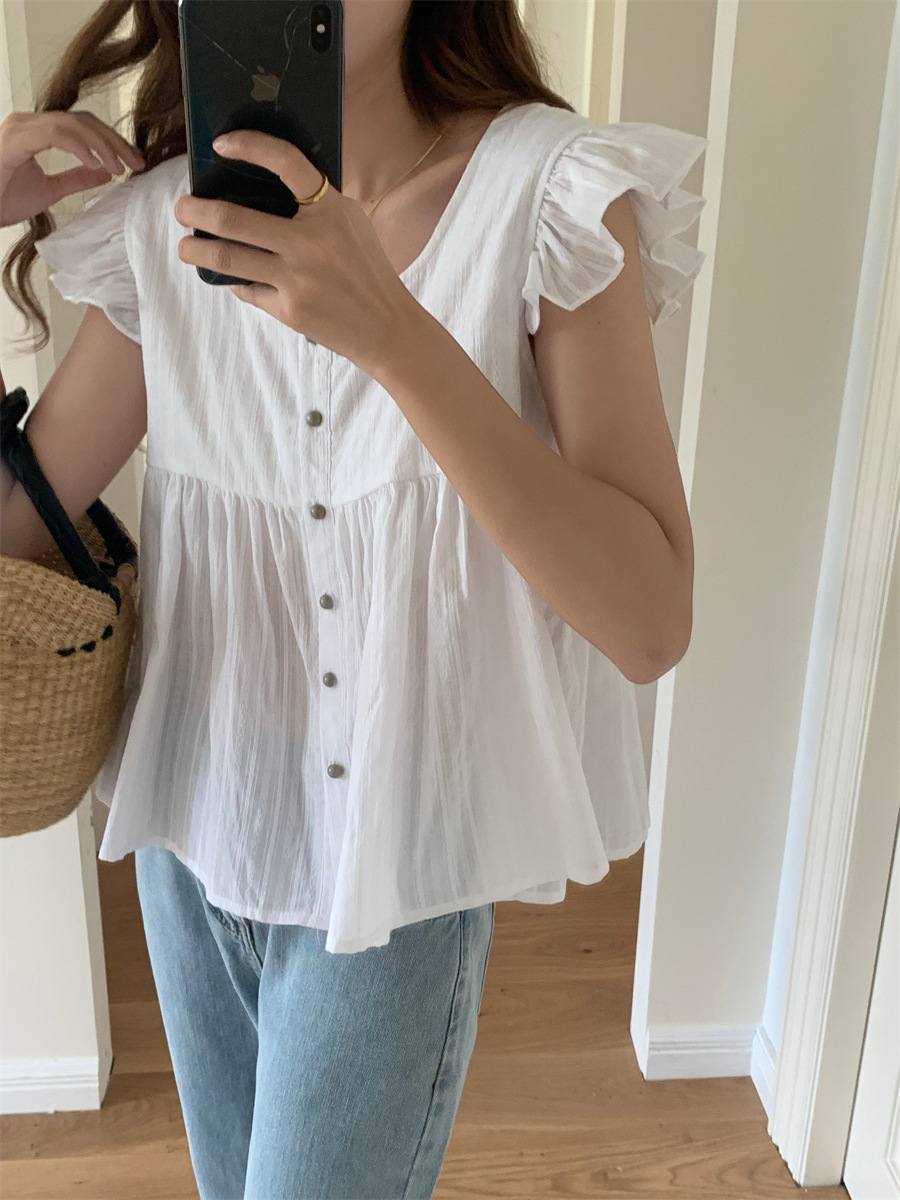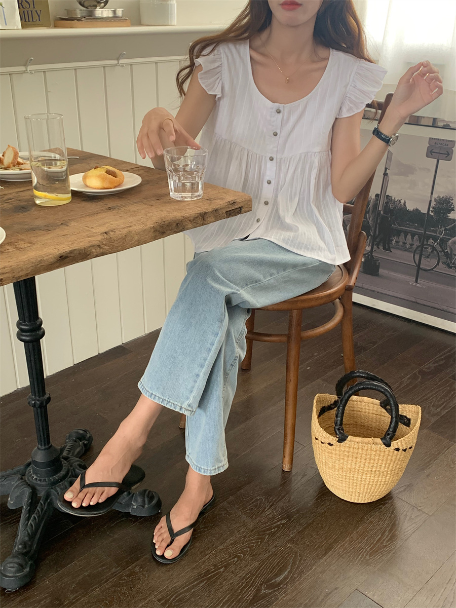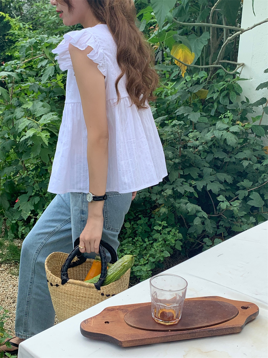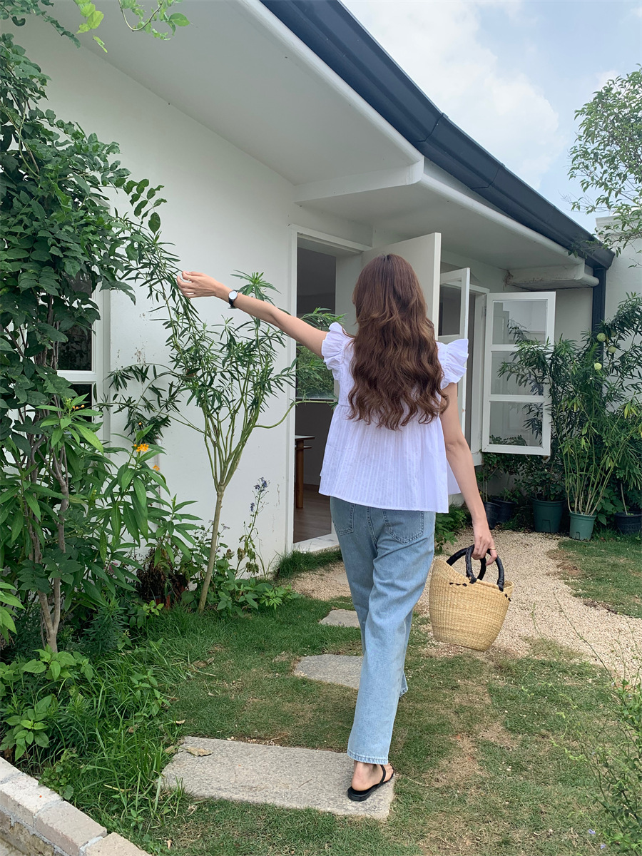 黛唯梵【新款上架,木耳边小飞袖】方领竖条纹,童趣甜美,倍添少女心。女神们,特别推荐给爱穿衣的你们!