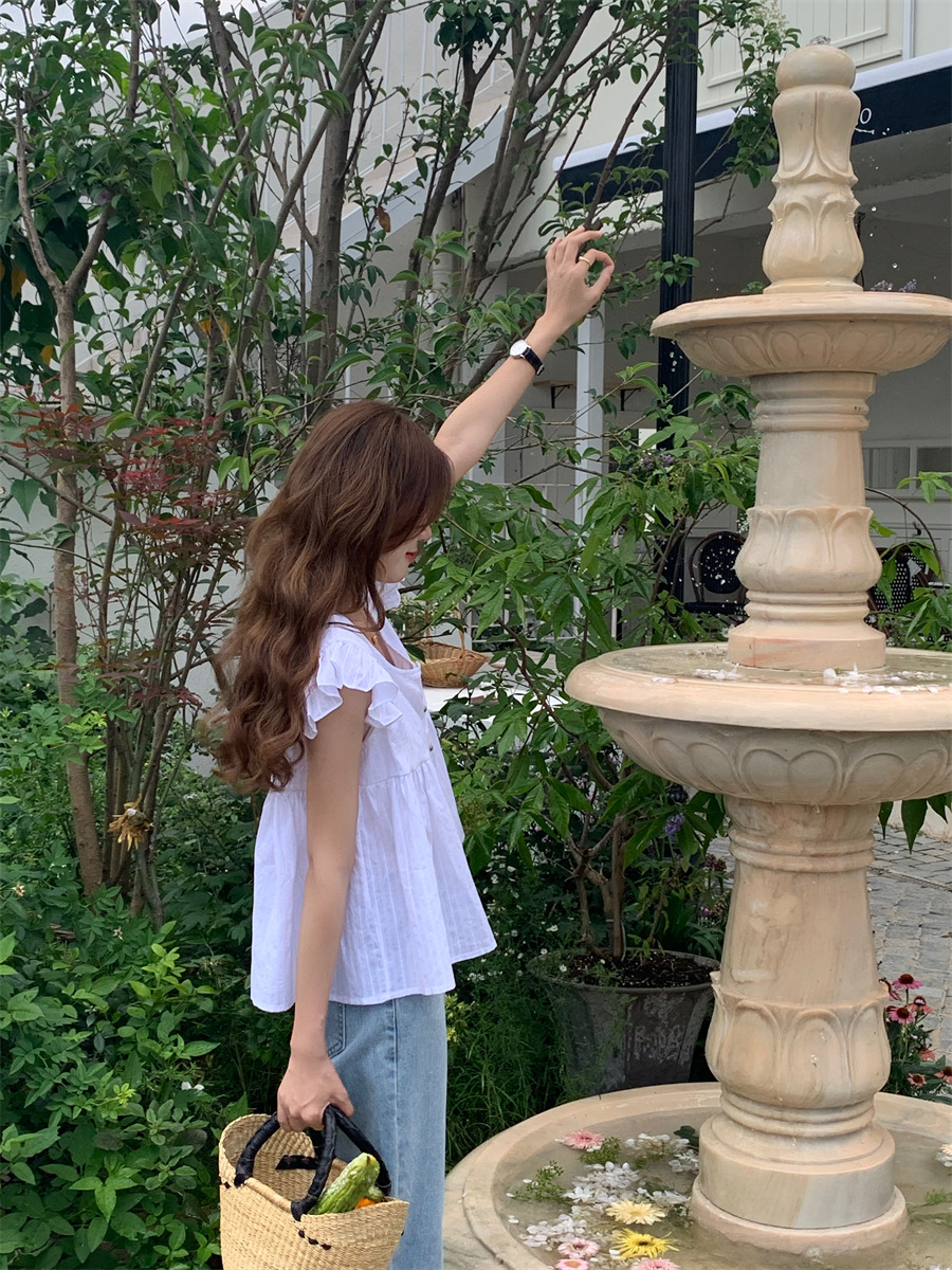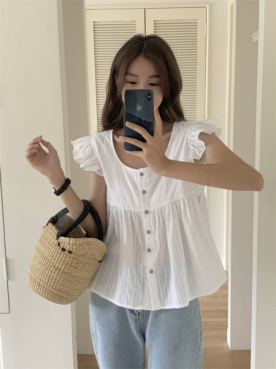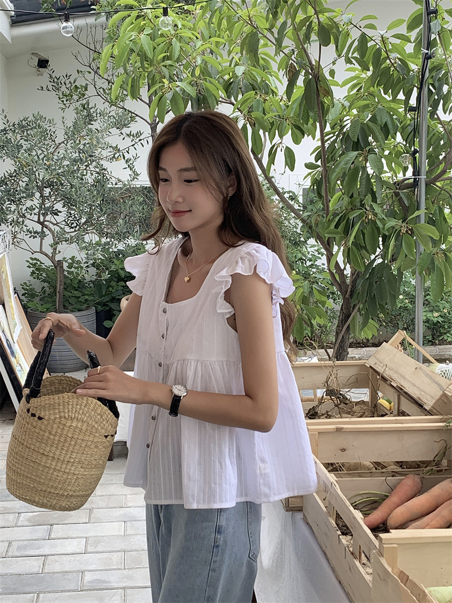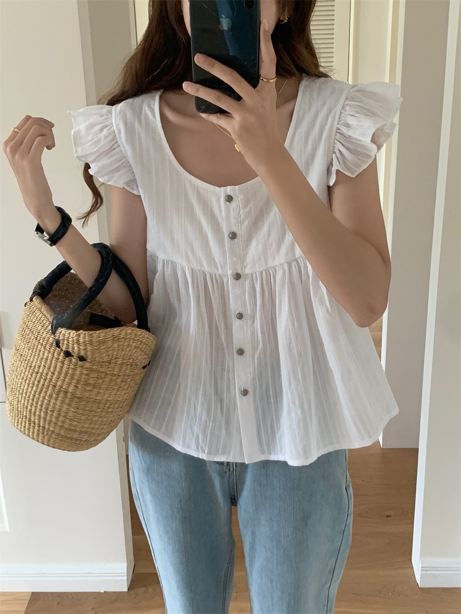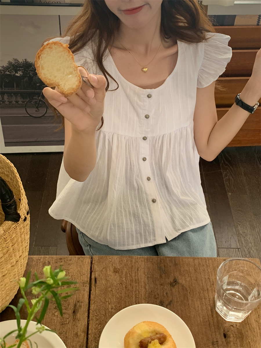 黛唯梵【新款上架,木耳边小飞袖】方领竖条纹,童趣甜美,倍添少女心。女神们,特别推荐给爱穿衣的你们!
