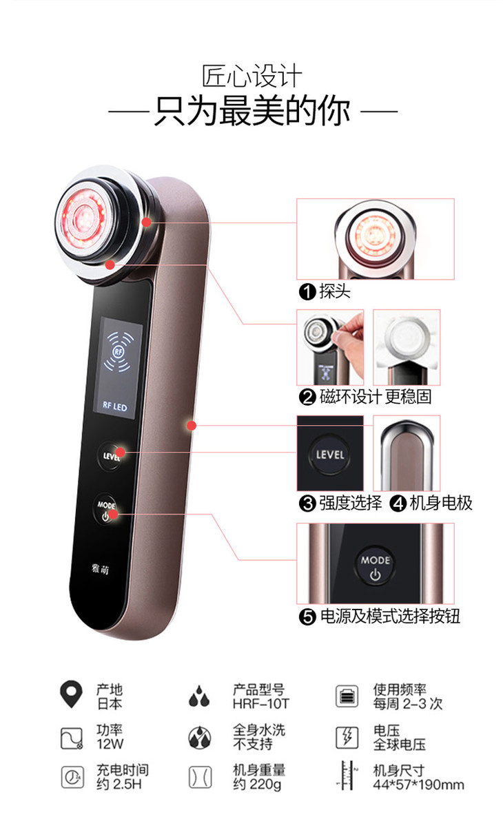 【香港直邮】YAMAN/雅萌 离子导入导出电动洁面仪射频嫩肤仪 HRF-10T