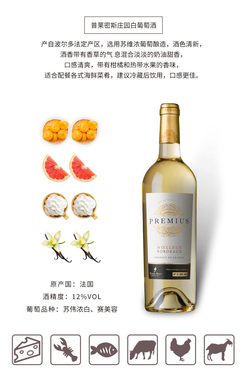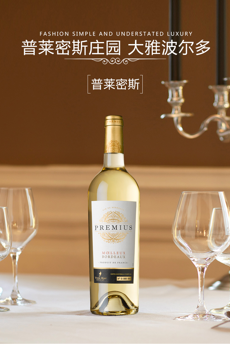 【双瓶优惠】普莱密斯庄园波尔多半甜白AOP葡萄酒+双支口袋 Premius Bordeaux Moelleux AOP 2*750ml