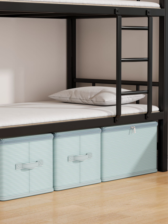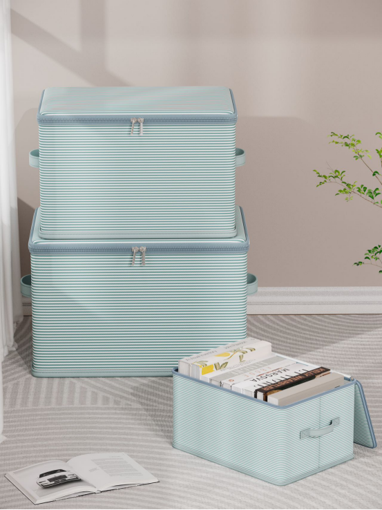 ♥️YOOHOPE宜家风布艺条纹收纳筐🎁 ✅防尘设计:顶部防尘设计,🐻防尘防潮更干净 ✅双拉链开口:方便拿取衣物🤏🏻 ✅可折叠:换季时,可以将底板抽出,折叠起来放置,节省空间家居收纳必备